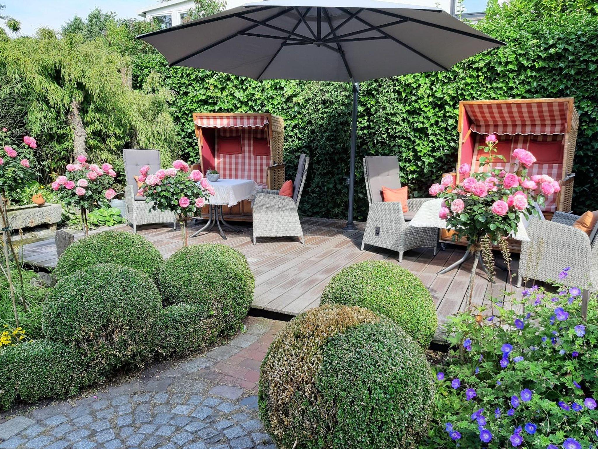 Individuell und liebevoll gestaltet und eingerichtet bieten wir Ihnen ein charmantes Urlaubsdomizil. Die bezaubernden, gepflegten Gärten mit Sonnenterrasse und Strandkörben lädt zum Verweilen ein.