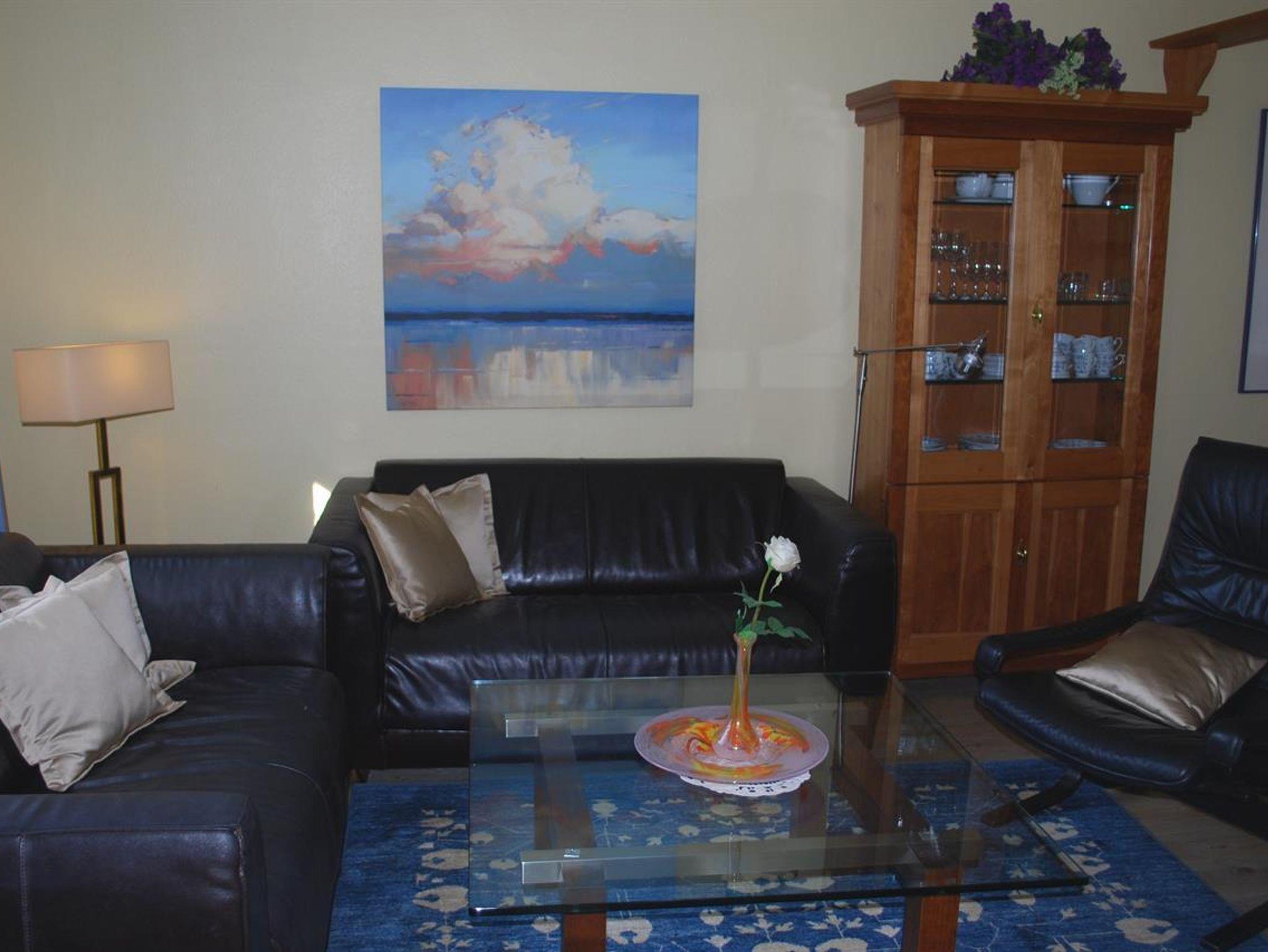 Die Wohnung Garsande ist sehr stilvoll und hochwertig eingerichtet, z. B. mit 2 Ledersofas und Ledersessel,