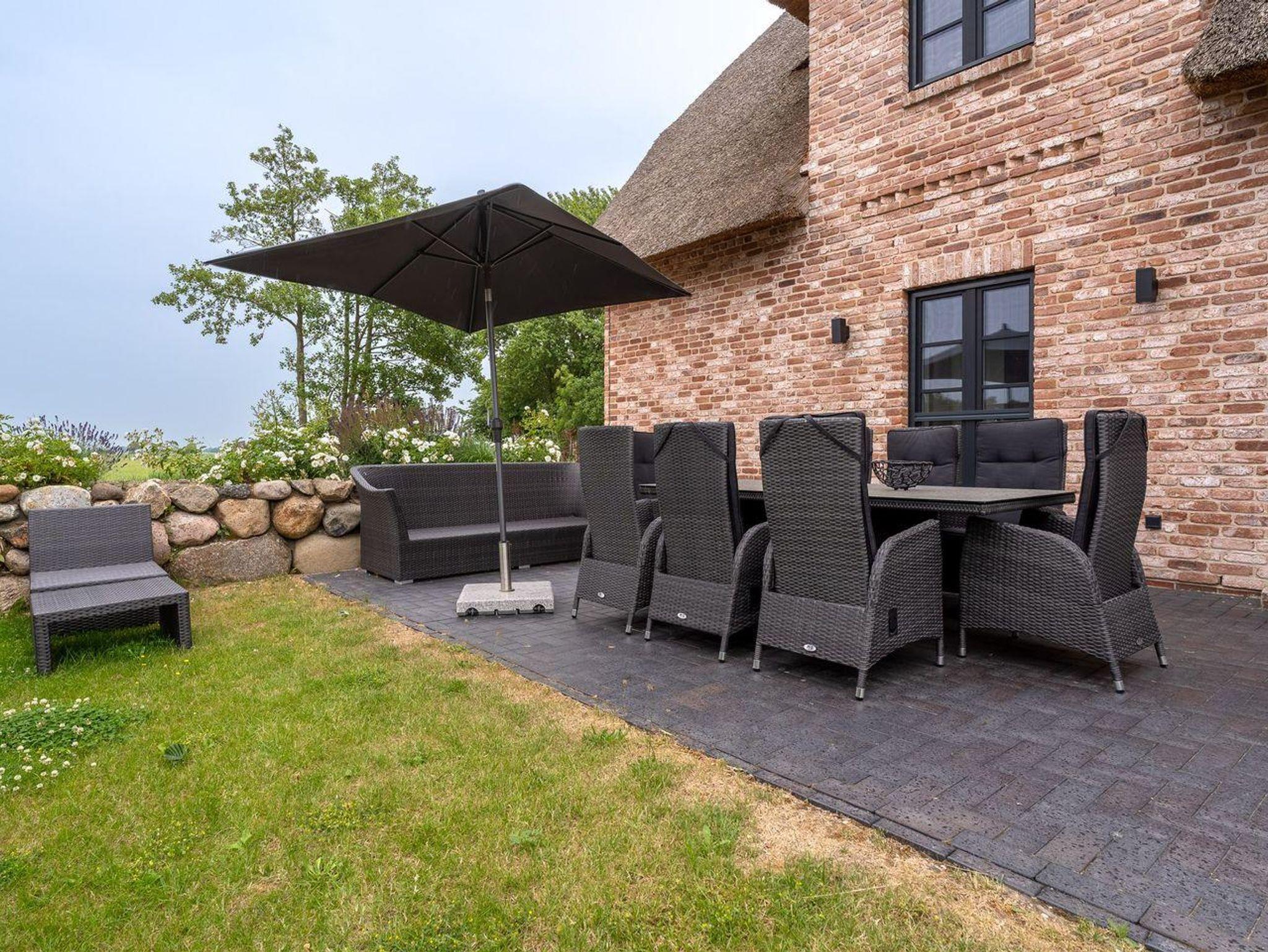 Luxuriöses Reetdachhaus Summerdiek 11 in ruhiger Lage von St. Peter-Ording, ideal für Familien und Naturfreunde.