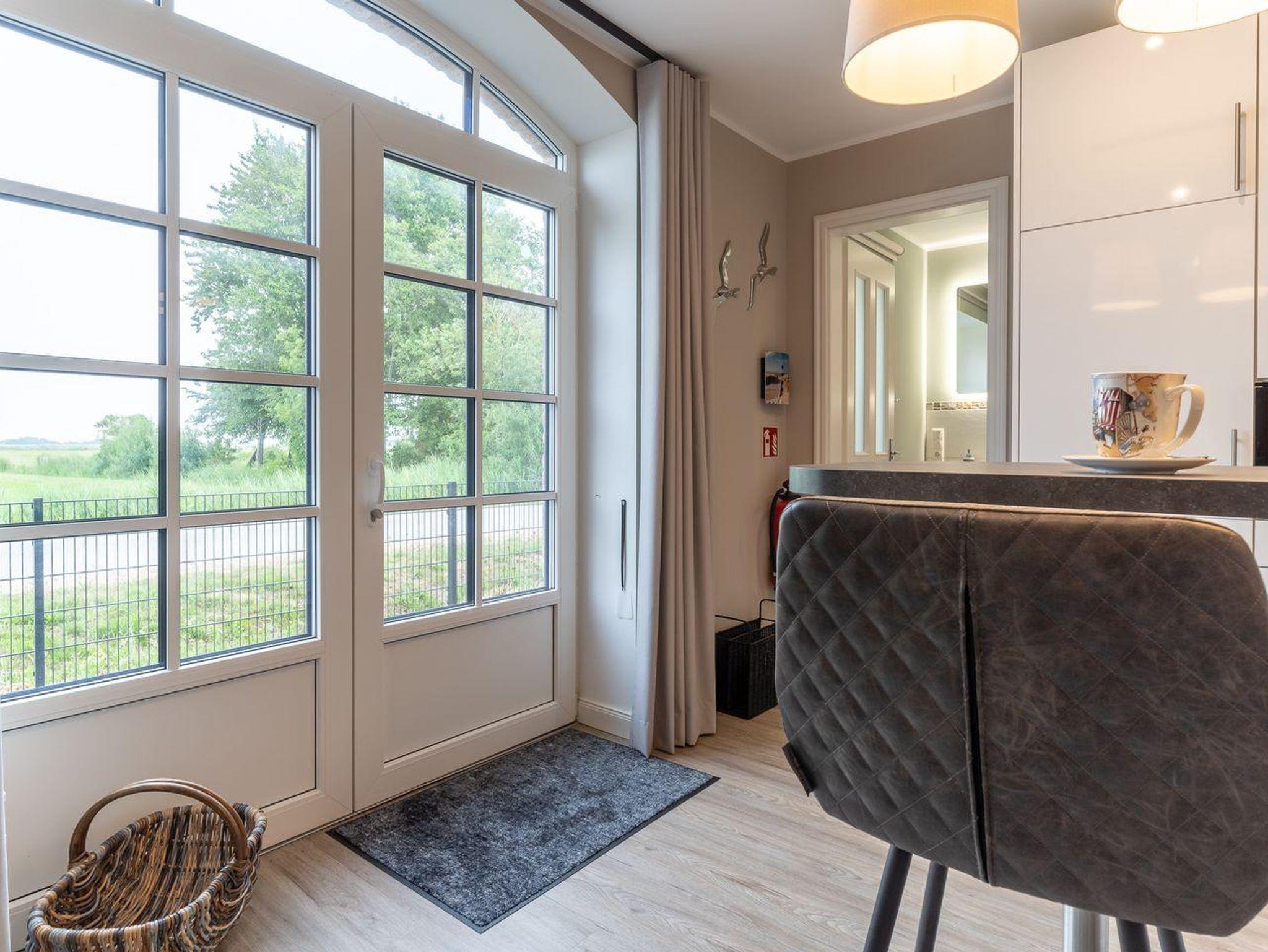 Die ruhige Lage, hinter dem alten Seedeich, verbindet den weiten Blick ins Grüne mit sehr guter Lage innerhalb von St. Peter-Ording.