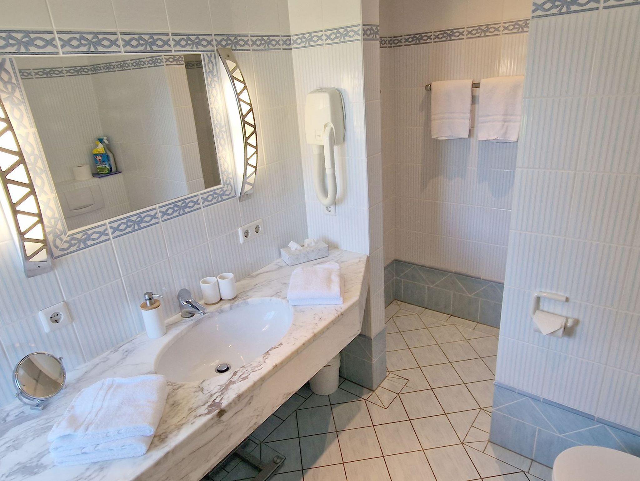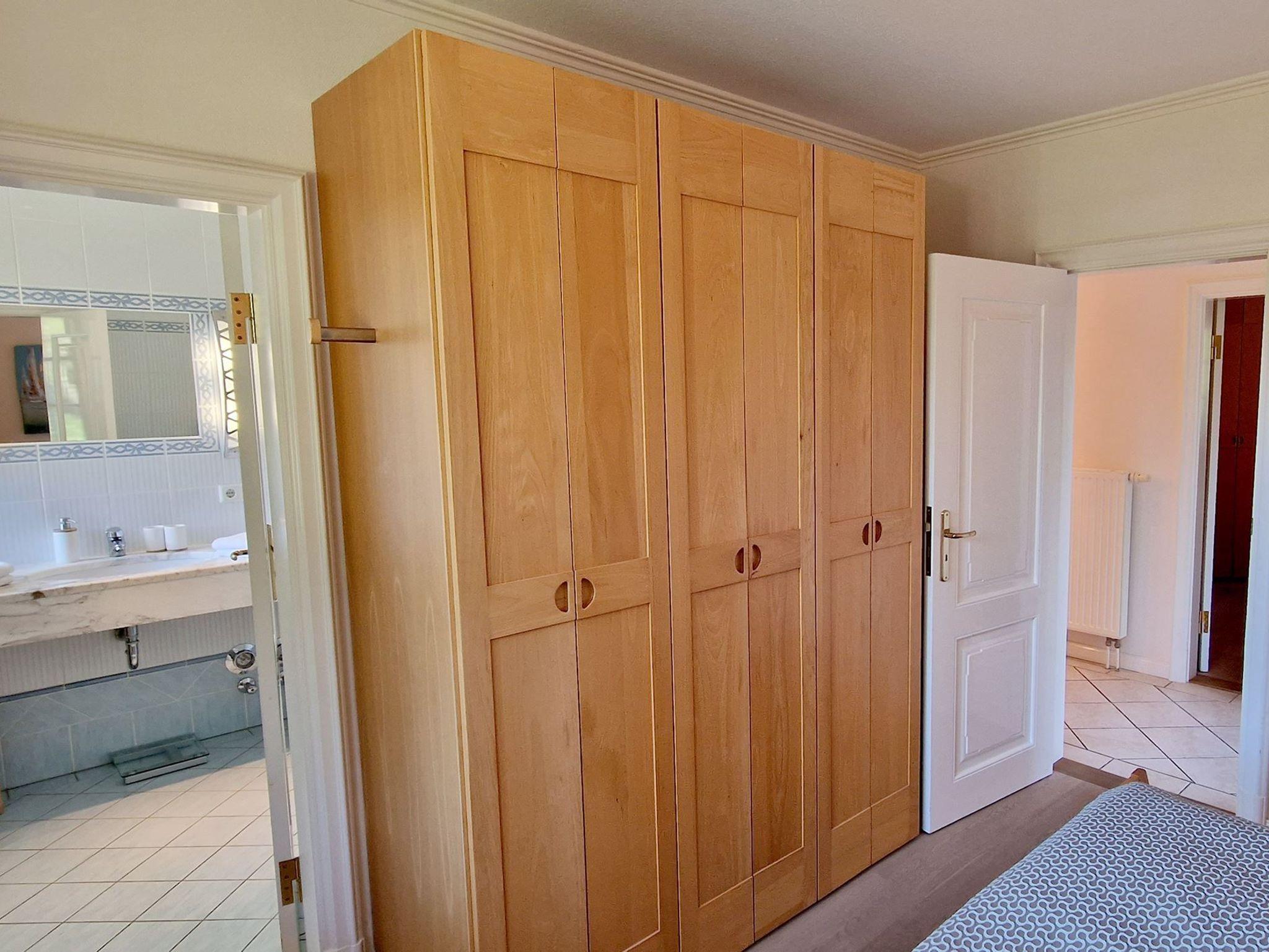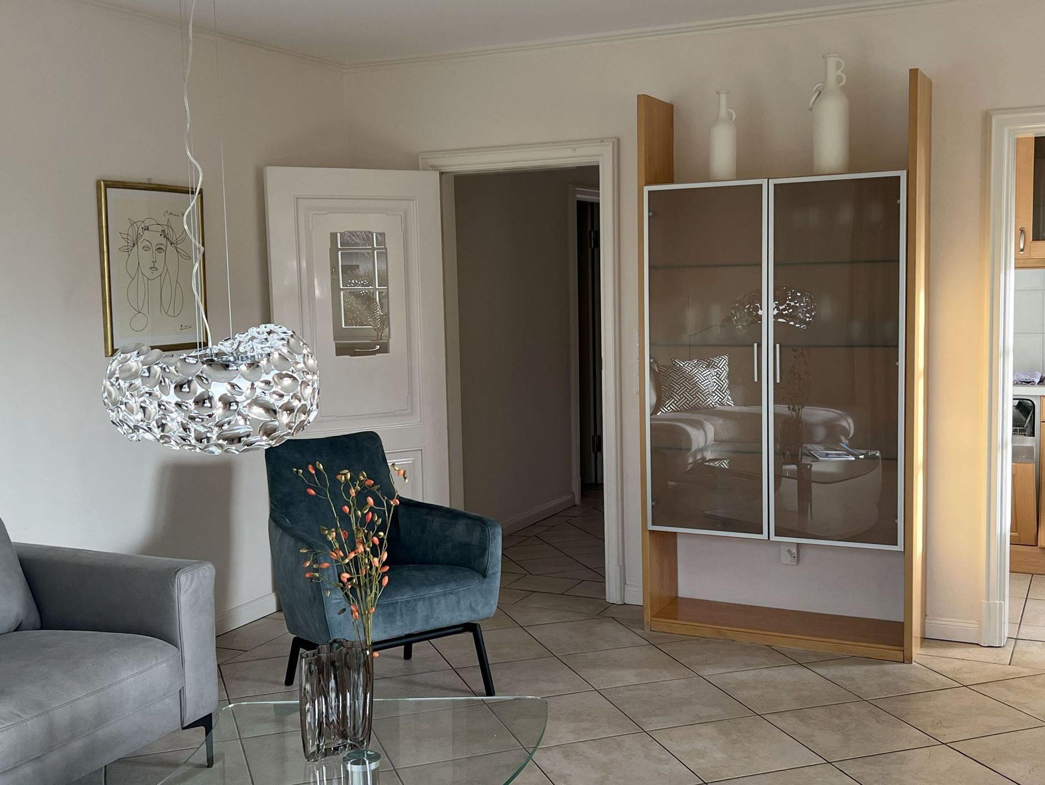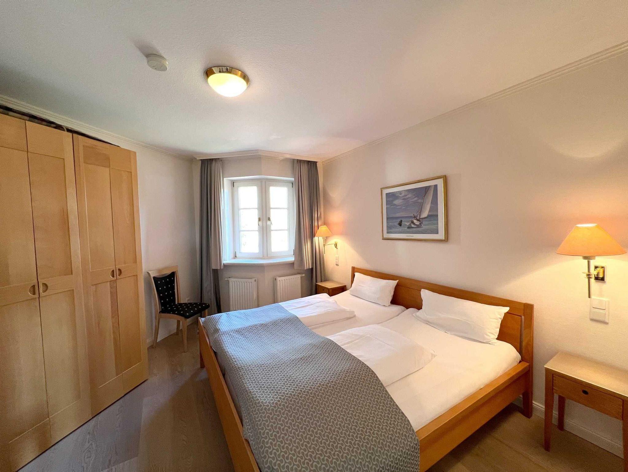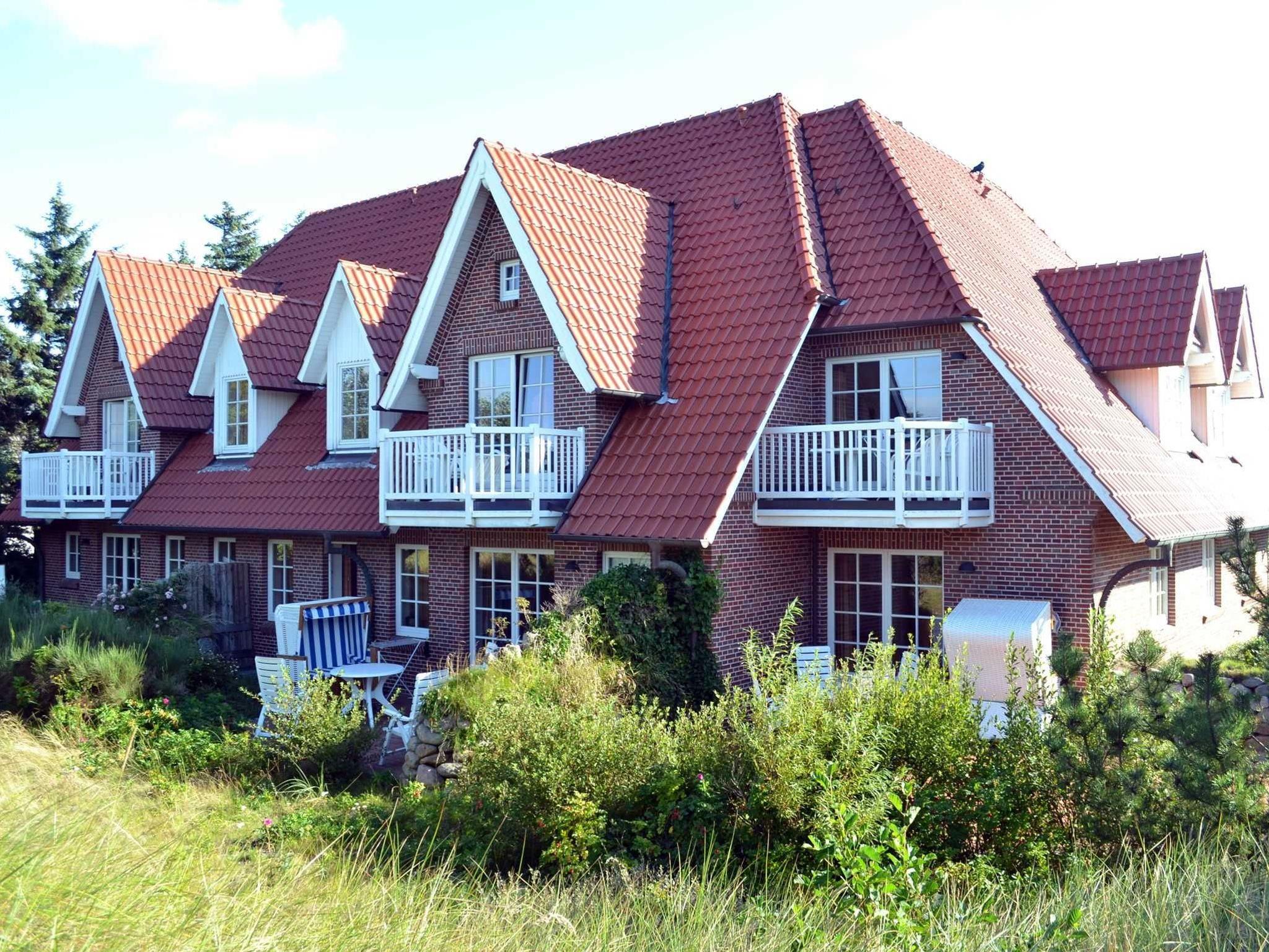 Die 85 qm große Ferienwohnung ist für 4 Pers. geplant und teilt sich wie folgt auf: Eingangsbereich; Eingangsdiele mit Garderobe; großzügiger Wohn-Essbereich mit direktem Zugang auf eine große, durch Friesenwälle und Gehölze abgeschirmte Terrasse mit Gartenmöbeln und einem Strandkorb. Zwei Schlafzimmer mit Doppelbetten, zwei Duschbäder/WC. Separate Küche. Im Untergeschoss des mittleren Einganges befindet sich eine Gemeinschaftssauna (Ruheraum, verschiede Duschen, Fußbäder) ,Fitnessraum, Tischtennis. Im Außenbereich: ein Spielplatz für die Kleinsten, Stellplatz, Fahrradständer.