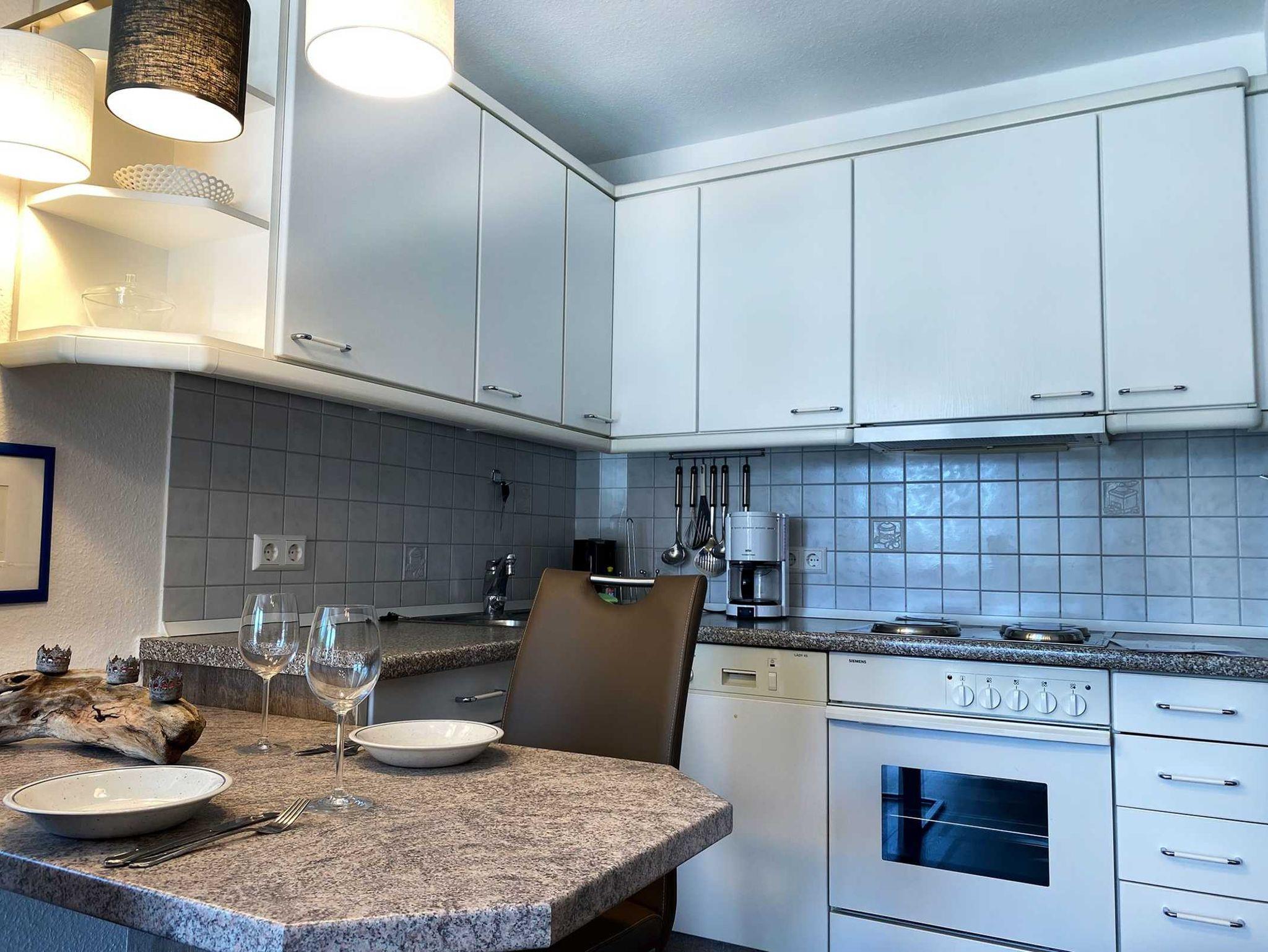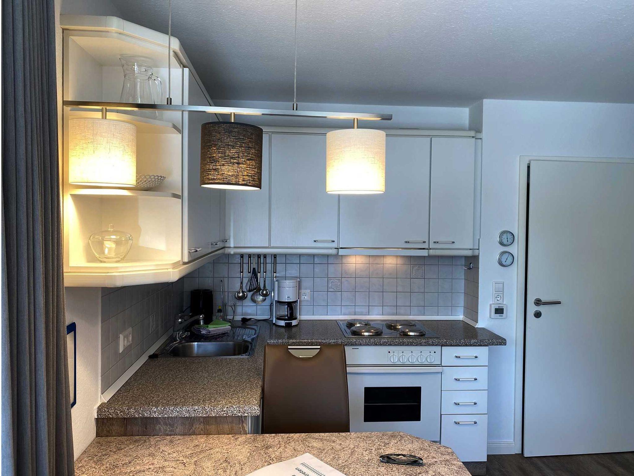 Modern, gemütlich und zentral ! Komplett renovierte, moderne 2-Zimmer Ferienwohnung in St. Peter-Bad für bis zu 3 Personen besticht nicht nur mit dem großen, sonnigen Nord-West-Balkon. Auch an der gemütlichen Sitzecke, der modernen, offenen Küche mit 4-Plattenherd und Backofen und dem modernisierten Bad werden Sie Ihre Urlaubsfreude haben. Nachts spannen Sie auf der modernen Schlafcouch im Wohnzimmer oder im Doppelbett des Schlafzimmers aus. Wärme gibt die neue Infrarot-Heizung.PKW Stellplatz auf dem Grundstück, Nr. 1.