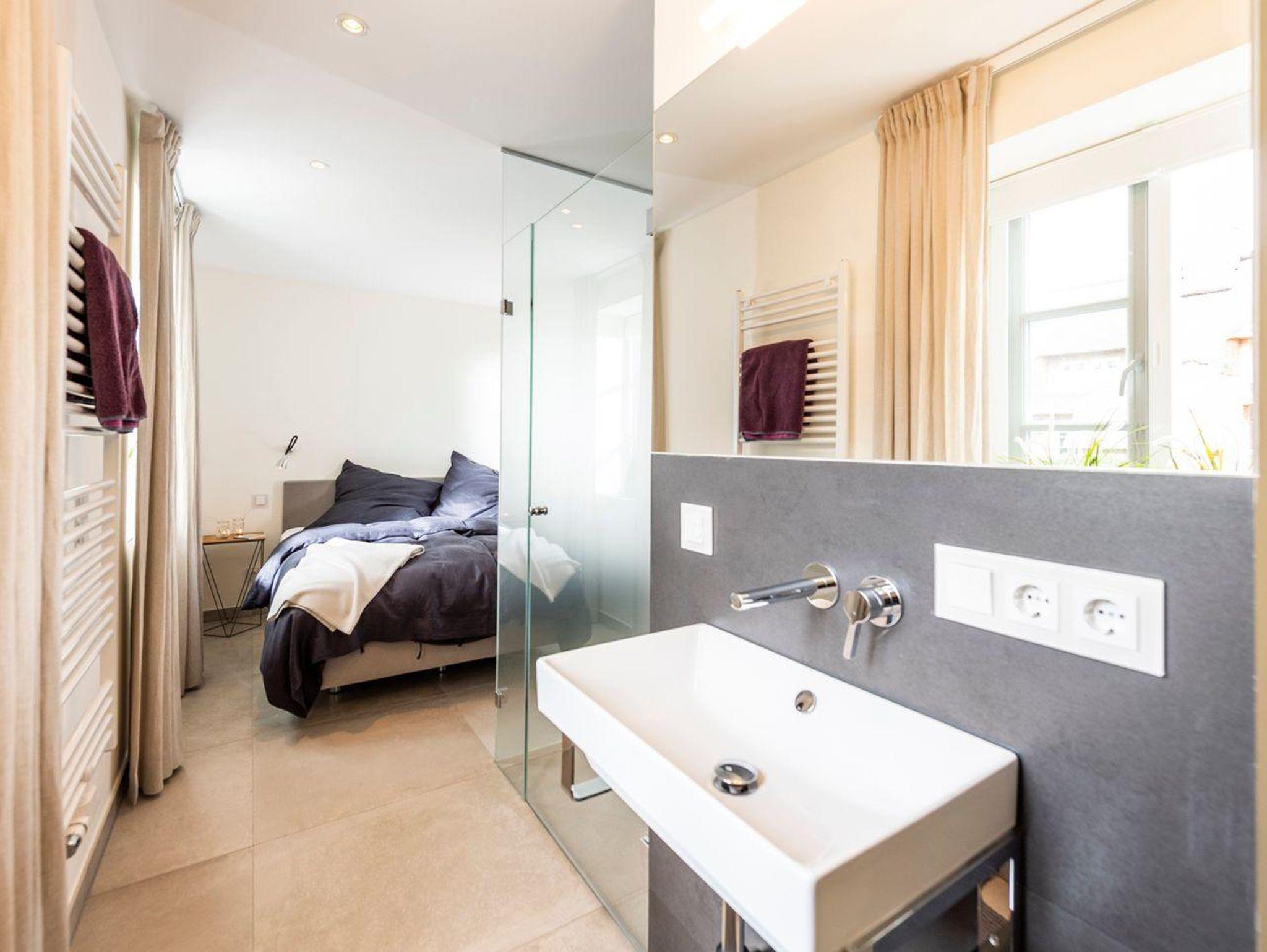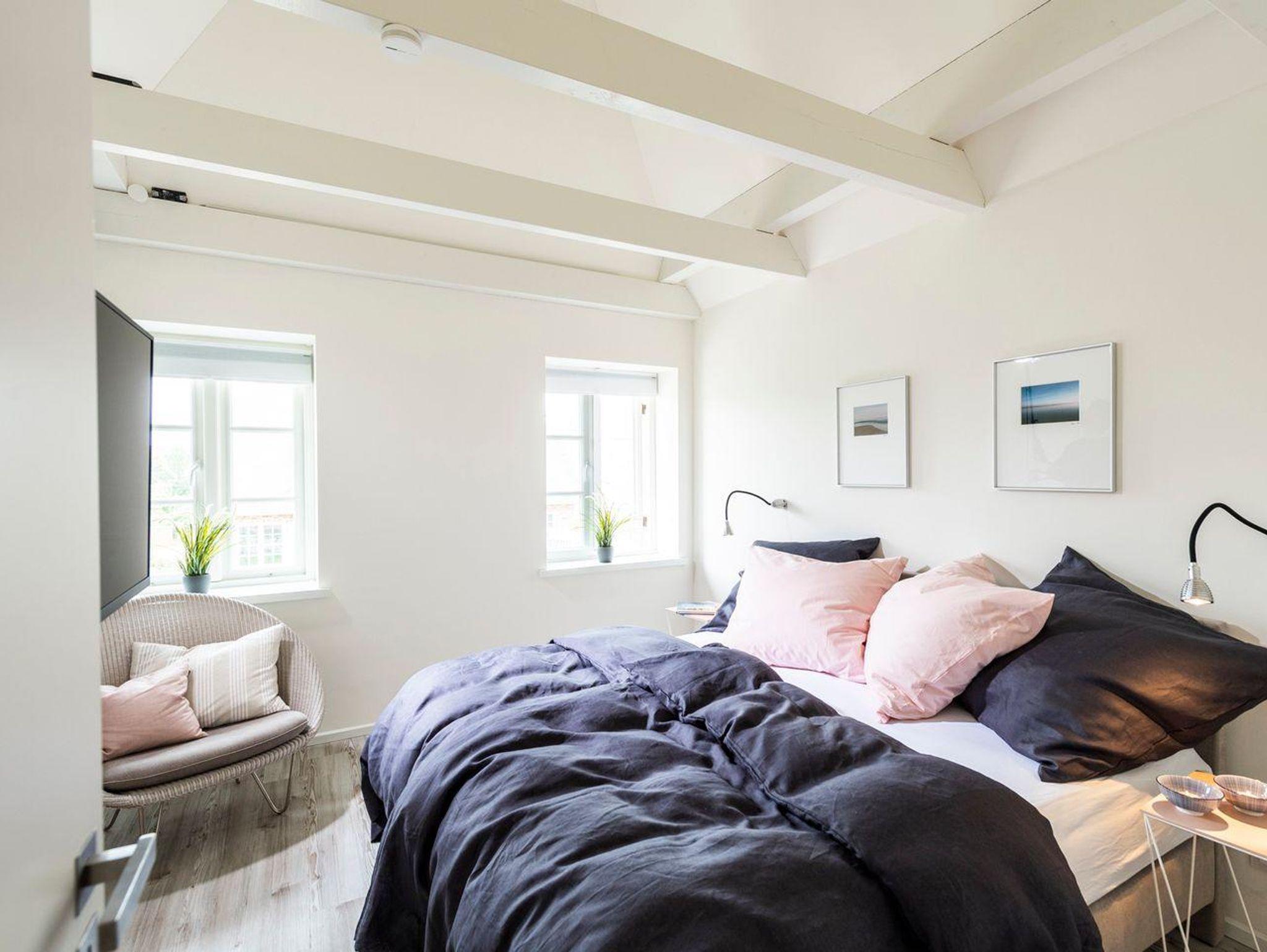 Im Obergeschoss finden Sie ein weiteres Schlafzimmer mit eigenem Duschbad/WC und Boxspringbett (180 x 200 cm), ein Schlafzimmer mit einem weiteren Boxspringbett (180 x 200 cm), ein Schlafzimmer mit 2 Einzelbetten (90 x 200 cm) und ein Badezimmer mit Dusche/WC.