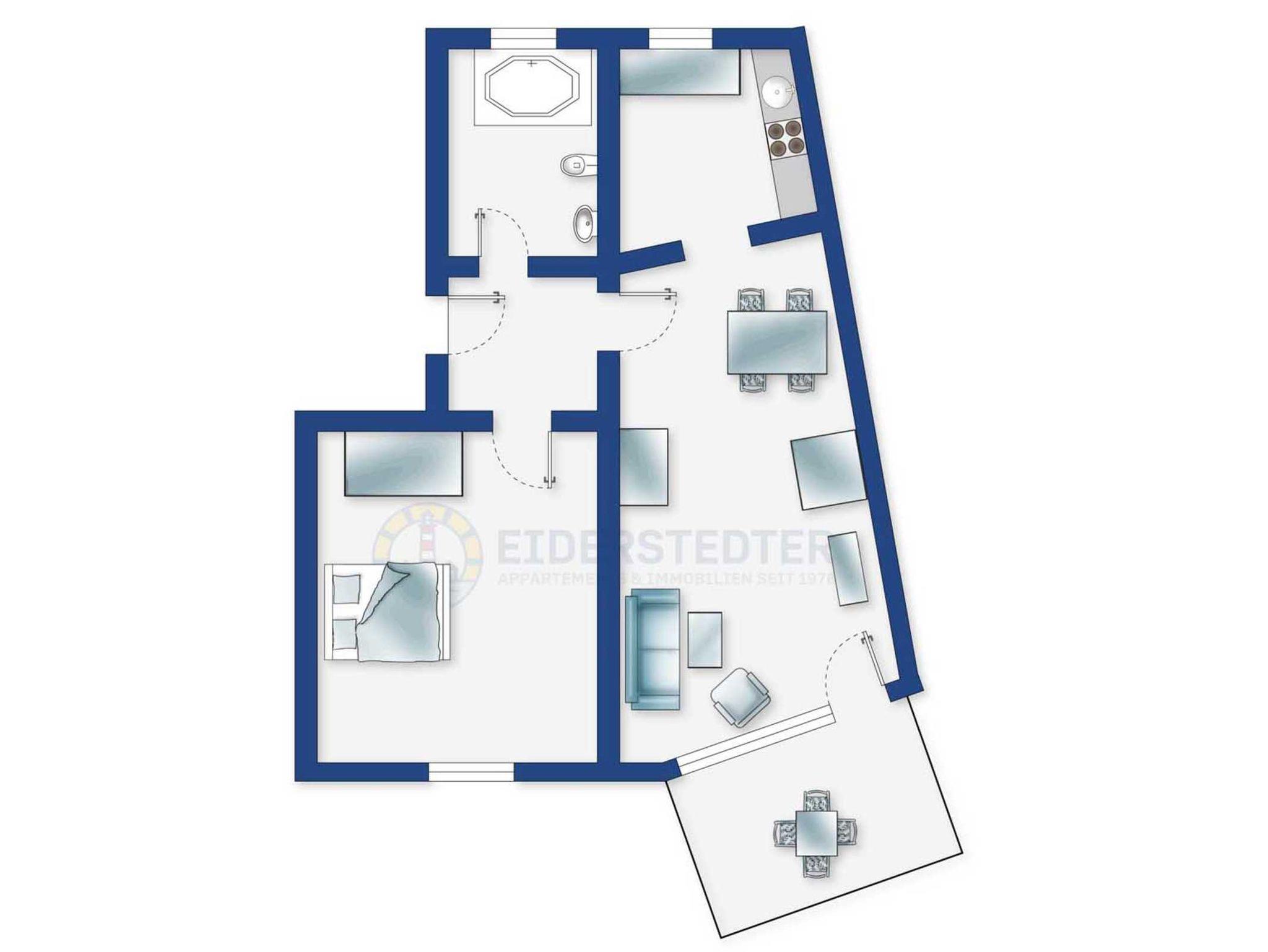 Exklusiv ausgestattete 2-Zimmer-Ferienwohnung mit ca. 42qm auf 1 Ebene (EG) für bis 2 Personen. In zentraler Lage im Ortsteil Dorf in St. Peter-Ording. Alle Geschäfte und Restaurants der Fußgängerzone sind in wenigen Gehminuten erreichbar und zum Strand ist es auch nur einer kurzer Weg. Machen Sie komfortabel Urlaub, landestypisch unter Reet.