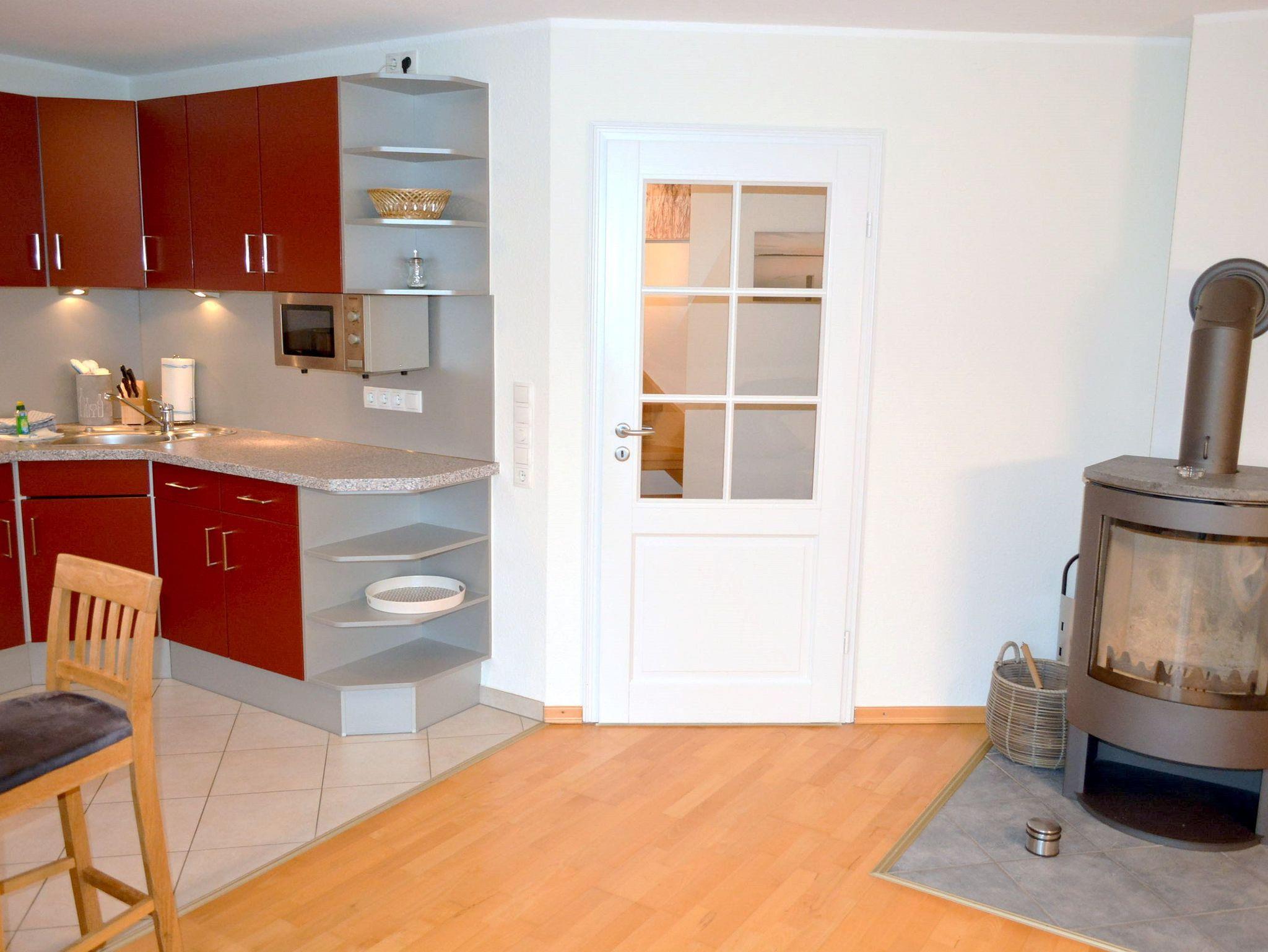 Wohnzimmer: 4 Plattenherd mit Ceranfeld und Backofen, 5 Stühle, Couchtisch, Dunstabzugshaube, DVD-Player, Eckcouch, Einbauküche, Esstisch, Flachbildschirm, Geschirr, Handmixer, Kaffeemaschine, Kaminofen nutzbar exkl. Holz, Kochtöpfe, Küchenwaage, Kühlschrank mit 3* Gefrierfach, Mikrowelle, Raclette Grill, Sat-TV, Spülmaschine, Stereoanlage mit CD-Player, Toaster, TV-Lowboard, Waffeleisen, Wasserkocher