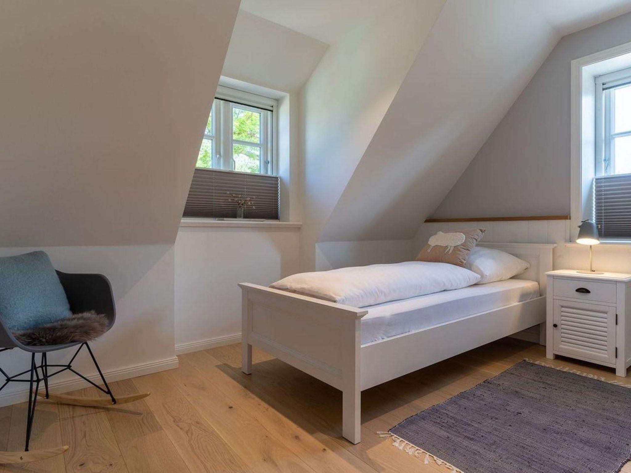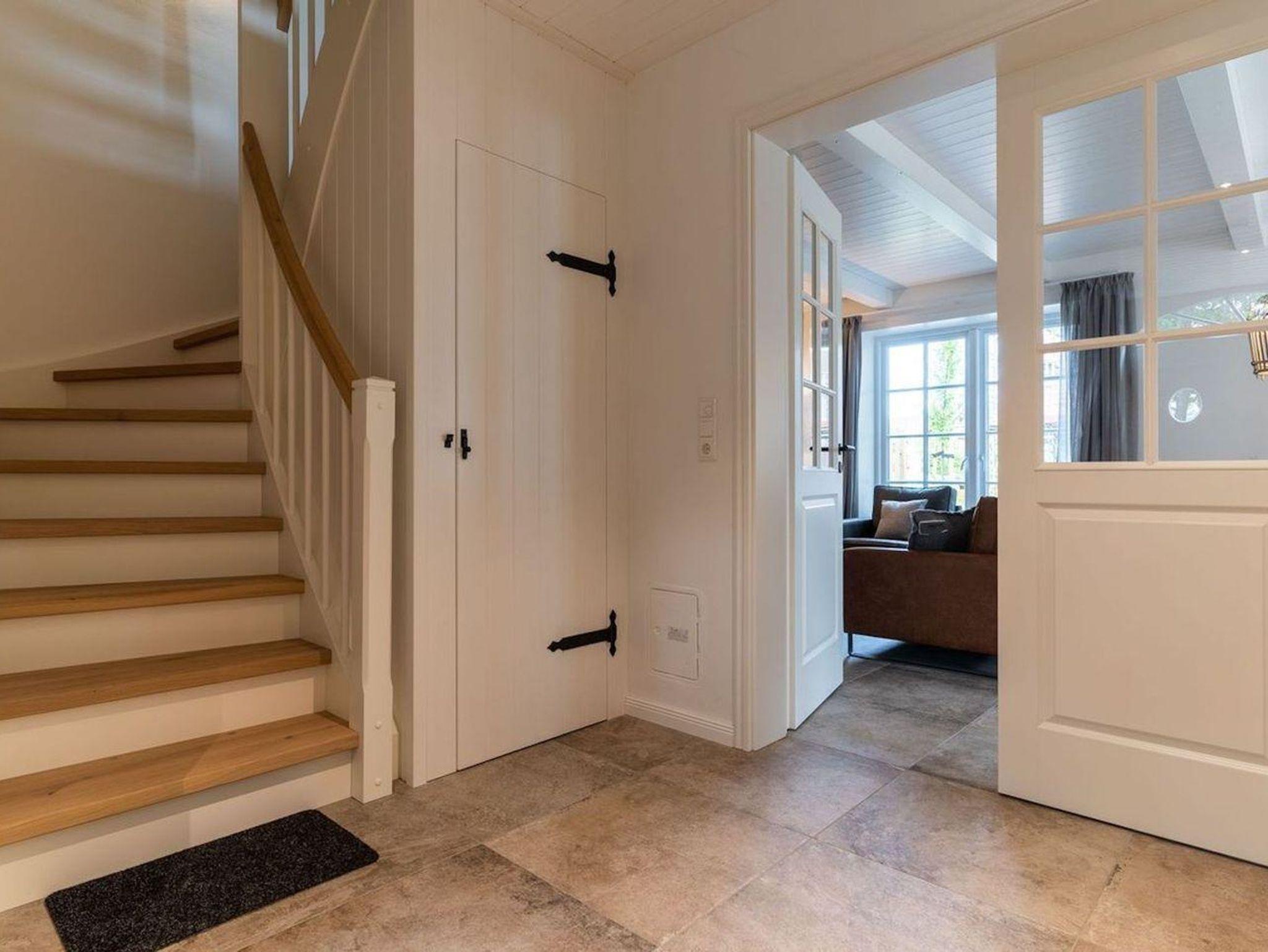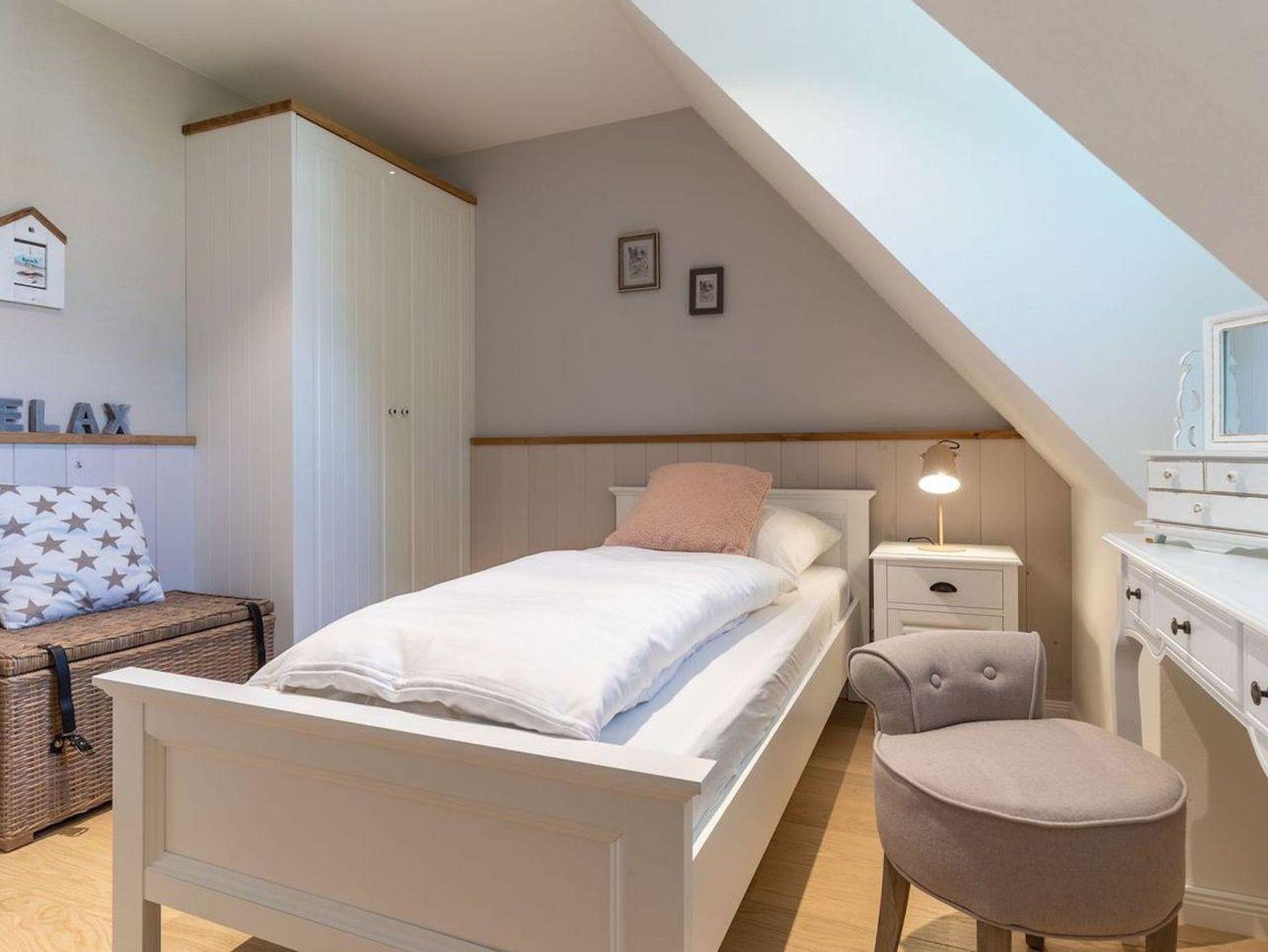 Im Erdgeschoss erwartet Sie ein lichtdurchflutetes Wohnzimmer mit einem Kamin, einer offenen Küche sowie einem integrierten Esszimmer mit hochwertigen Möbeln. Die Küche verfügt über hochwertige Elektrogeräte und genügend Platz zum gemeinsamen Kochen. An den Wohnbereich schließen sich ein Flur, ein Schlafzimmer mit einem Doppelbett und TV sowie ein Bad und ein Abstellraum. Über eine Holztreppe gelangt man in das Obergeschoss. Ein weiteres Schlafzimmer mit einem Doppelbett ist ebenfalls mit TV ausgestattet. Kleiderschränke gewähren Ihnen hinreichend Ablageflächen. Darüber hinaus befinden sich im Obergeschoss zwei weitere Schlafzimmer mit je einem Einzelbett. Ein zweites vollausgestattetes Badezimmer im OG, mit einer Dusche und zwei einzelnen Waschbecken runden das hochwertige Hauskonzept ab und lassen keine Wünsche offen. Im Obergeschoss befindet sich ebenso ein Gäste-WC. Das volle Wohlfühlprogramm erwartet Sie im Dachgeschoss, hier gelangen Sie direkt in die Sauna. Das Grundstück mit Stellplatz, Rasenfläche und einer sonnigen Terrasse ist mit heimischen Pflanzen angelegt. Auf Wunsch kann die dazugehörige Elektro-Ladestation hinzu gebucht werden. Dieses Feriendomizil ist ab dem Buchungsjahr 2024 auch mit einem Haustier buchbar! Dieses wunderschöne Haus lässt keine Wünsche offen und bringt Sie sofort in Urlaubsstimmung!