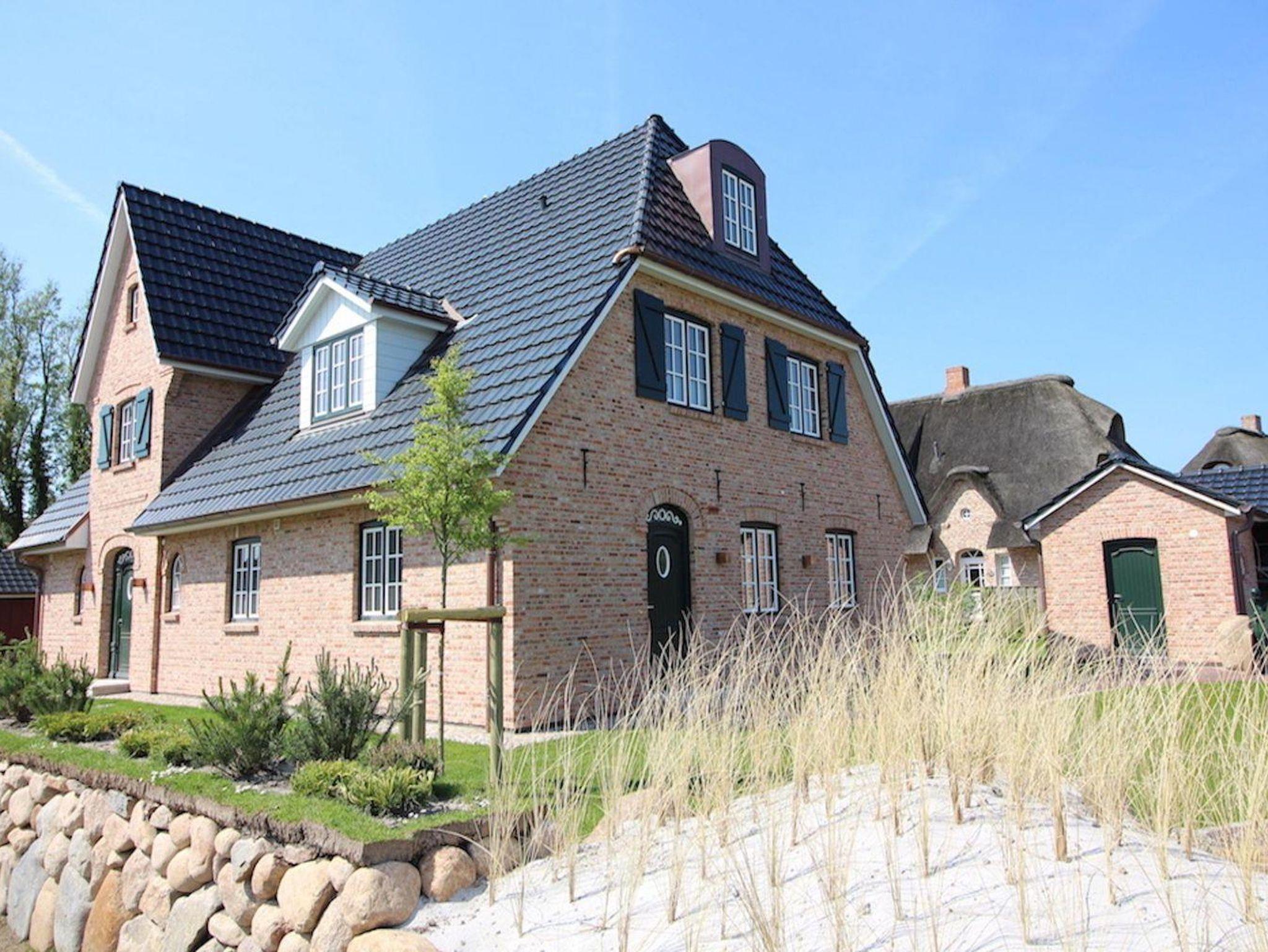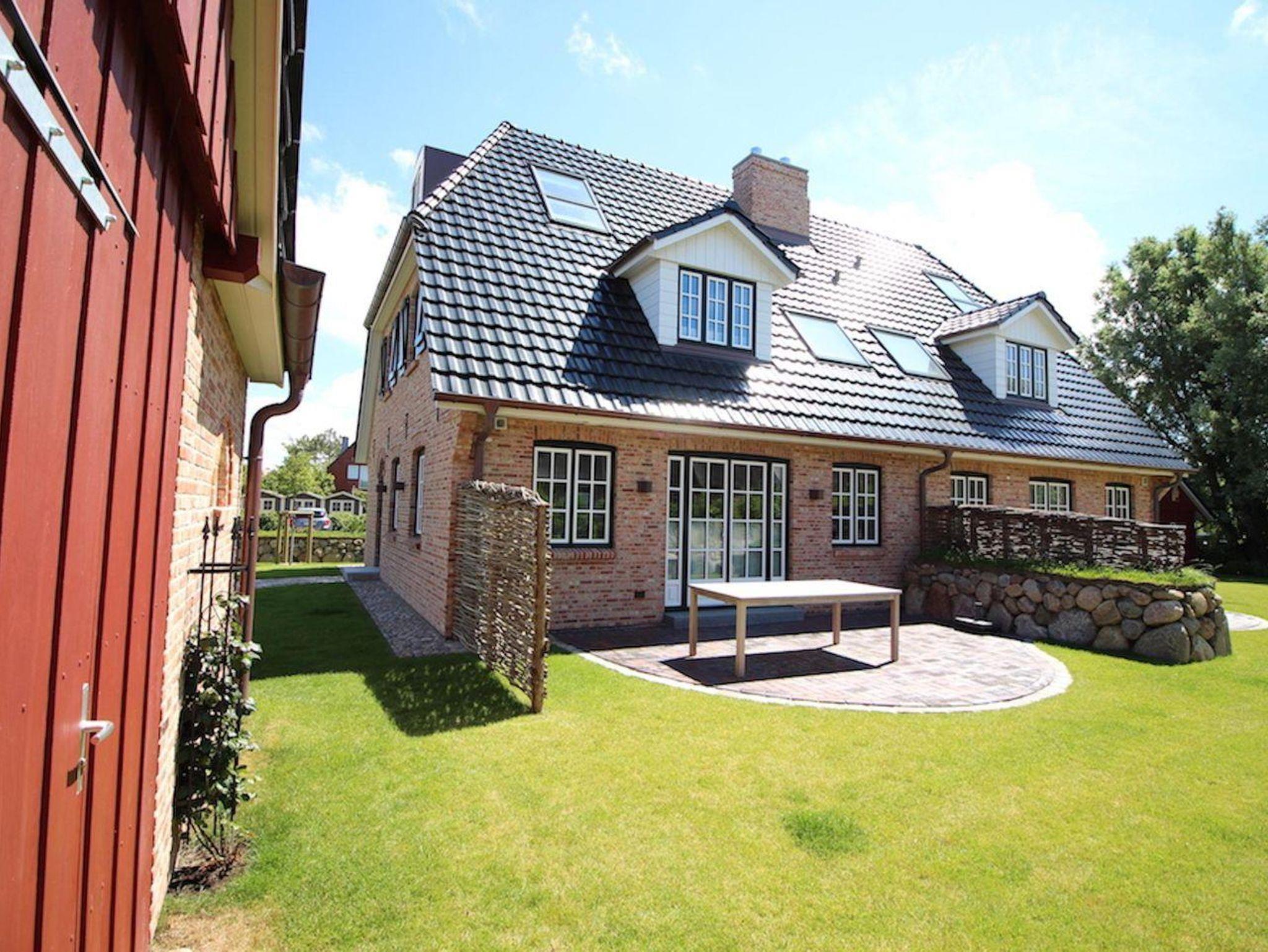 Luxuriöse Haushälfte Seekieker Hüs in St. Peter-Ording mit Sauna, Terrasse und Blick ins Grüne, nah am Strand.