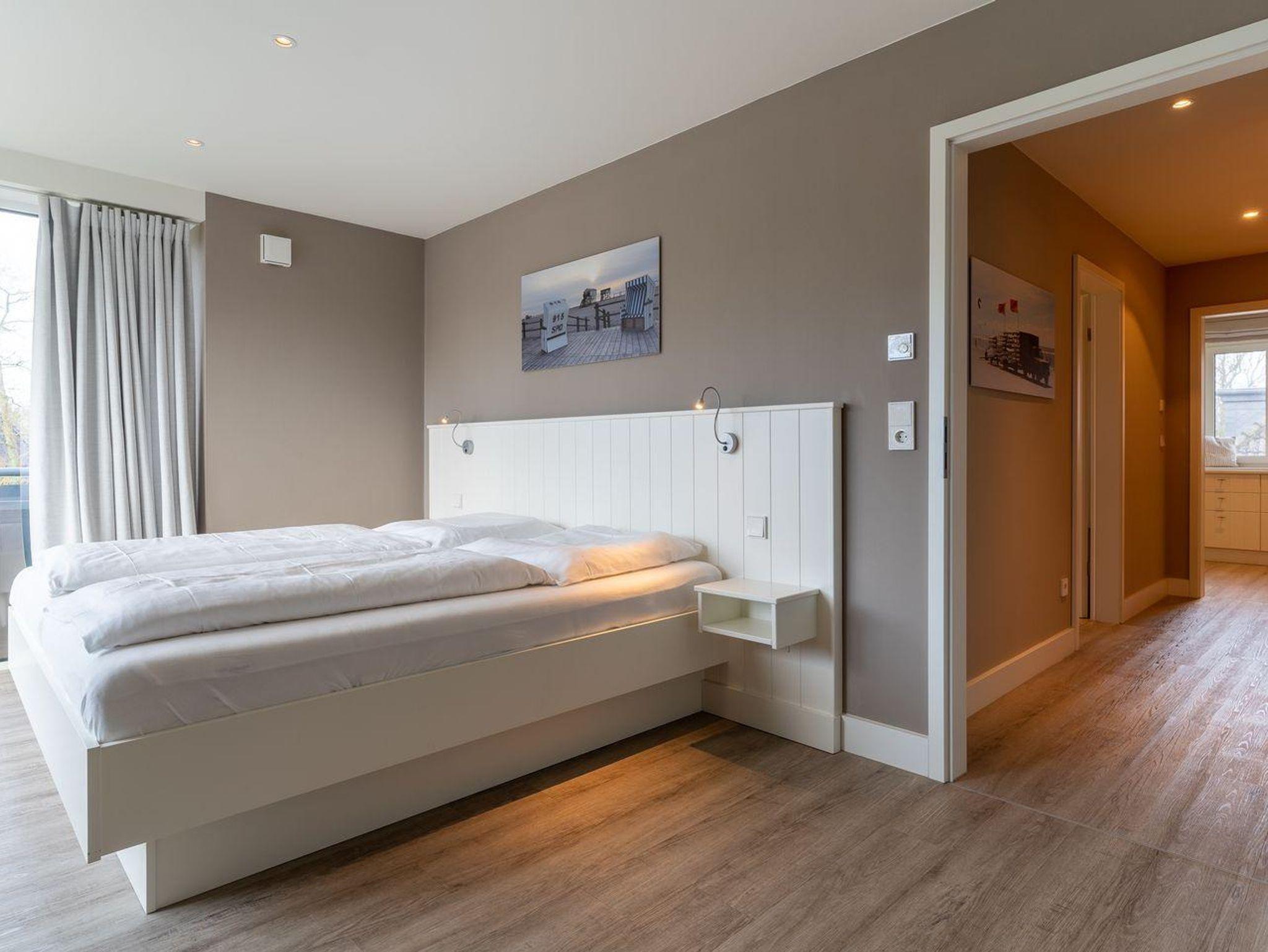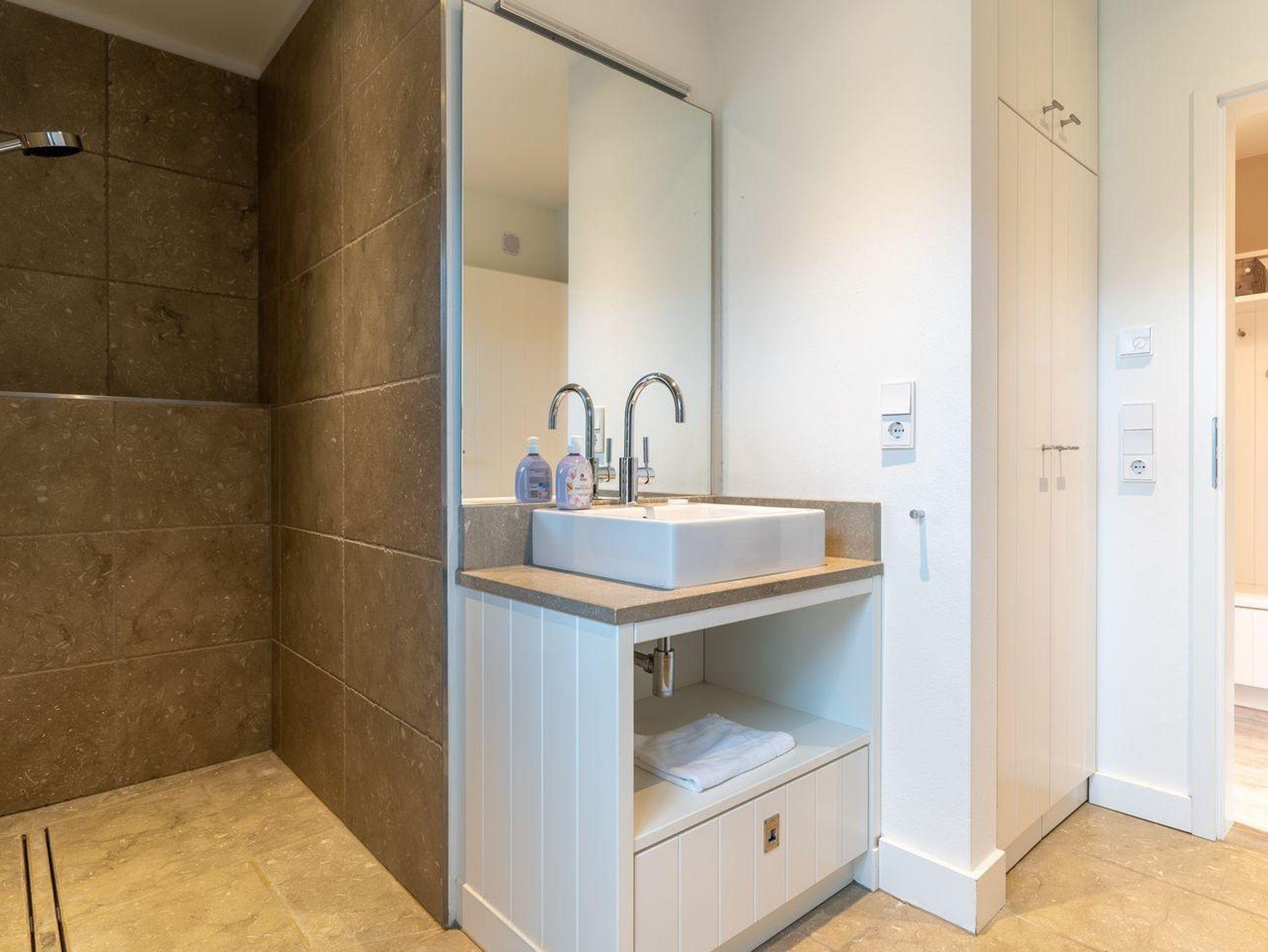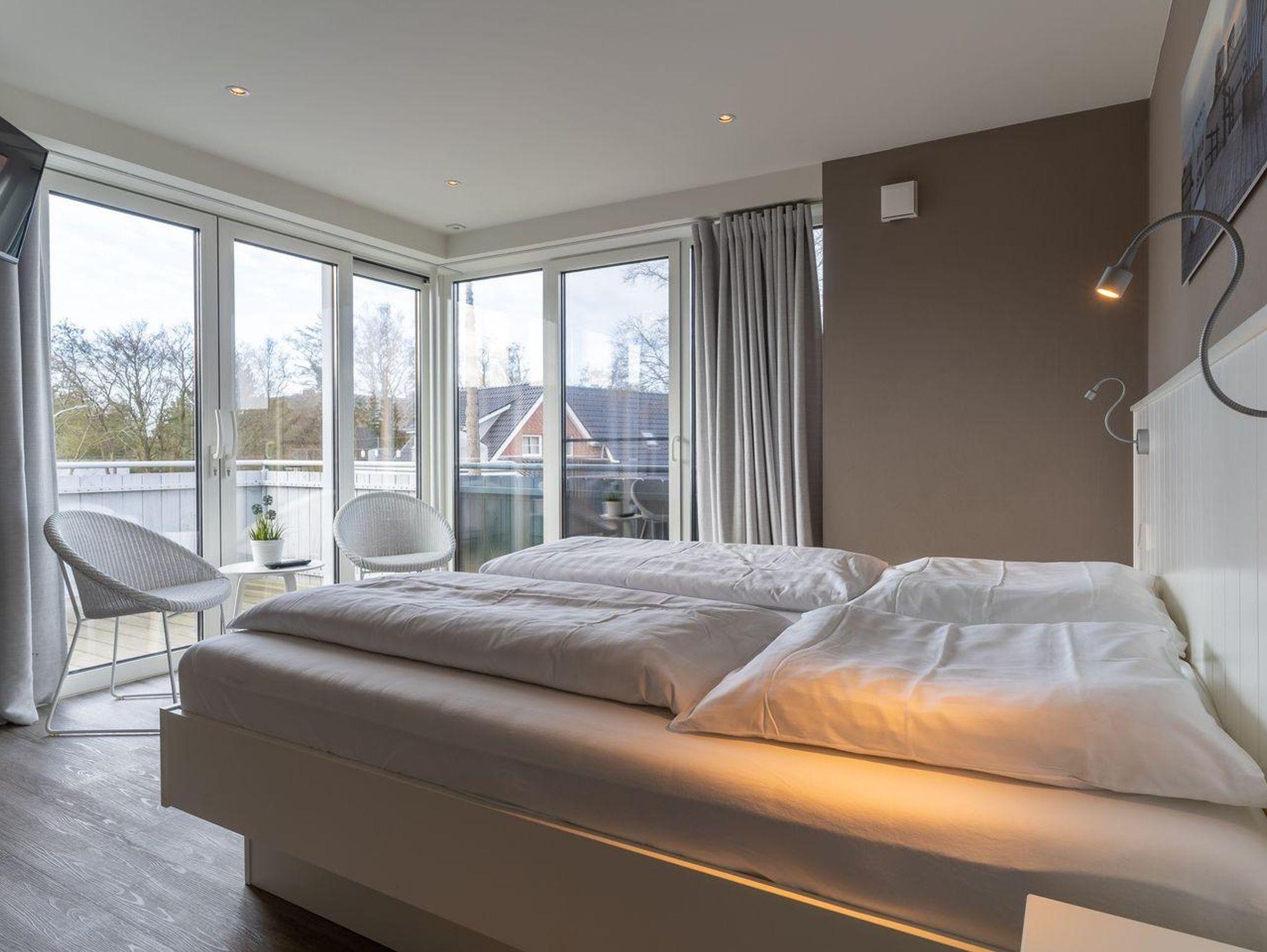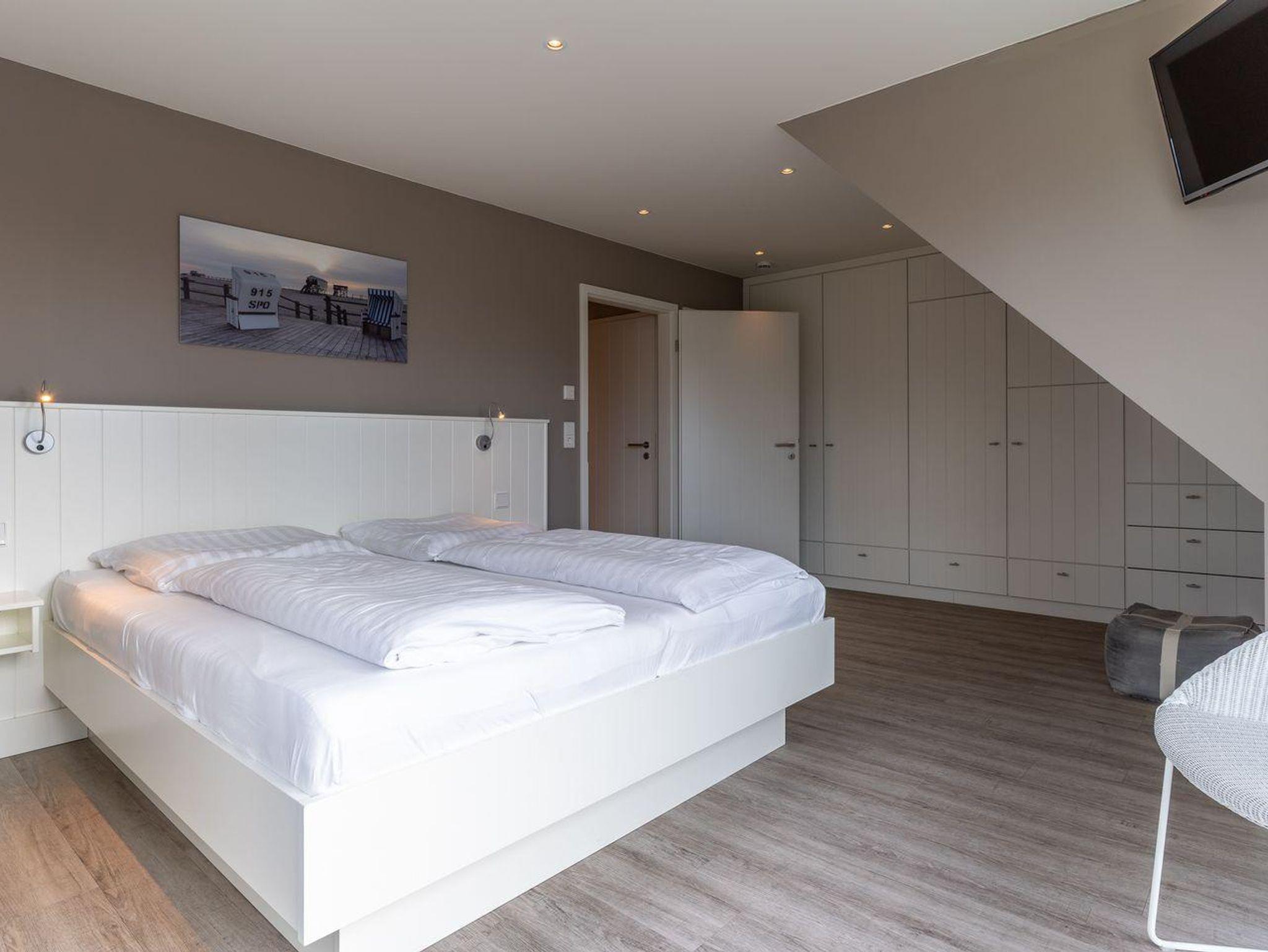Über eine Holztreppe gelangt man in das Obergeschoss mit zwei großzügigen Schlafzimmern, ein Doppelschlafzimmer mit TV und großem Einbauschrank und ein Dreibettzimmer mit einem Einzelbett, sowie 2 weiteren Einzelbetten, diese können jedoch mit einem Klick zu einem Doppelbett umgewandelt werden. Durchdacht bis ins letzte Detail. Im OG ist außerdem noch ein 3. Bad - ein Vollbad mit Dusche und Badewanne.