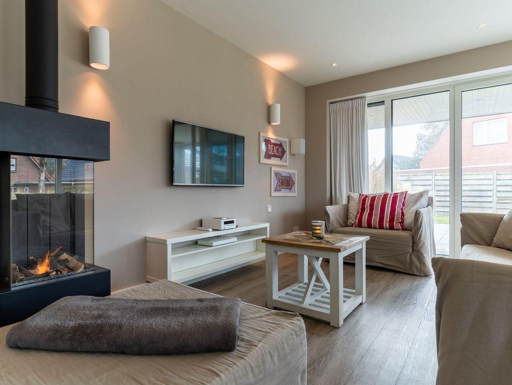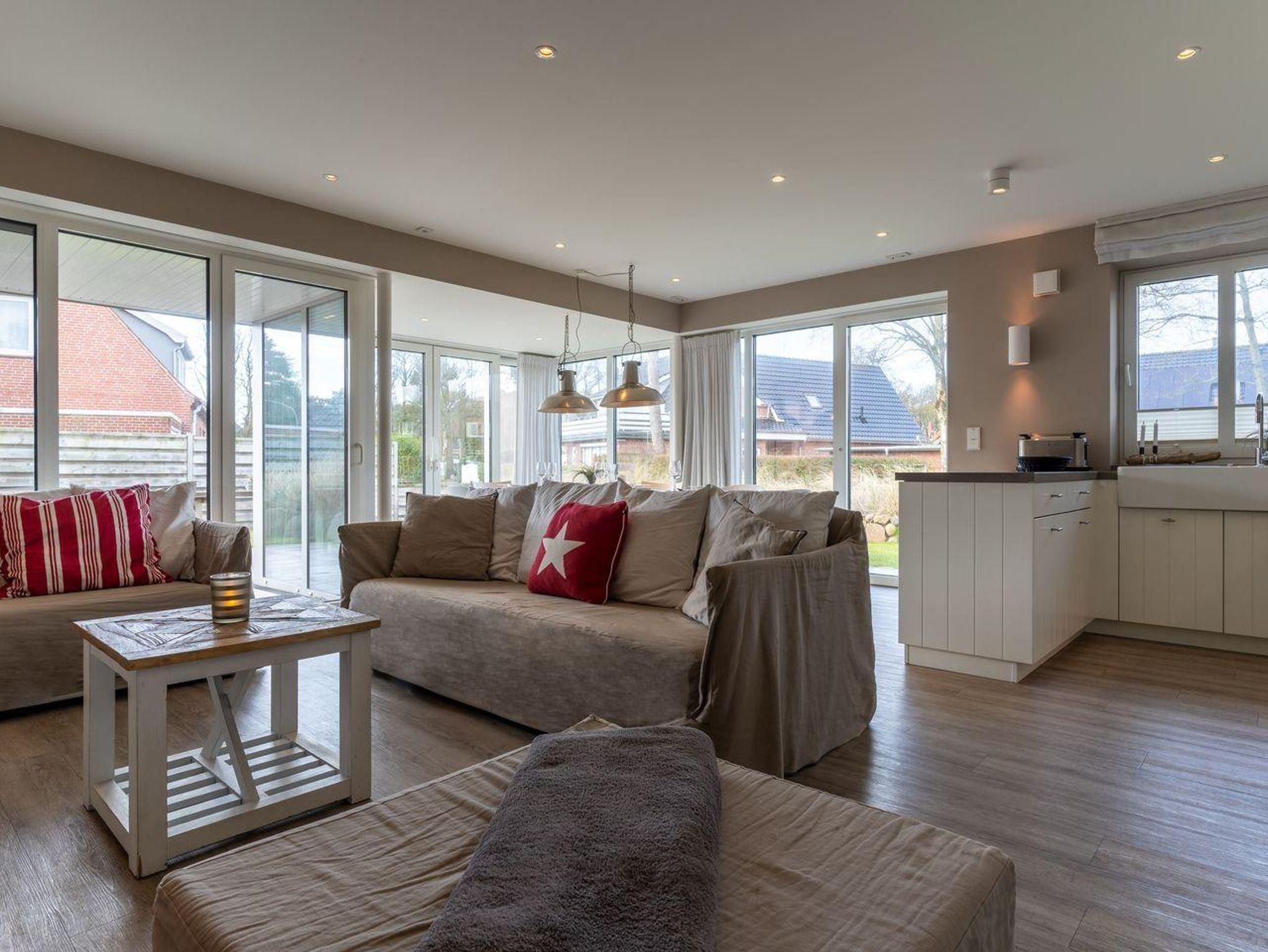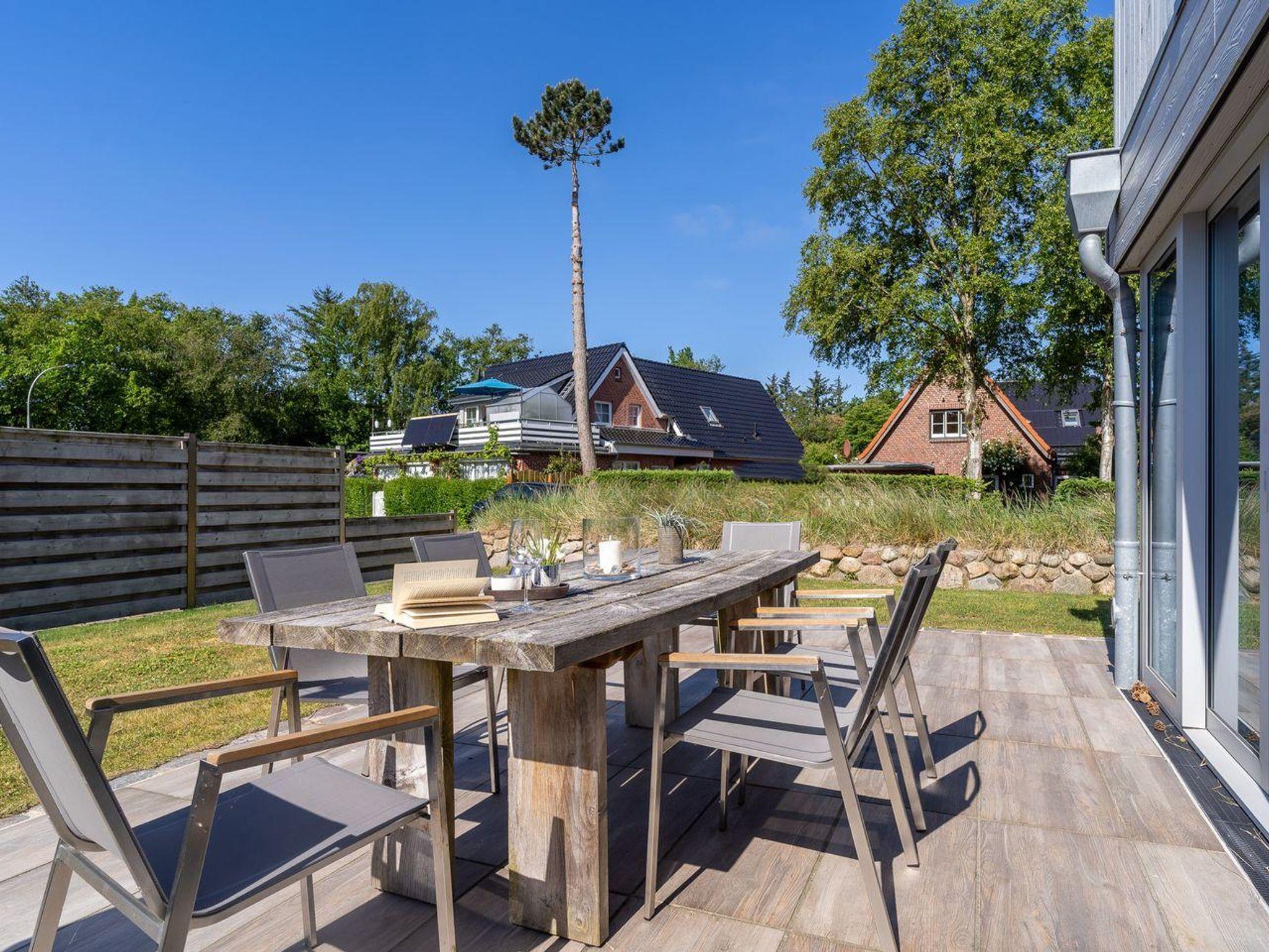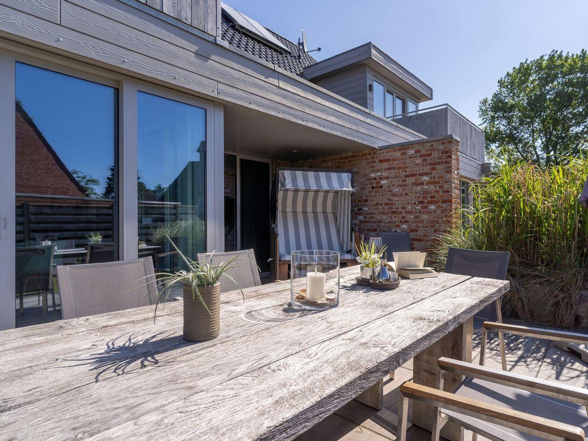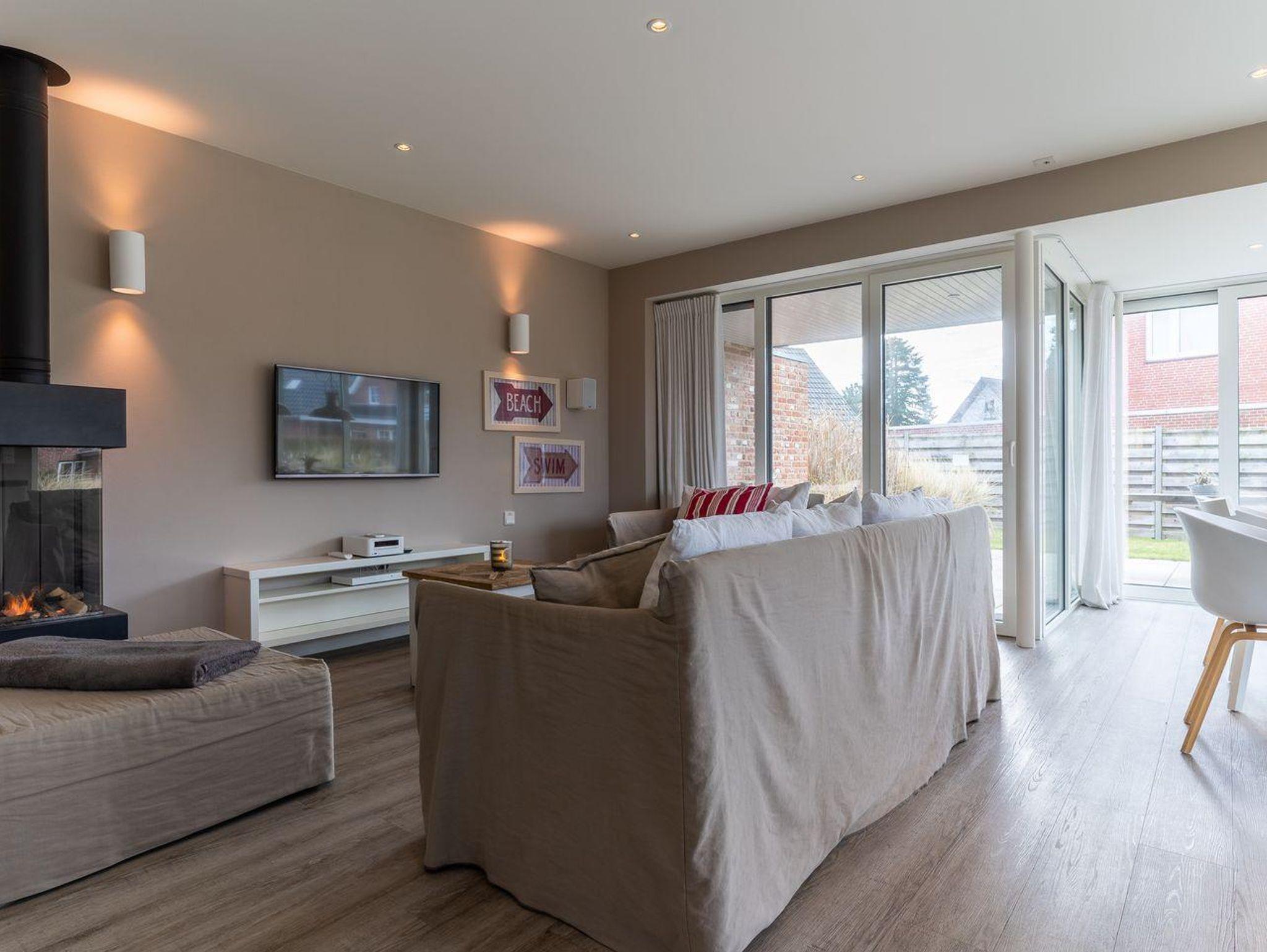 Luxuriöse Haushälfte in St. Peter-Ording mit Sauna, Kamin und geschützter Terrasse für erholsame Urlaubstage.