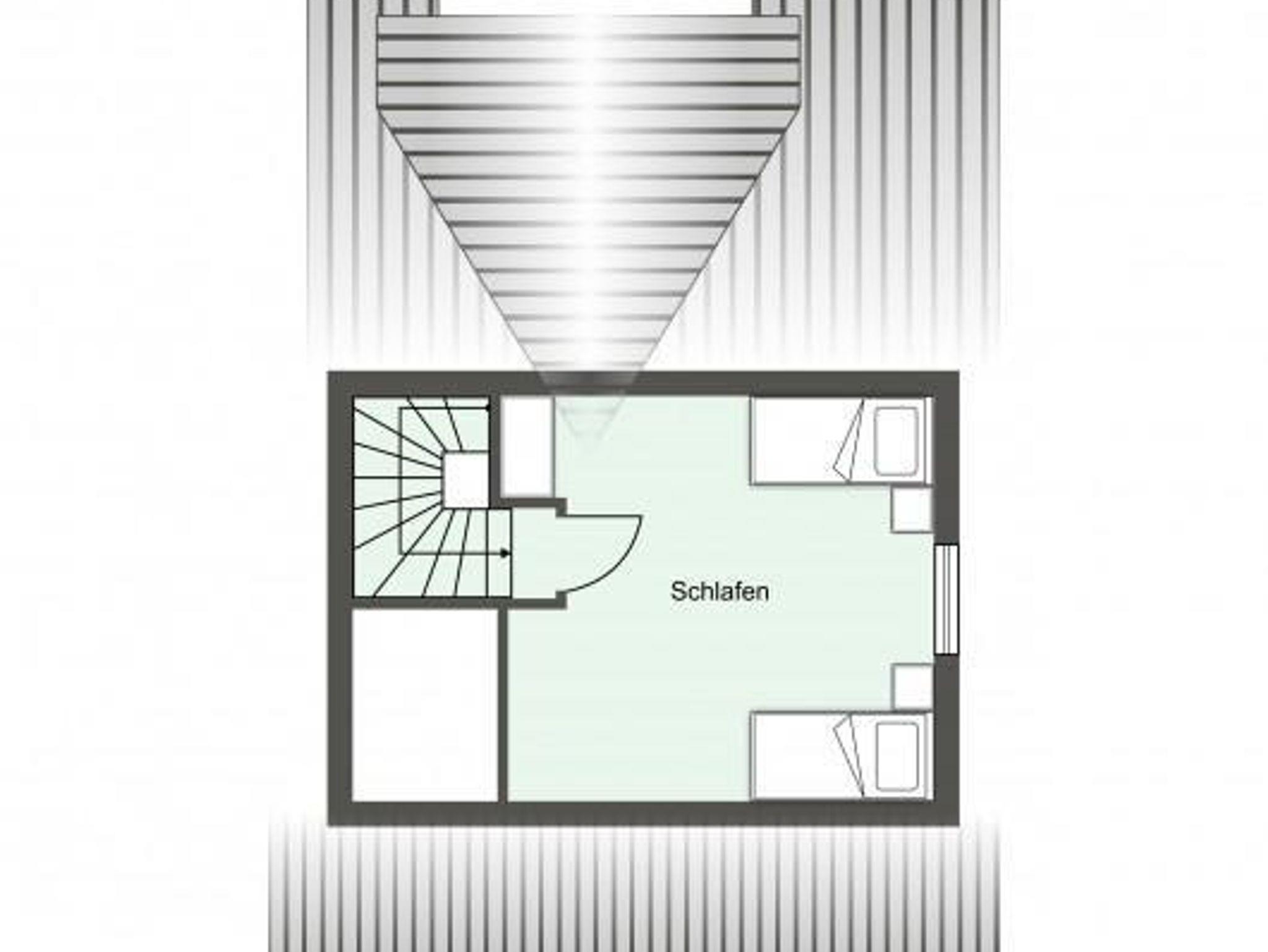 Über eine weitere Holztreppe geht es vom Flur ins Dachgeschoss mit einem weiteren Zimmer mit 2 Einzelbetten.
