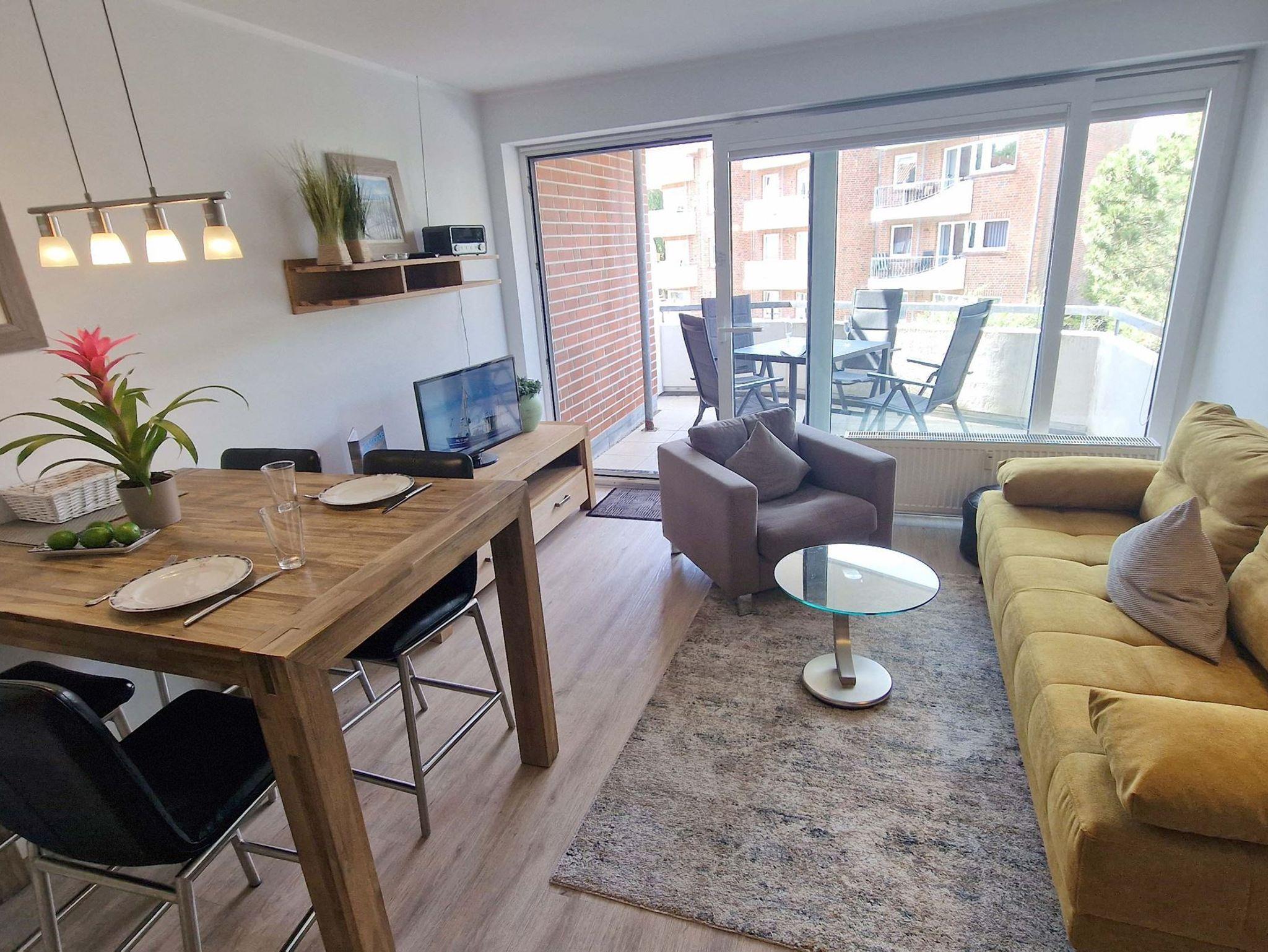 Gemütliche 2-Zimmer Ferienwohnung mit Balkon und Parkplatz in St. Peter-Ording, ideal für entspannte Urlaubstage.