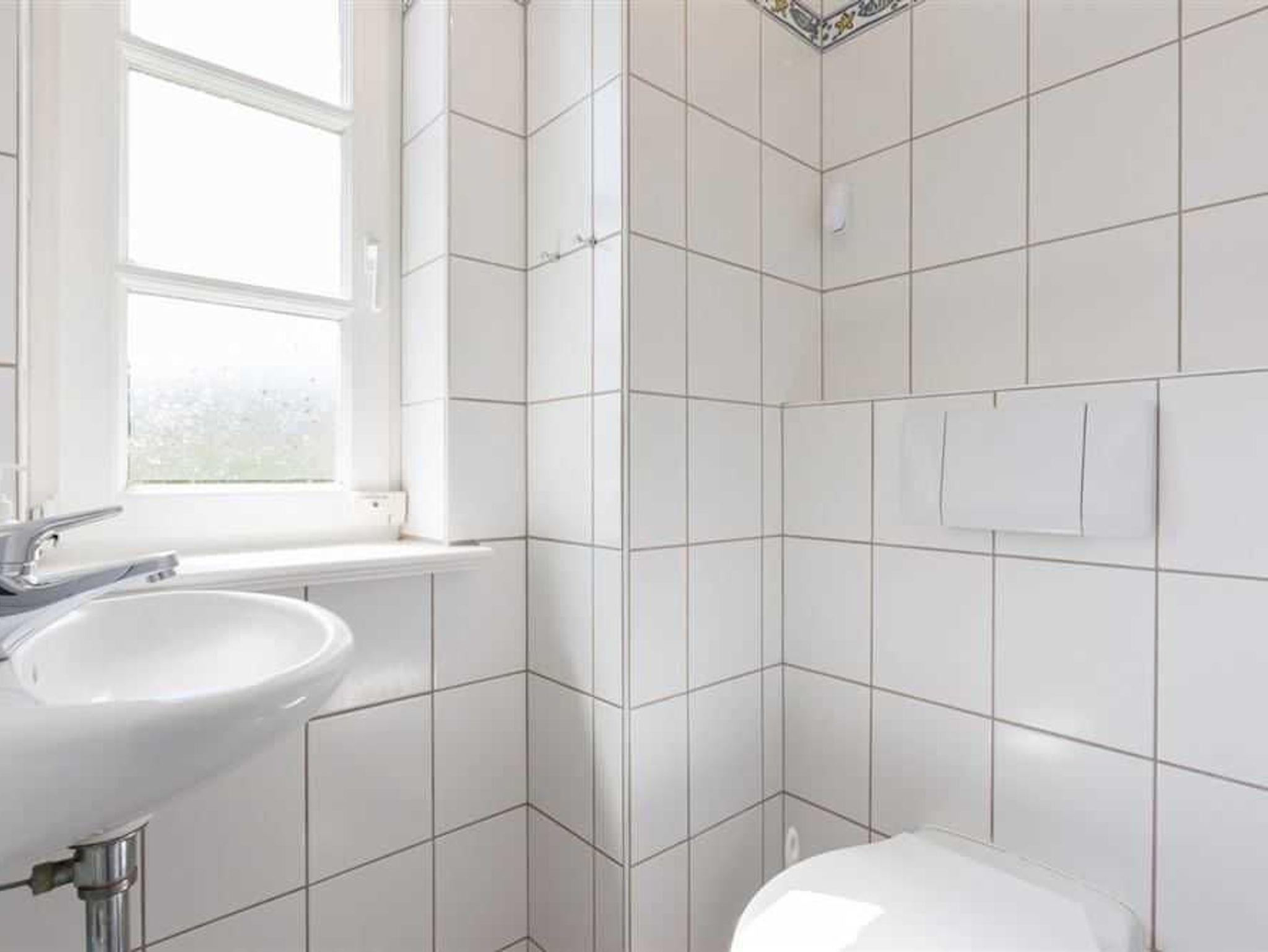 Badezimmer (Duschbad) mit Dusche mit niedrigem Eintritt (ca. 5 cm), WC, Tageslicht und Föhn.