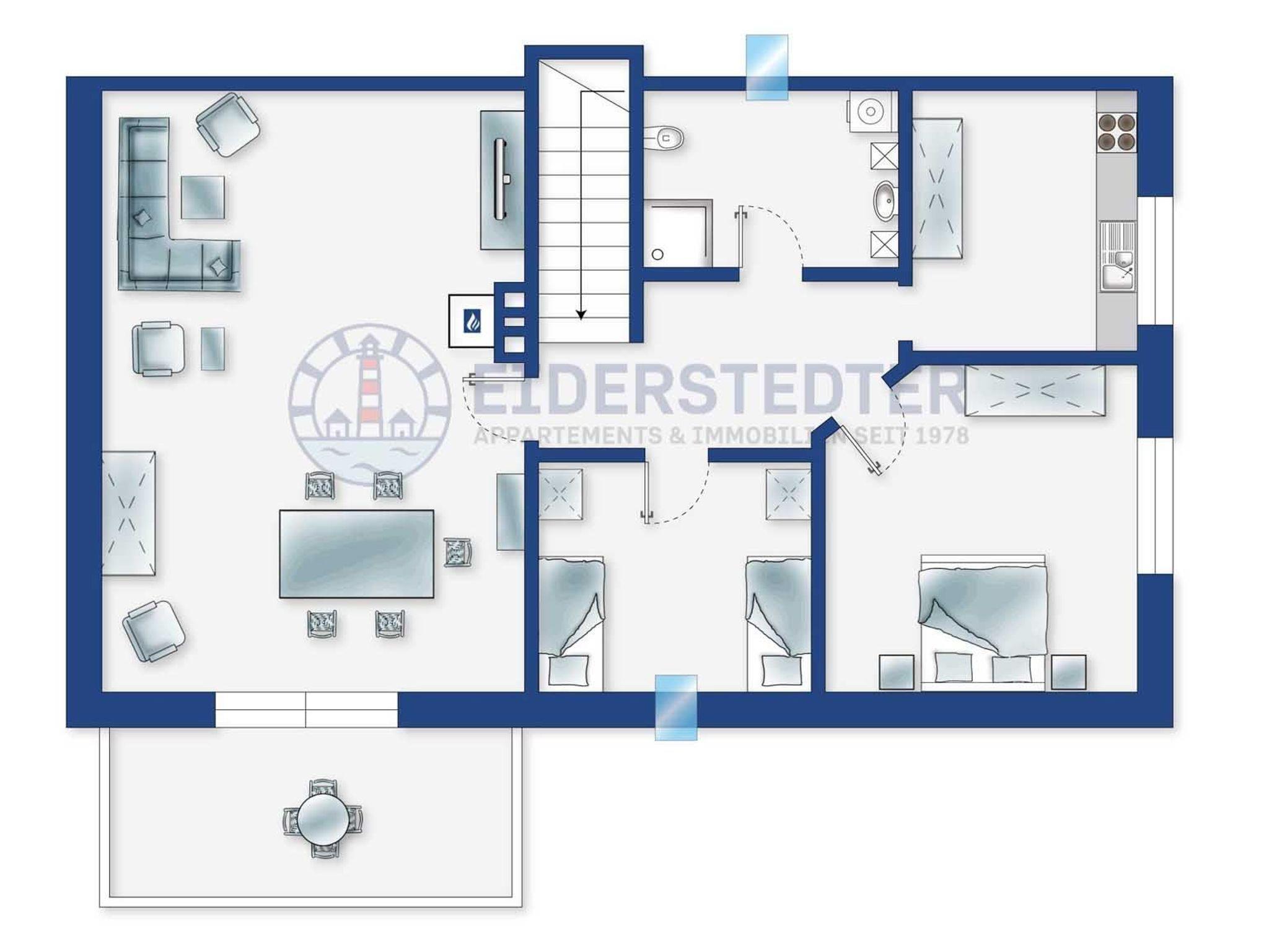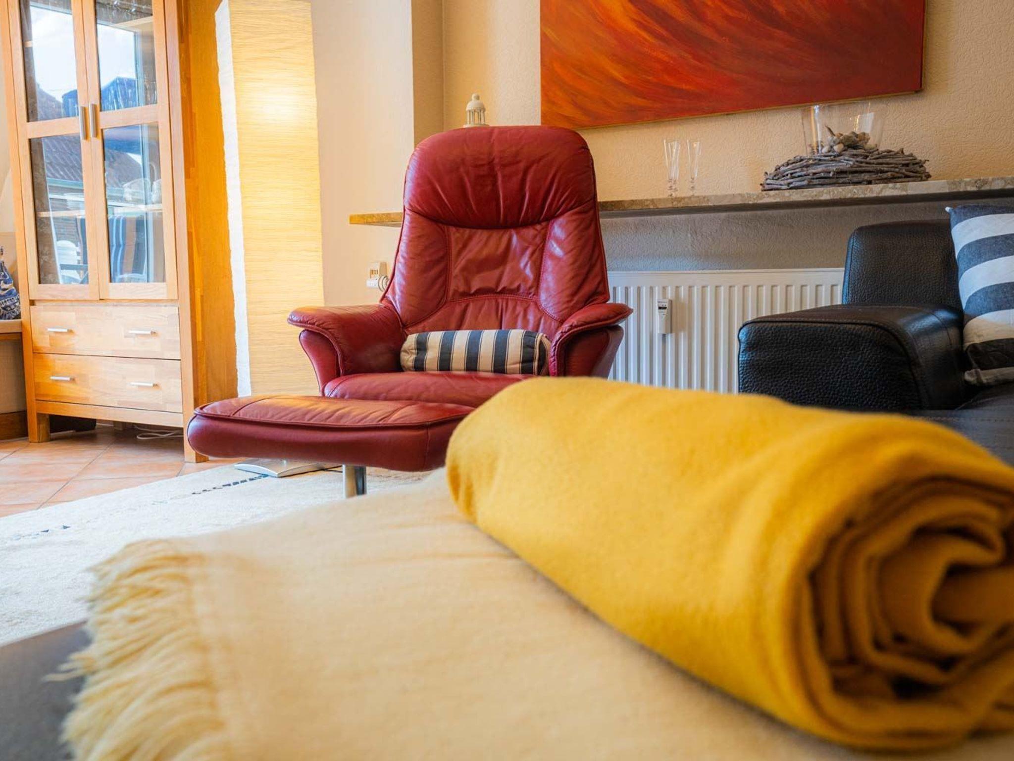 Komfortable 3-Zimmer-Ferienwohnung in zentraler Lage von St. Peter-Ording mit Balkon und Strandkorb.