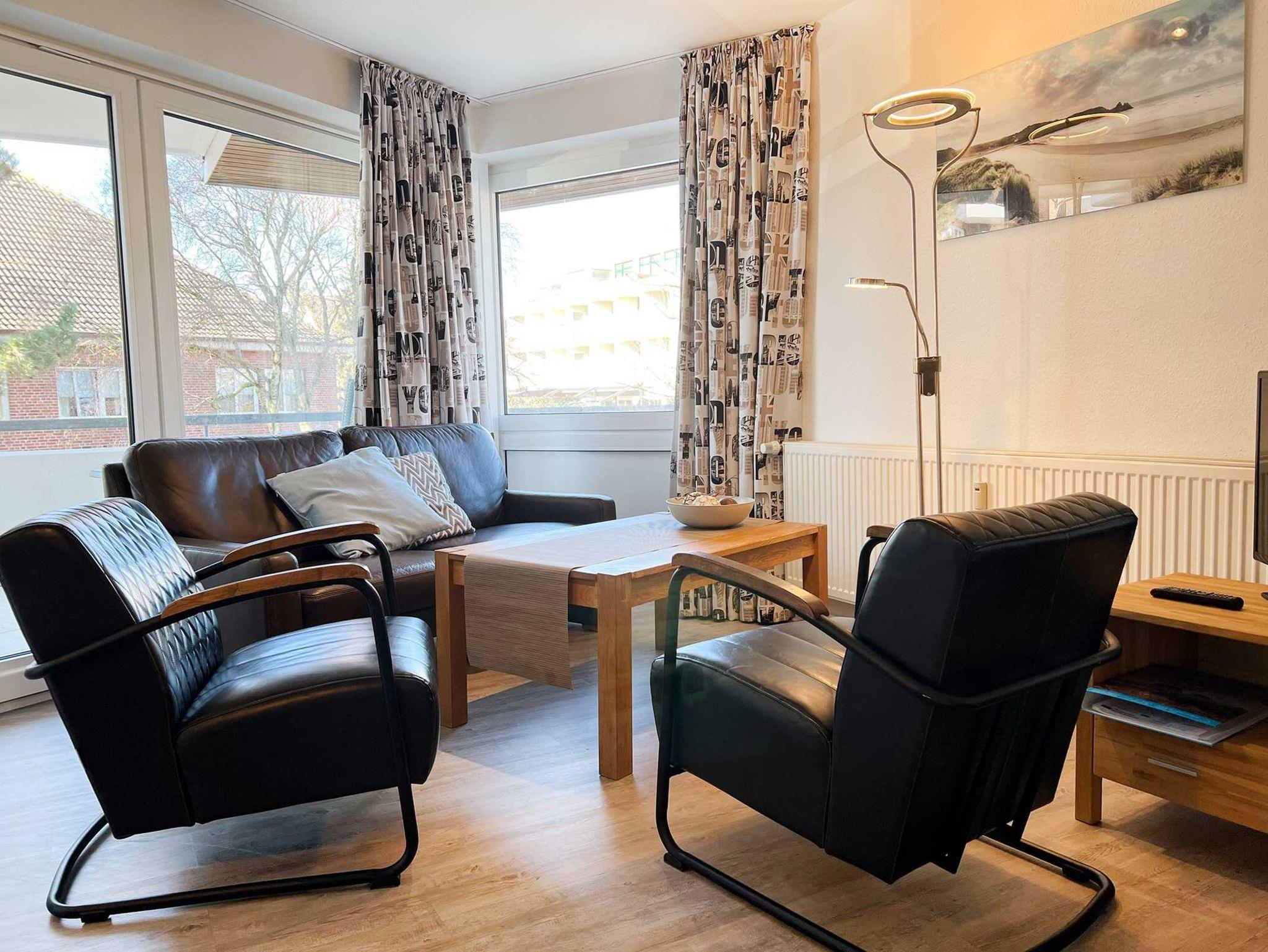 Moderne 2-Zimmer-Ferienwohnung in St. Peter-Ording mit Strandkorb und Balkon für bis zu 4 Personen.