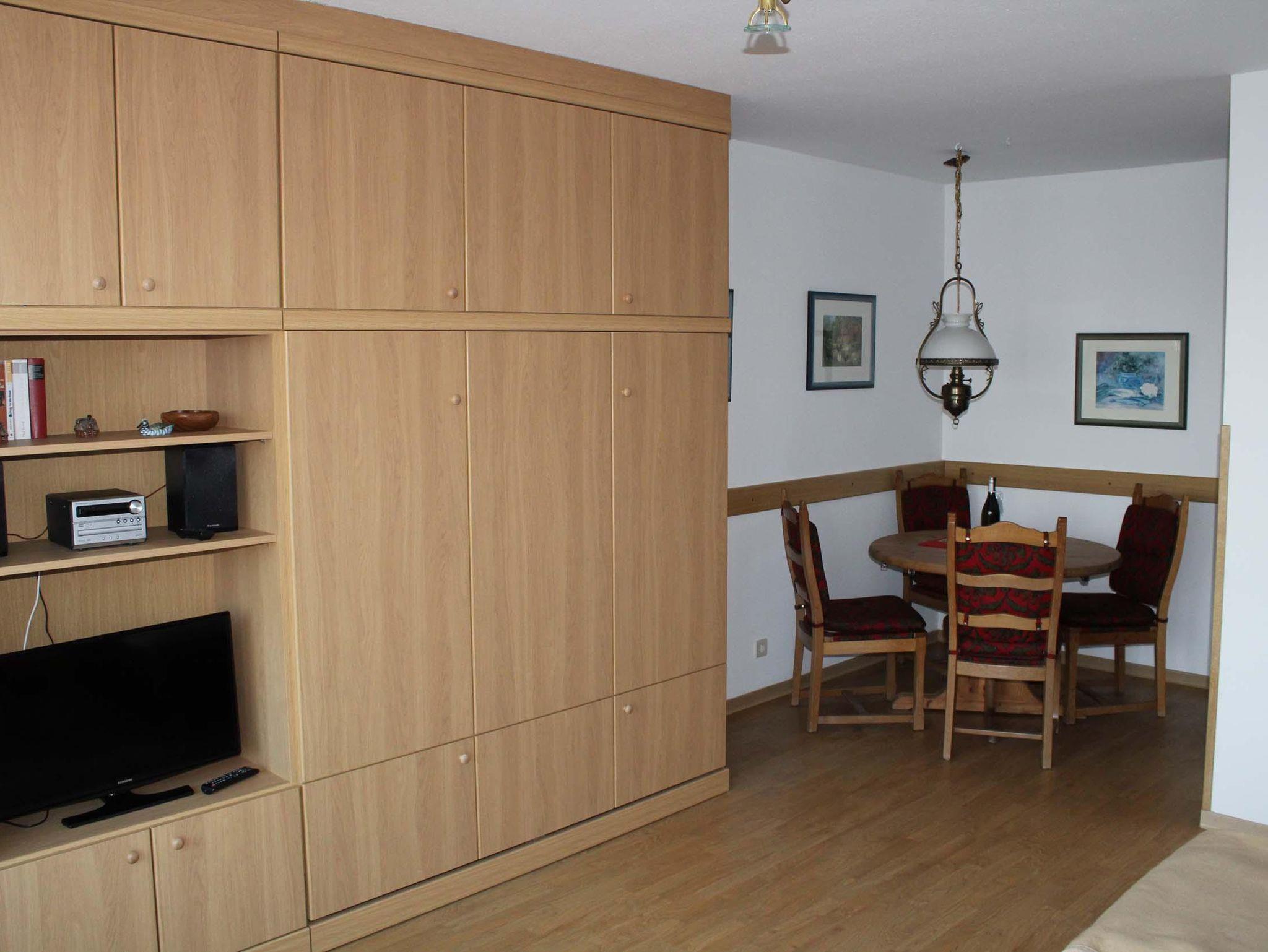 App.Nr.65, Typ 7, IV.OG., Süd-Ostlage Schlafraum mit Doppelbett (160x200), 1 Schlafraum mit 1 Einzelbett, Wohn-Schlafraum mit 2 Wandschrankbetten (2018 neu), PVC-Fußboden, Sitzecke, Essecke, Küchenzeile mit Geschirrspüler und Mikrowelle, Kabel-TV, Durchwahltelefon, Dusche/WC, Balkon, Garagenstellplatz-Nr. 65, Aufzug und Fahrradkeller vorhanden. Rezeption, Brötchenservcie, Schwimmbad, Sauna kostenpflichtig, kostenfreier Internetzugang (LAN1-Germania). Bettwäsche wird einmalig bei Einzug gestellt. Handtücher können gegen Gebühr entliehen werden. TIERE SIND NICHT ERWÜNSCHT, NICHTRAUCHERWOHNUNG
