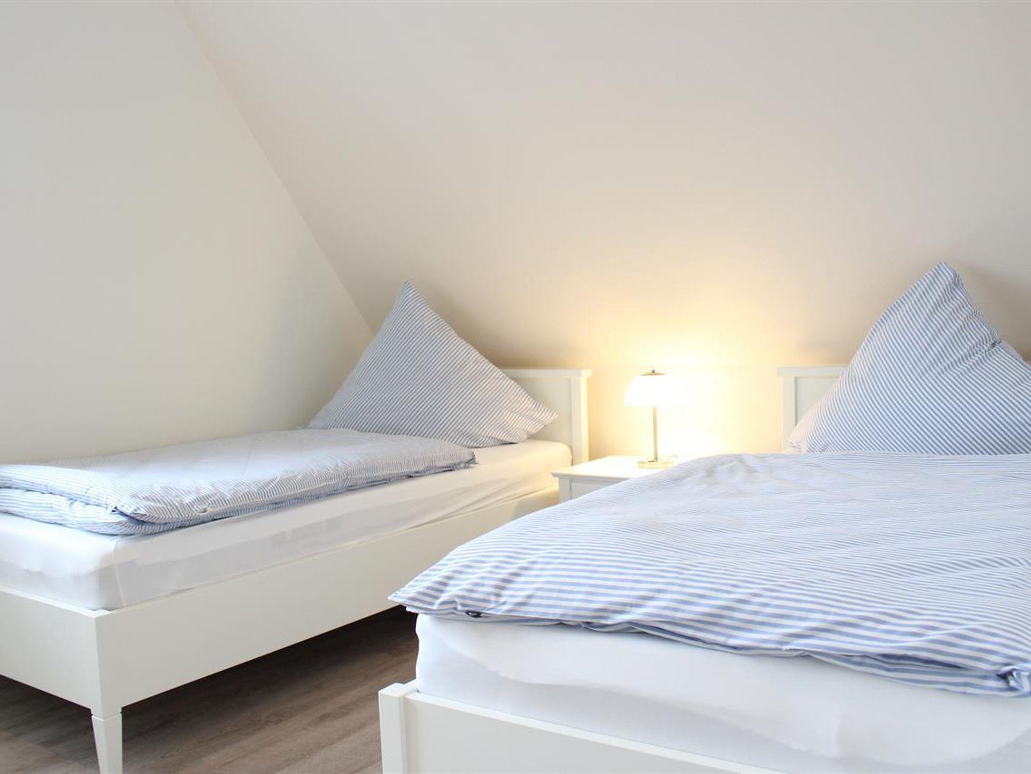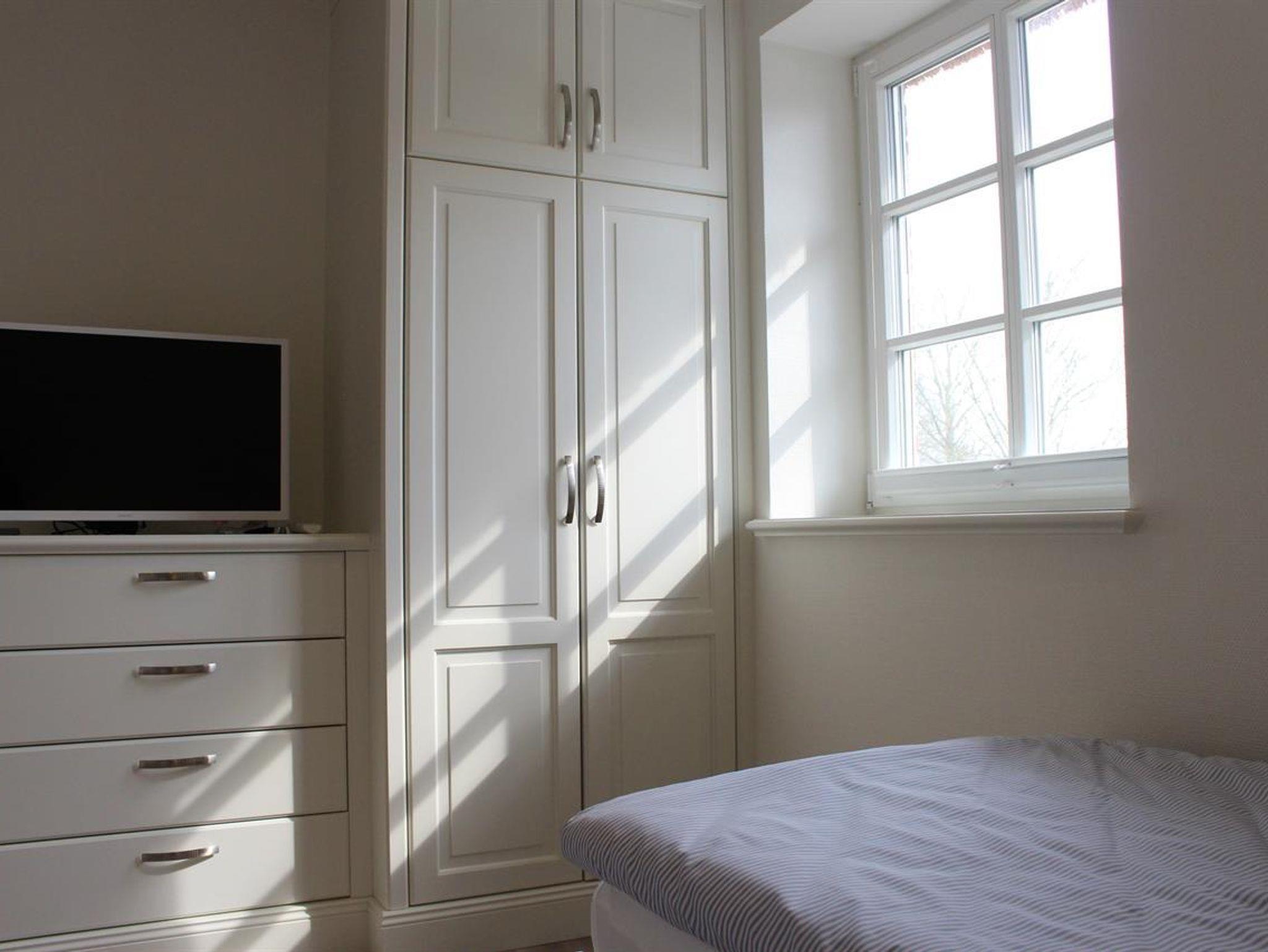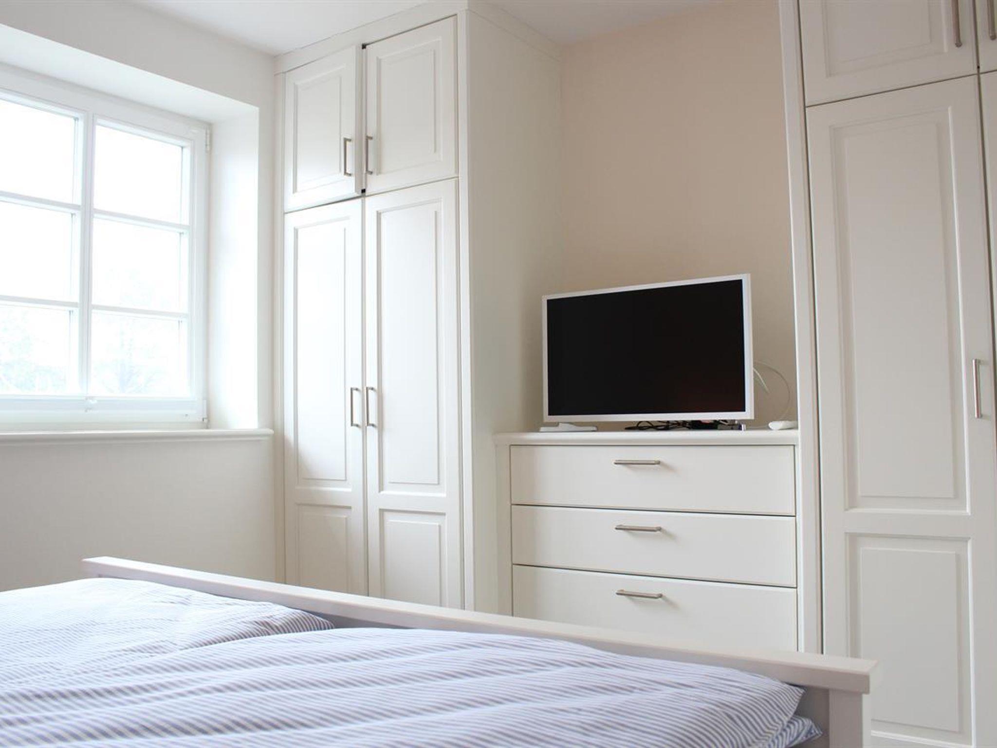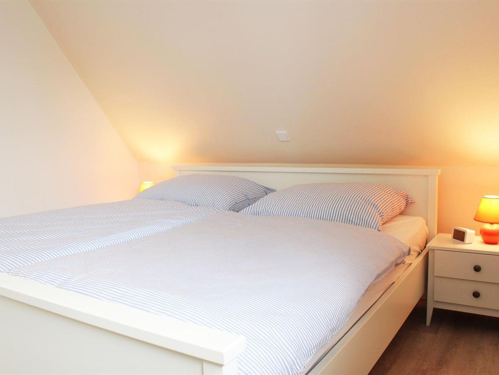 sorgen für einen guten Schlaf im Nordseeurlaub. In jedem Schlafzimmer befindet sich eine große Schrankwand, ein Flat-TV mit Internetzugang,