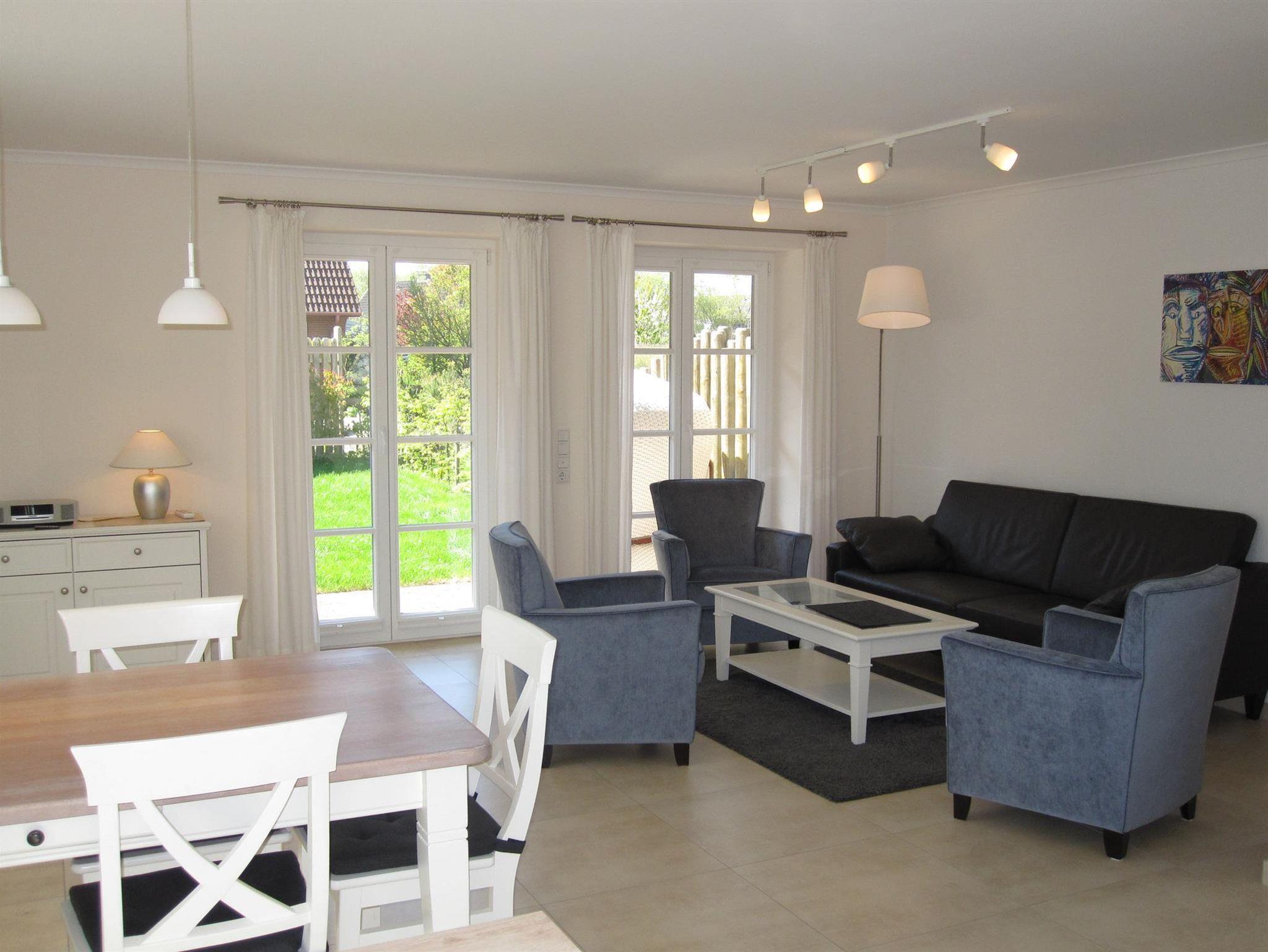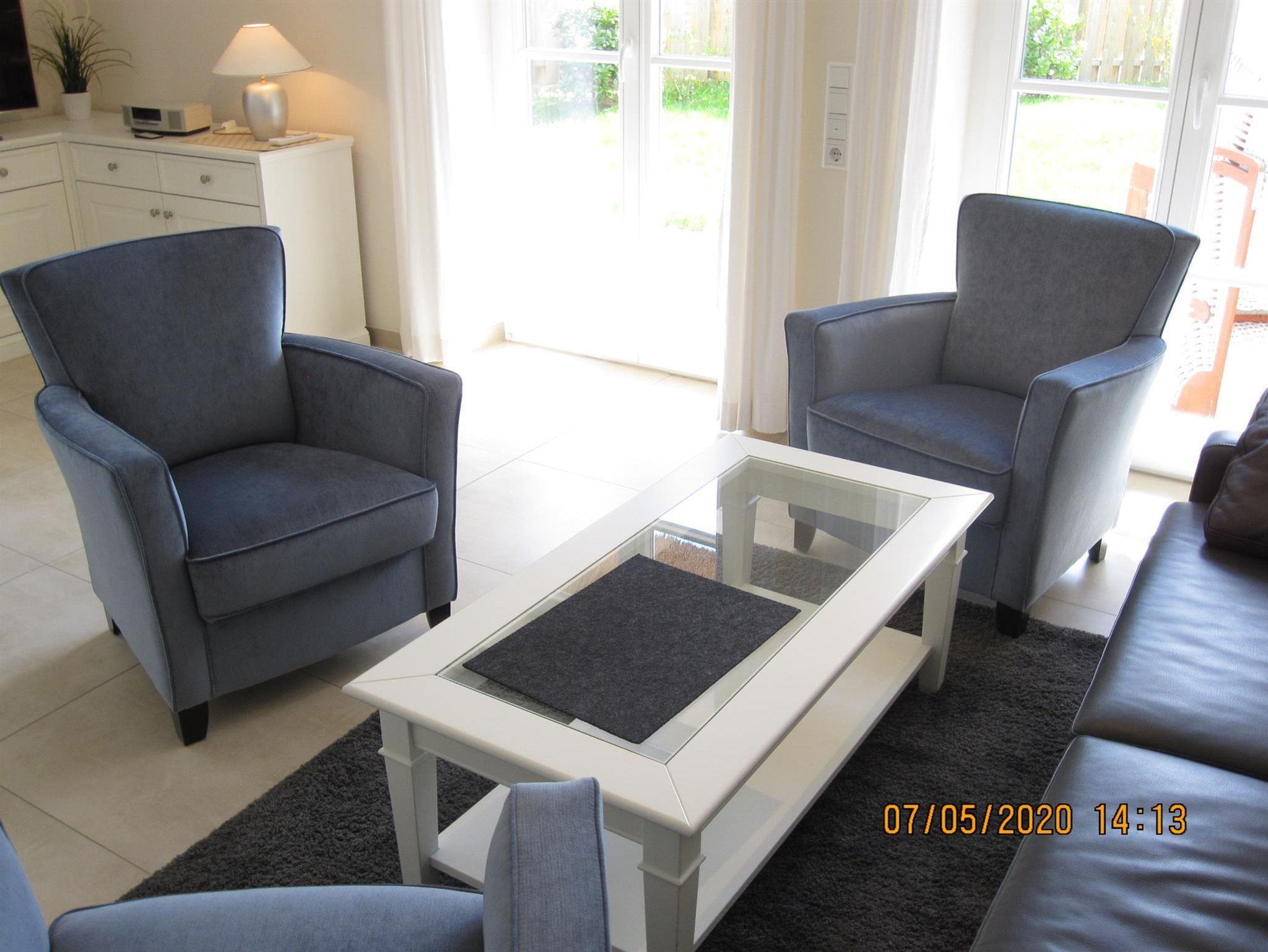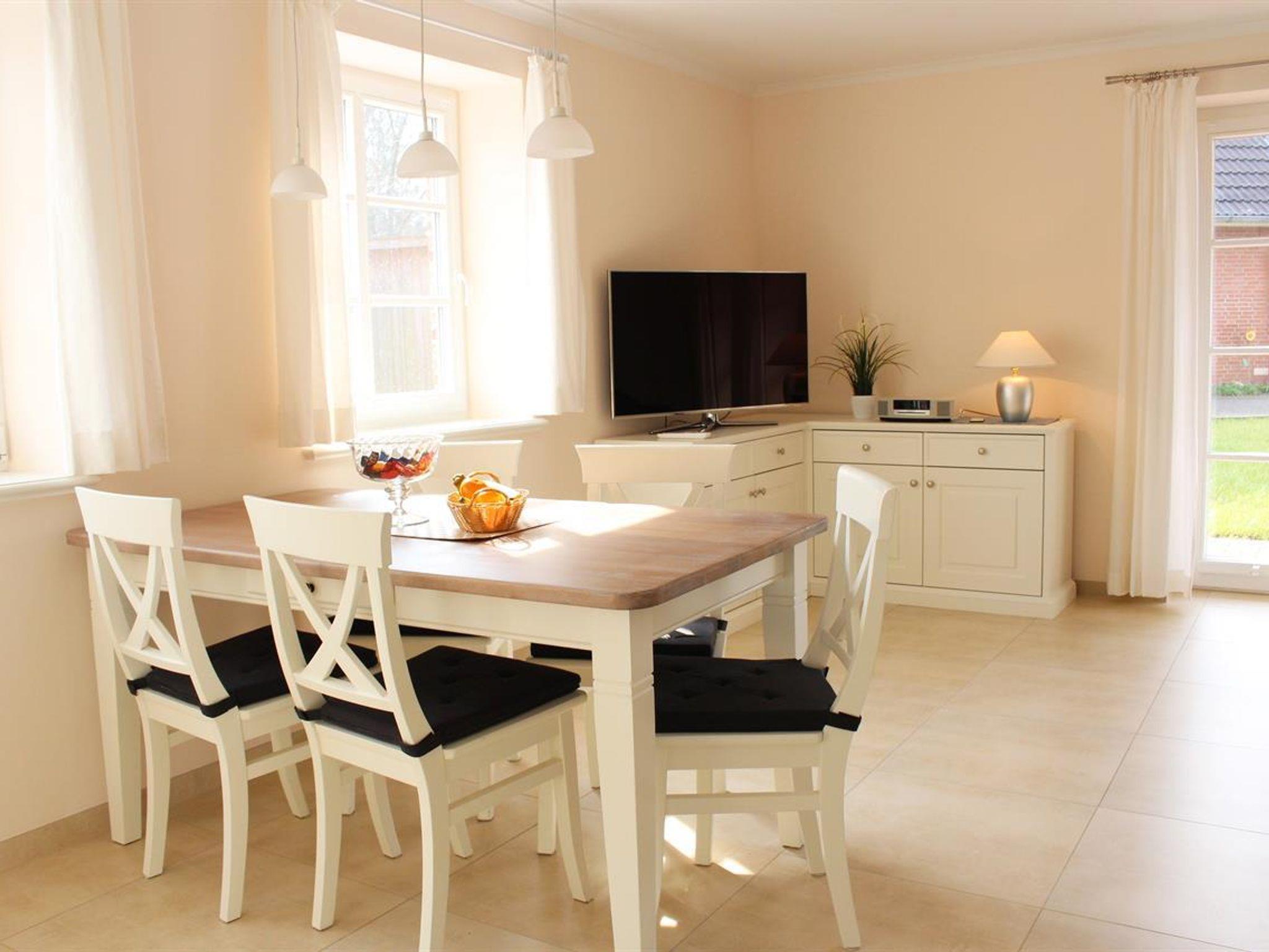 der Essbereich für bis zu 5 Personen geeignet. Blicken Sie aus den großen Panoramafenstern, oder genießen Sie die Sonne im Strandkorb auf der Südterrasse.