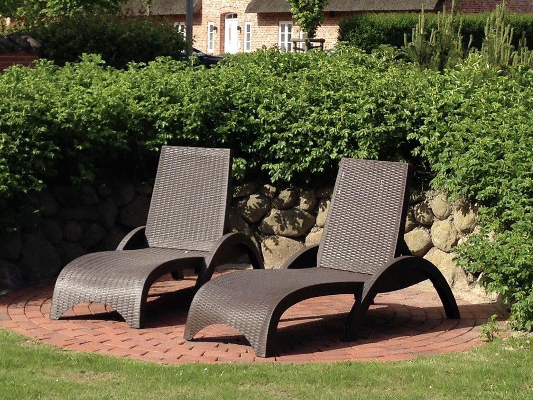 Eine möblierte Südwest-Terrasse, zwei Sonnenliegen und ein gemütlicher Strandkorb sowie ein vom Friesenwall eingebetteter Sitzplatz sind mit einer Brise „Westwind“ jederzeit für Sie reserviert.