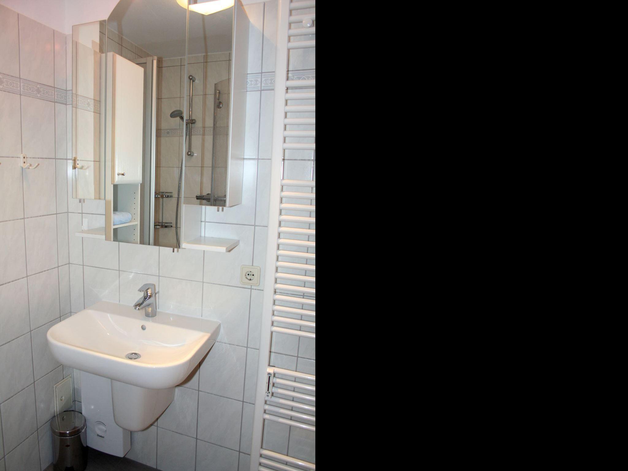 Schickes, neues Bad: Starten Sie erfrischt in den Tag in unserem modernen Badezimmer.