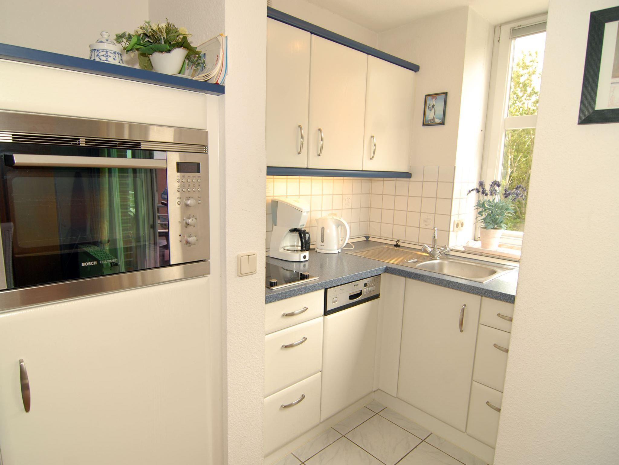 Helle Küchenzeile: Kochen Sie Ihre Lieblingsgerichte in der voll ausgestatteten Küche mit Geschirrspüler und Backofen.