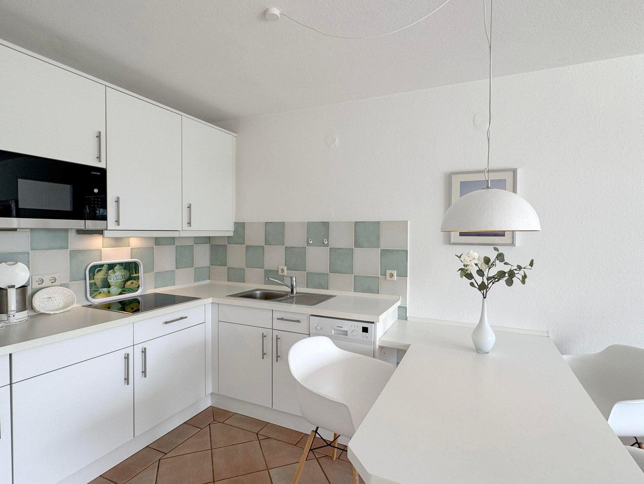• komplett eingerichtete Küche, Mikrowelle, Geschirrspüler, Kühlschrank mit Gefrierfach, Wasserkocher, Kaffeemaschine (Filter), Toaster.