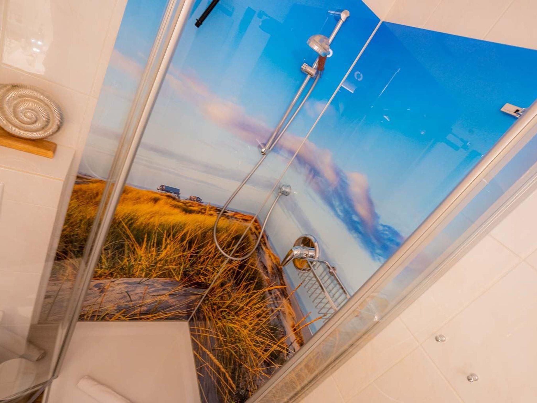 Badezimmer (Duschbad) mit Dusche, WC und Föhn.