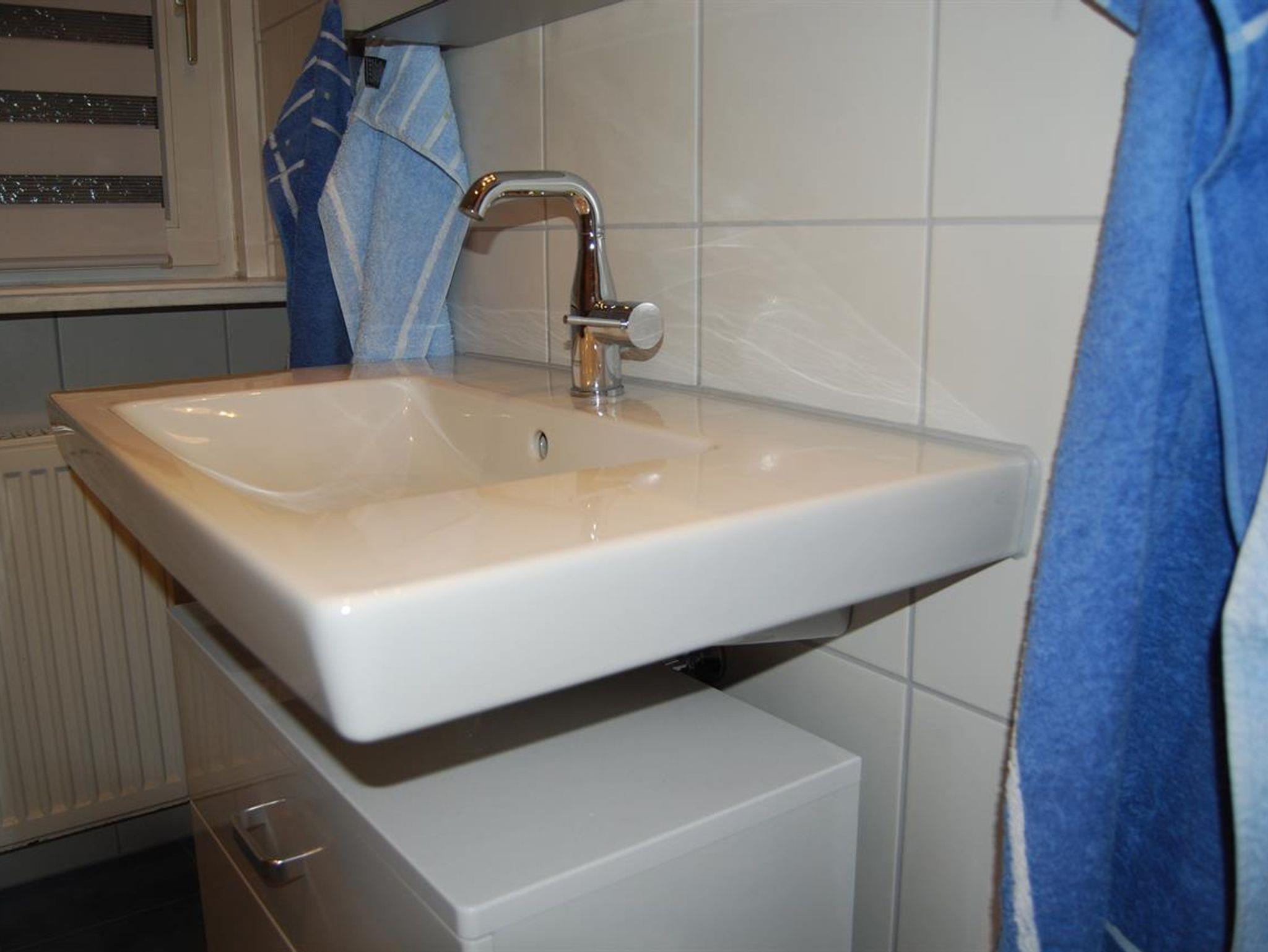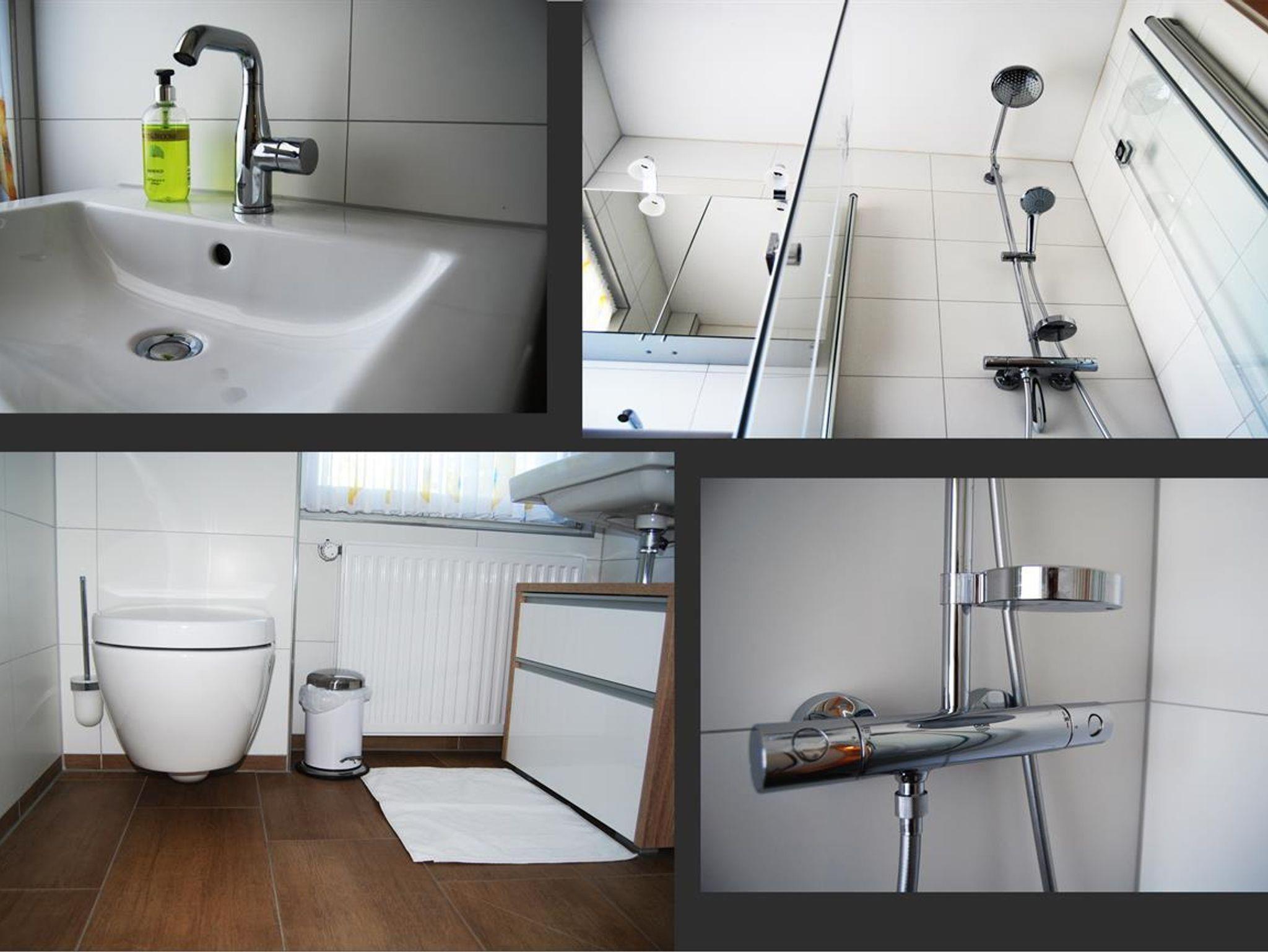 Das Badezimmer wurde in 2017 renoviert und verfügt über eine Premium Grohe-Regendusche (Glaswand mit Keramik Duschwanne), edlem V&B Hänge-WC und einen Premium-Waschtisch von V&B mit hochwertiger Grohe Armatur.