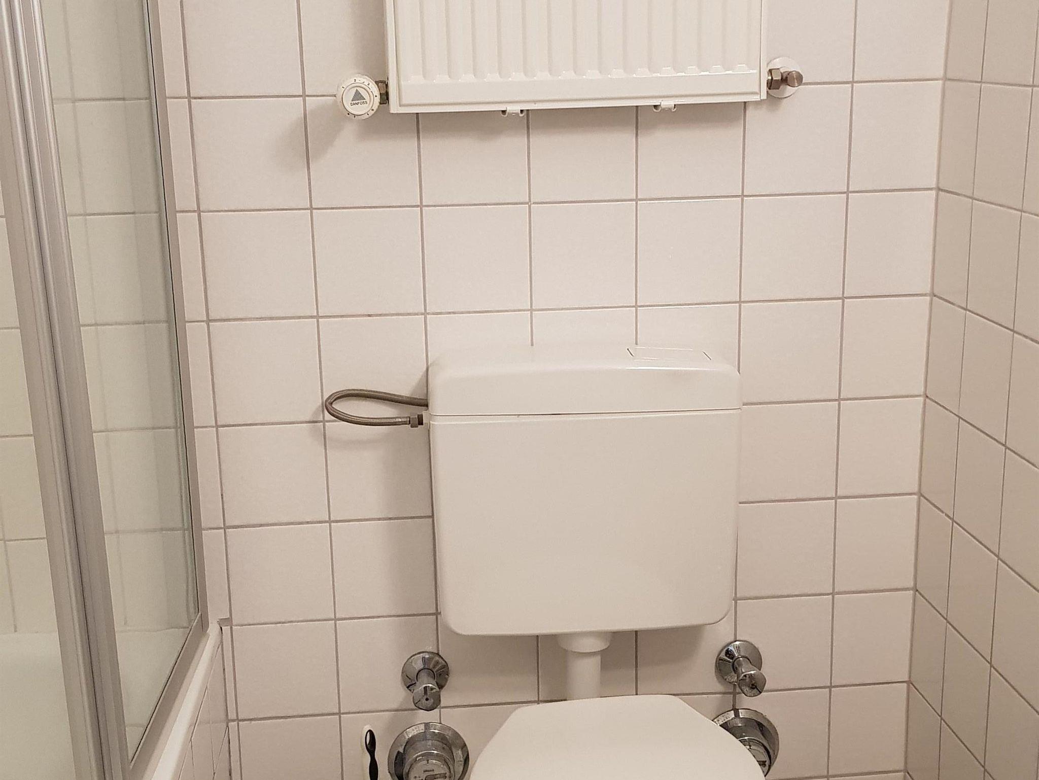 Das Bad ist mit WC, Badewanne und Duschwannenaufsatz ausgestattet. ( Weiterhin vorhanden: Fön, Bügeleisen &Bügelbrett)