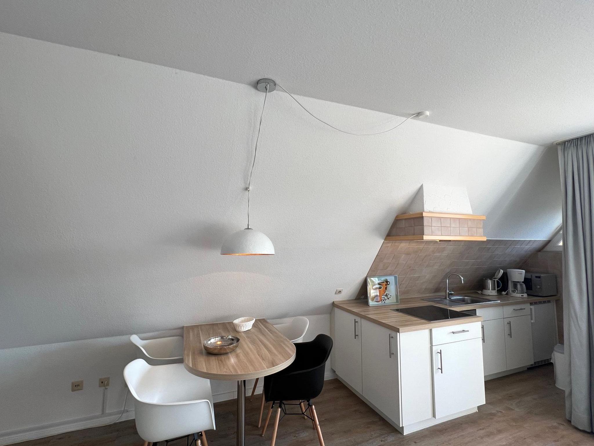 • komplett eingerichtete Küche mit Ceranfeld, Mikrowelle, Geschirrspüler, Kühlschrank mit Gefrierfach, Wasserkocher, Kaffeemaschine (Filter), Toaster.