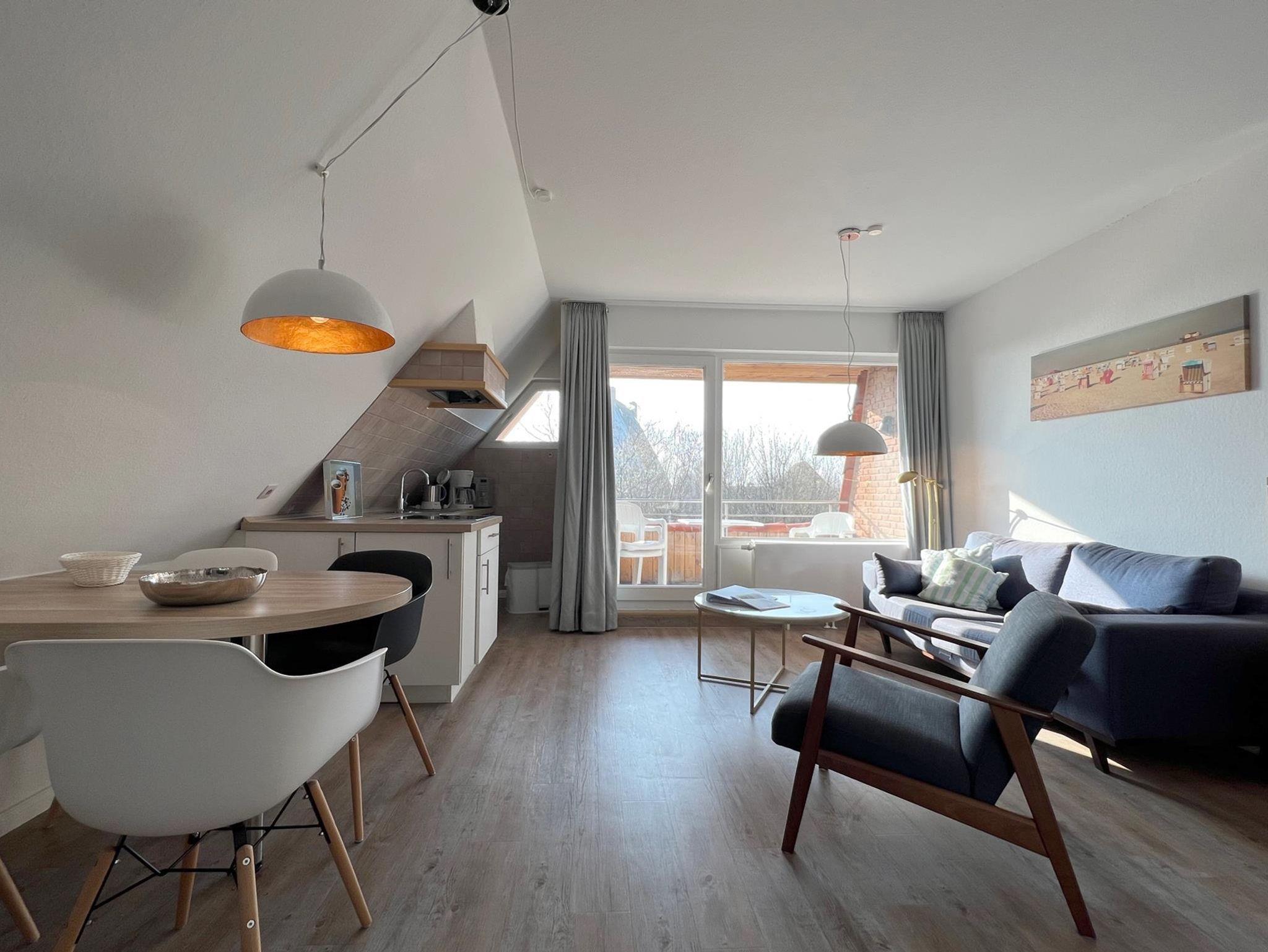 Gemütliches Ferienappartement in St. Peter-Ording mit Loggia, Strandnähe und Blick auf den Ordinger Deich.
