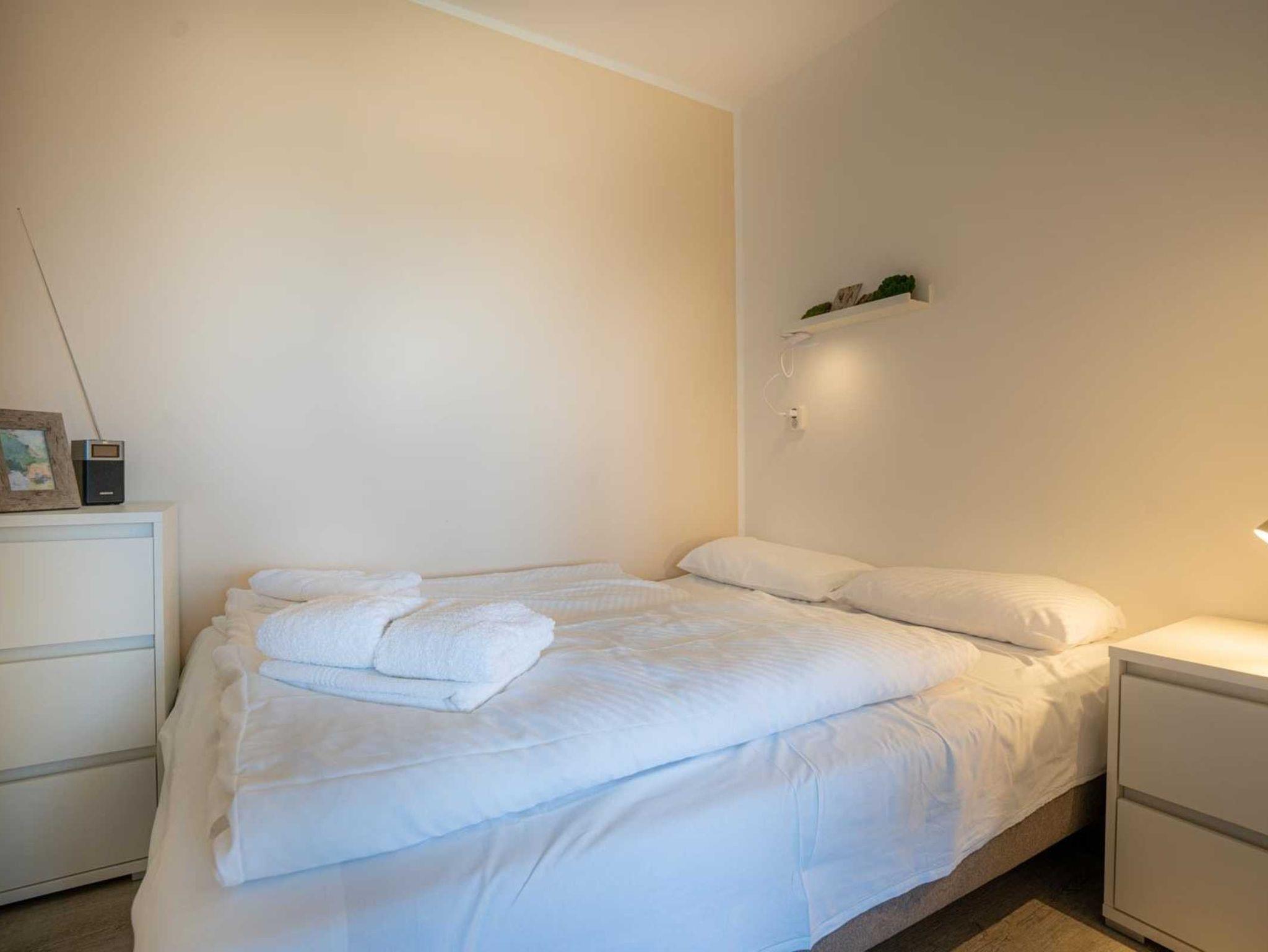 2. Schlafzimmer mit 1 Doppelbett (150x200cm, ausklappbares Daybed). Dieses Schlafzimmer ist durch eine Glasschiebetür vom Wohnzimmer abgeteilt.