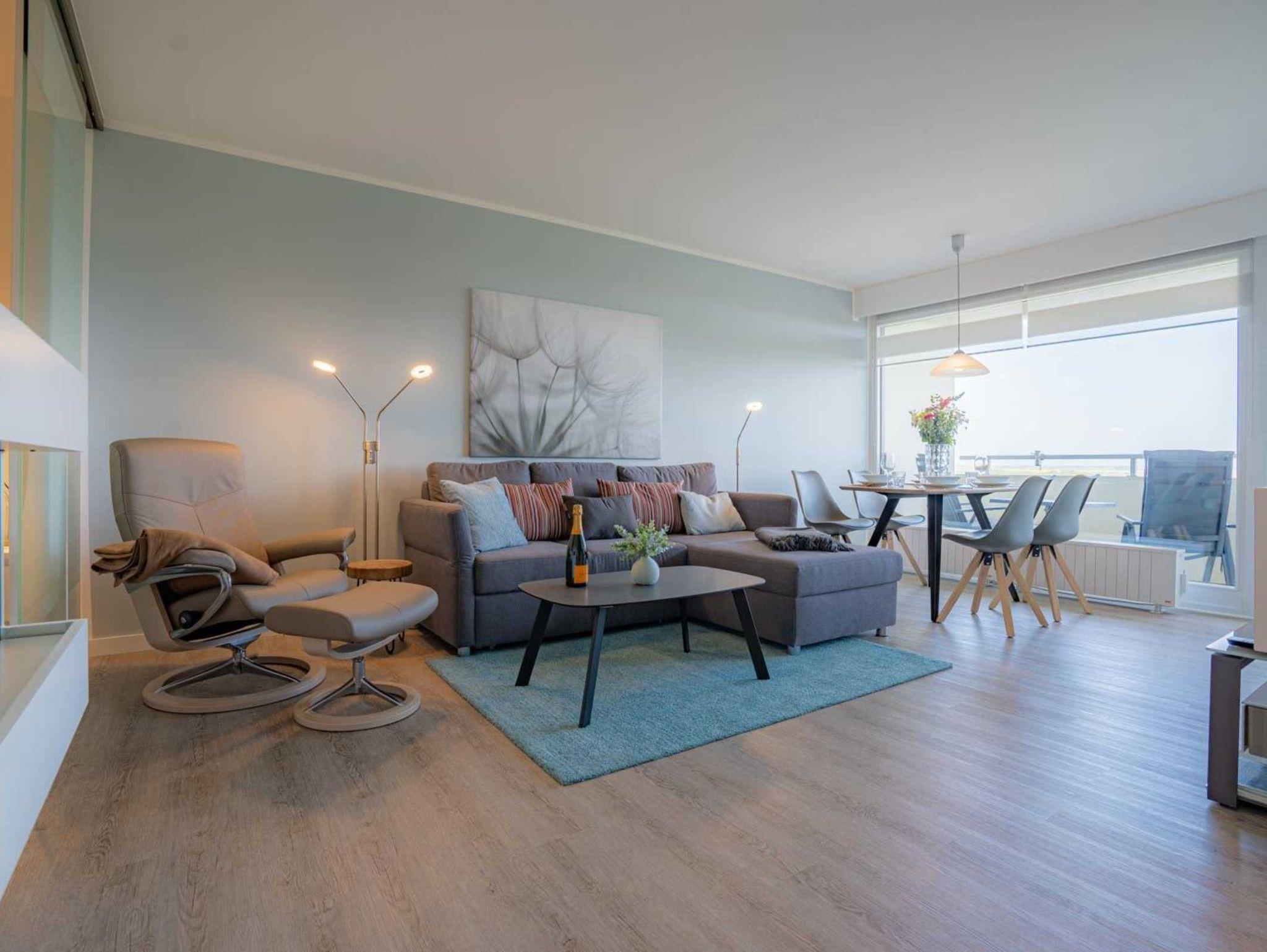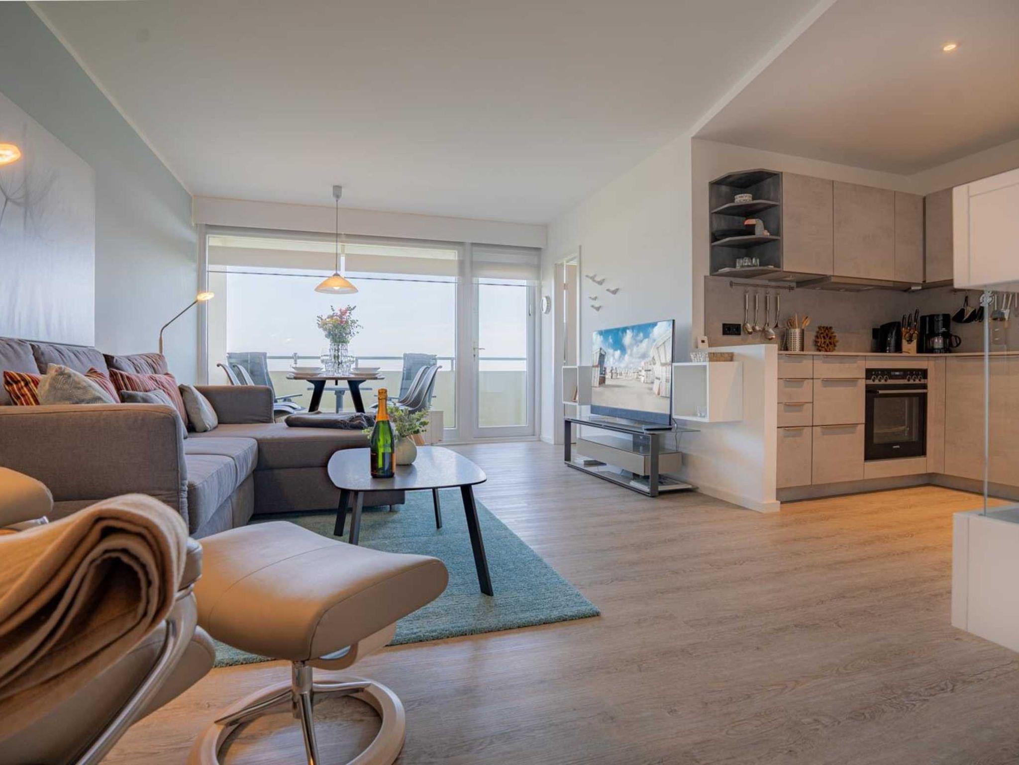 Moderne 2,5-Zimmer-Ferienwohnung mit Meerblick und Balkon in strandnaher Lage in St. Peter-Ording.