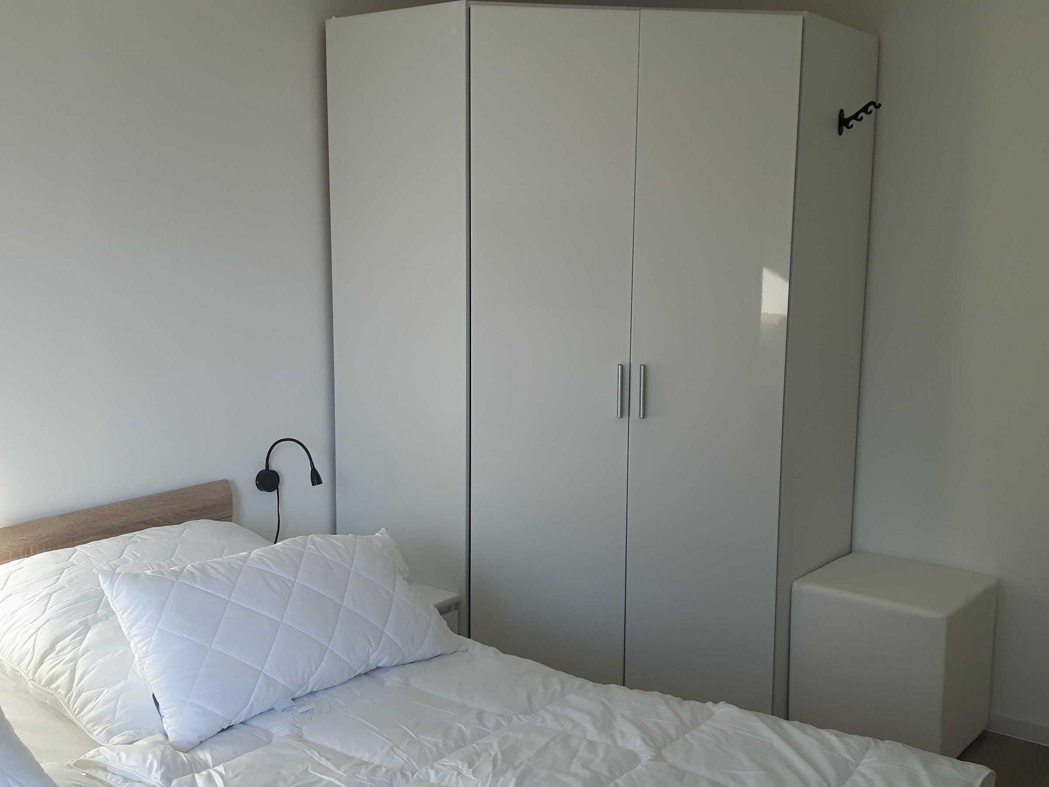 Zwei separate Schlafzimmer (das größere mit Doppelbett 160x200cm und das kleinere mit zwei Einzelbetten von je 90x200cm) mit großen Eckschränken.