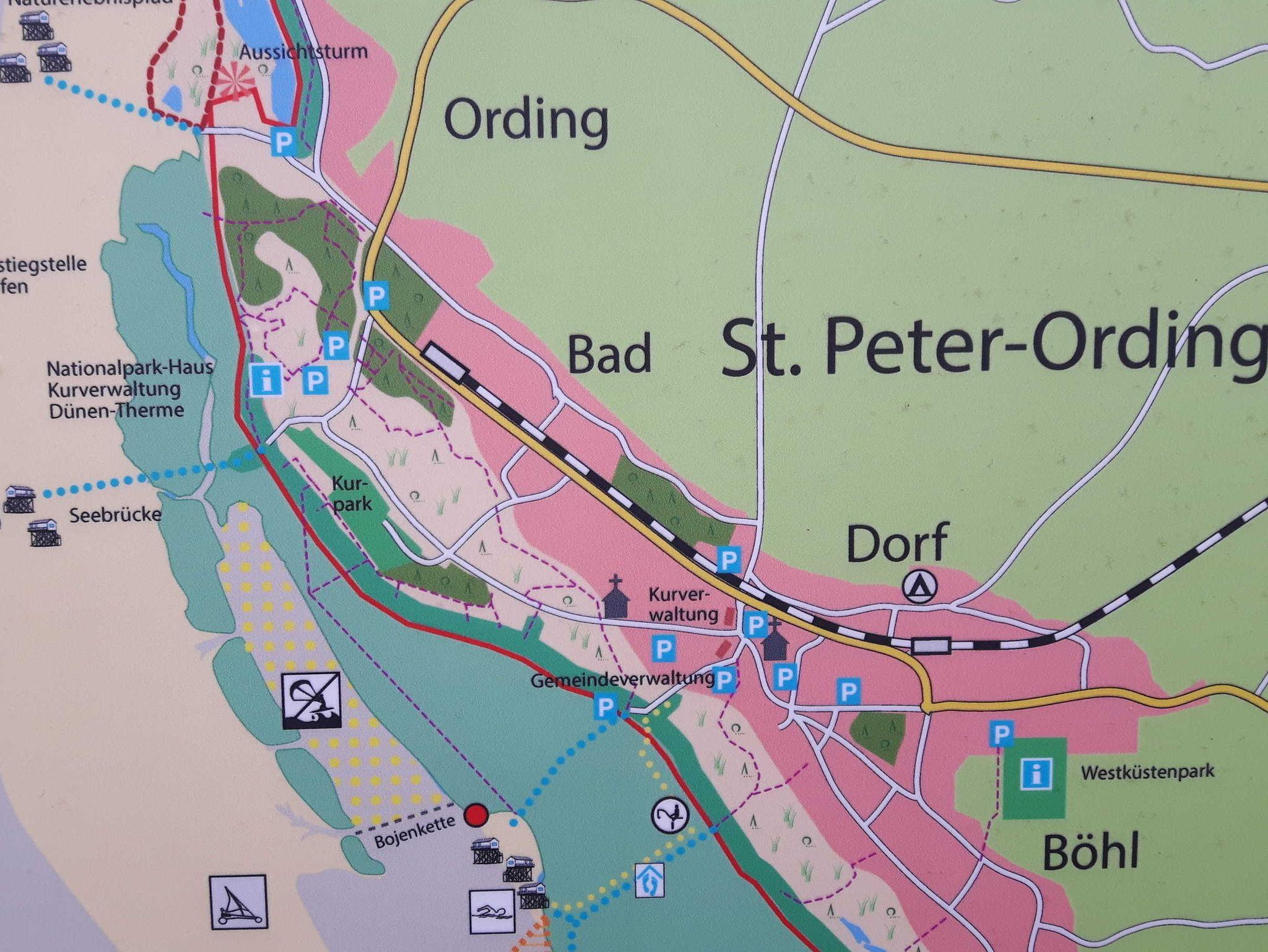 Die Gemeinde Sankt Peter-Ording hat die vier Ortsteile Böhl, Bad, Dorf (Süd) und Ording.