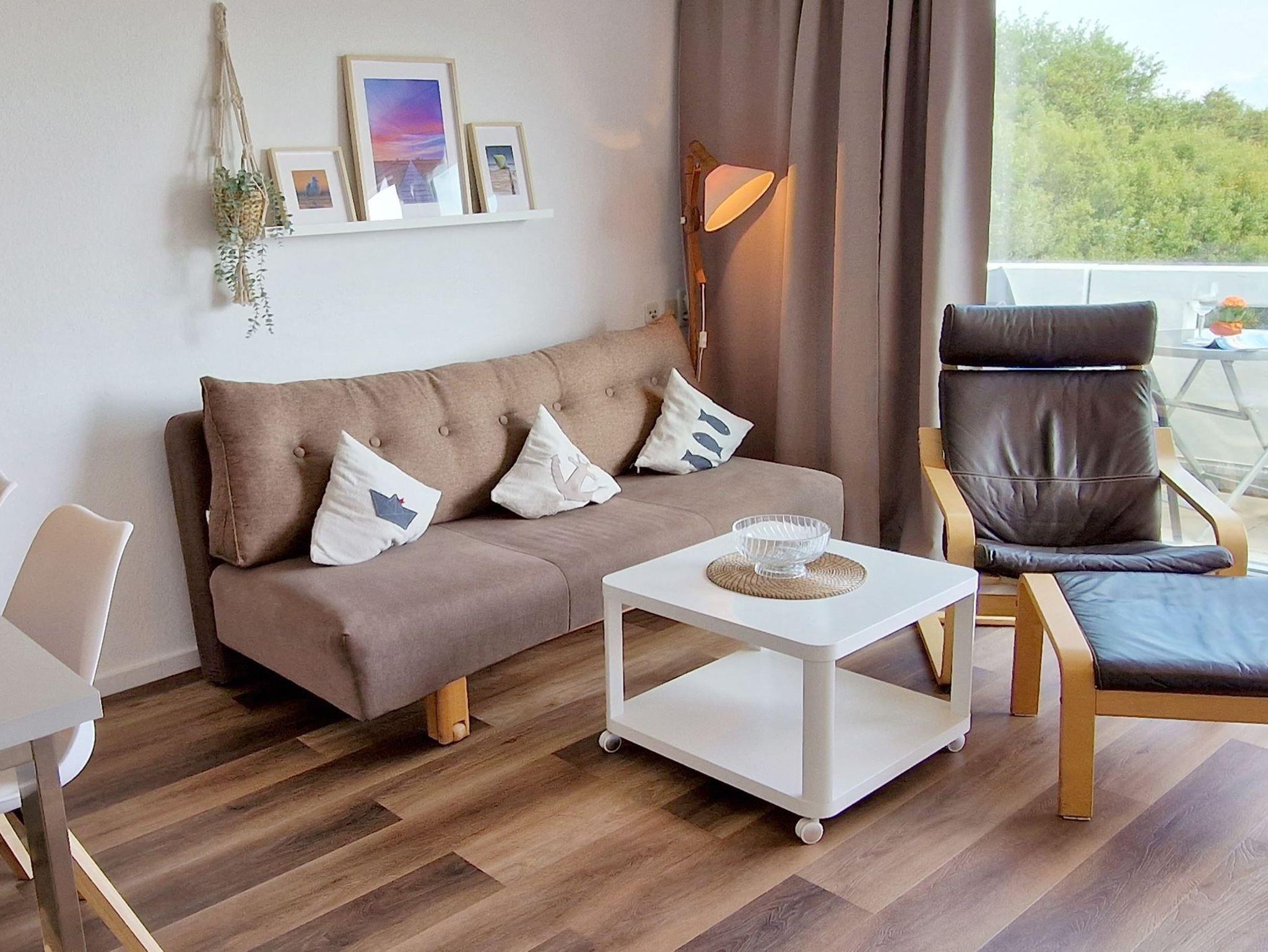 Willkommen in Ihrer Traum-Ferienwohnung! Genießen Sie unvergessliche Urlaubstage in unserer hellen, gemütlichen 2-Zimmer-Nichtraucher-Ferienwohnung, perfekt für bis zu 3 Personen und Ihren geliebten Hund! Stellen Sie sich vor, wie Sie auf dem sonnigen Balkon im 2. OG sitzen, mit Blick über den Golfplatz bis zum glitzernden Meer und bei klarer Sicht bis nach Büsum!Ausstattung: