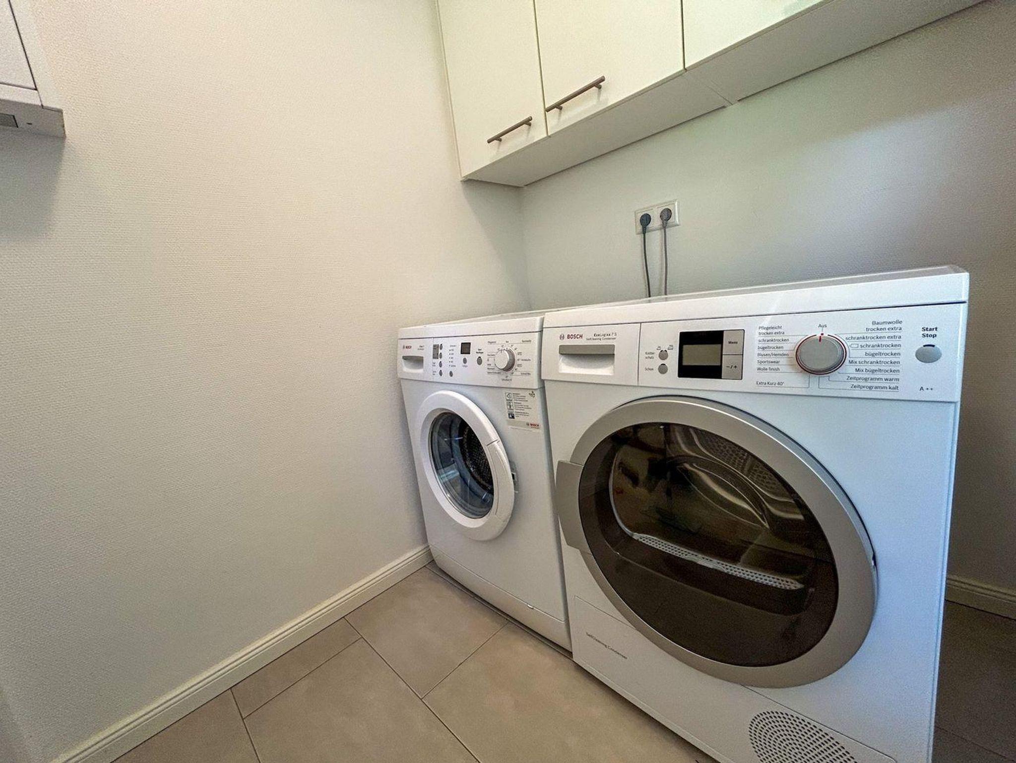 Auf der großzügigen Südterrasse können Sie die Sonne in vollen Zügen genießen, während ein eleganter Tisch, komfortable Gartenstühle und ein wunderschöner Strandkorb Ihre Zeit im Freien veredeln.
