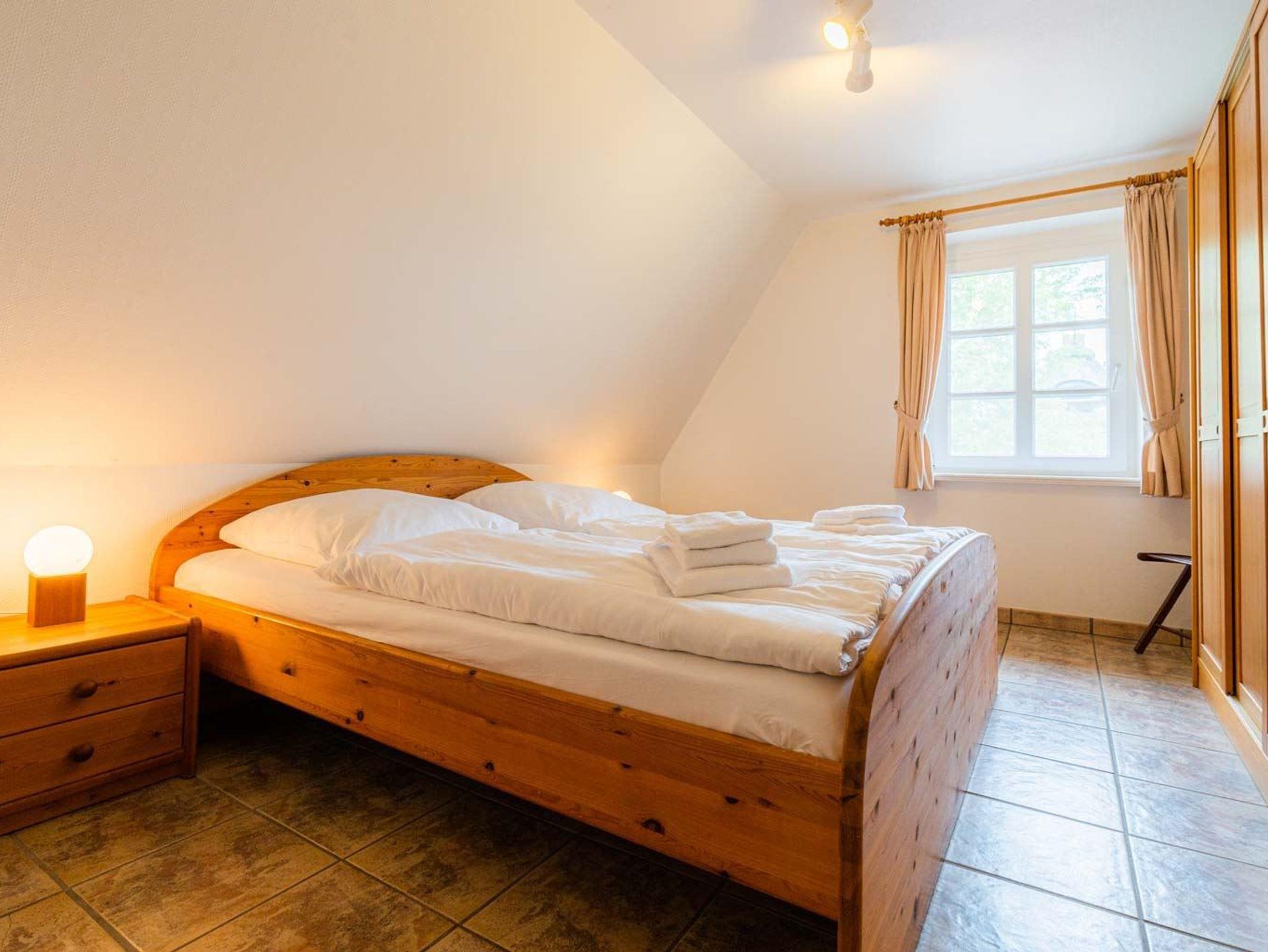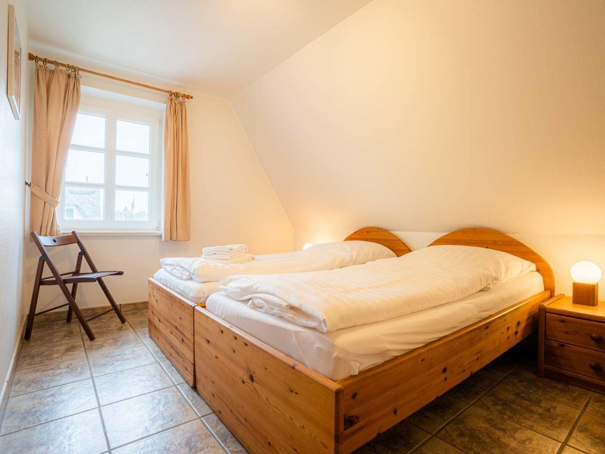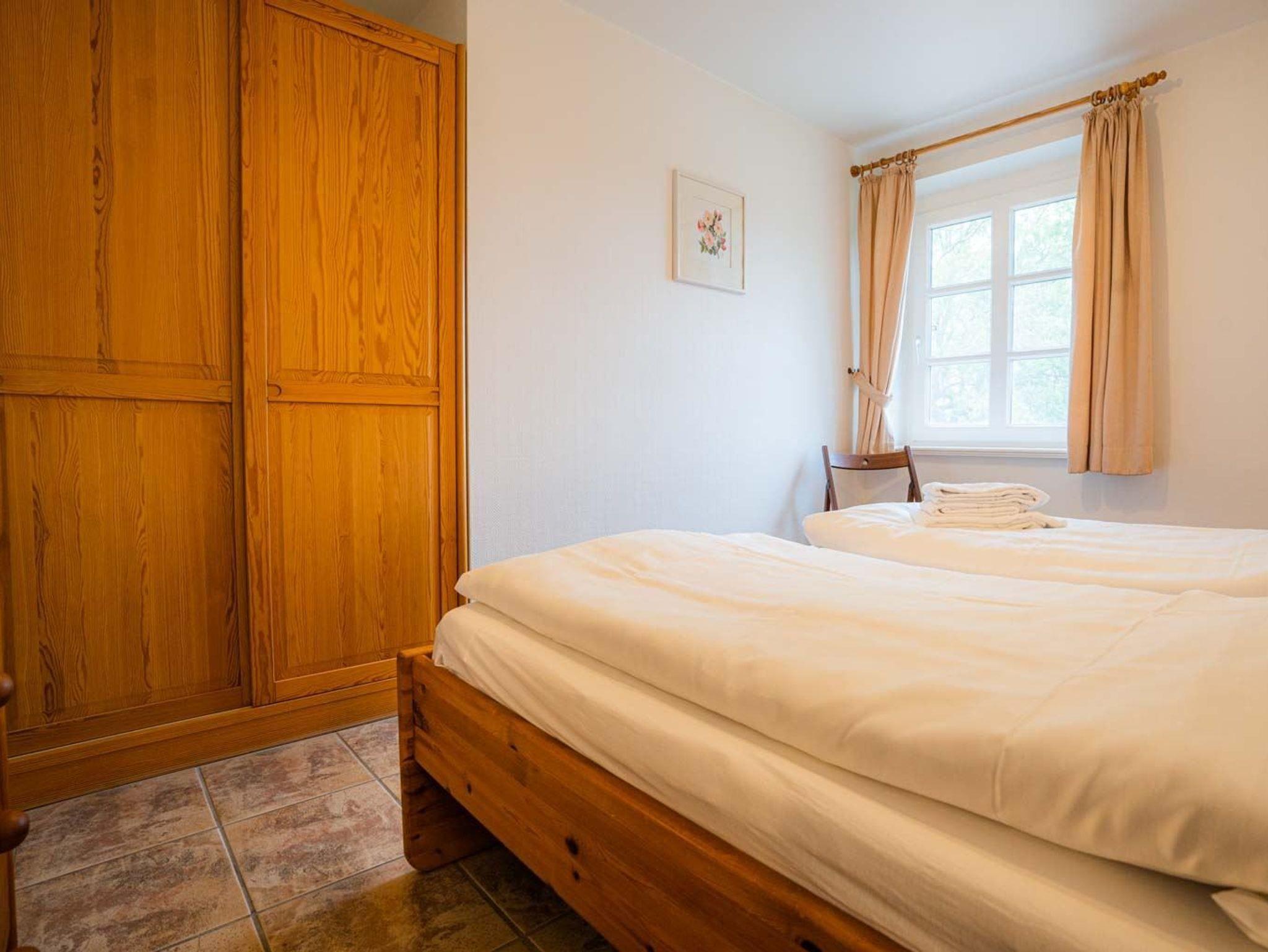 1. Schlafzimmer mit Doppelbett (2x 90x200cm), Kleiderschrank, Sideboard, Spiegel und 2 Stühlen.