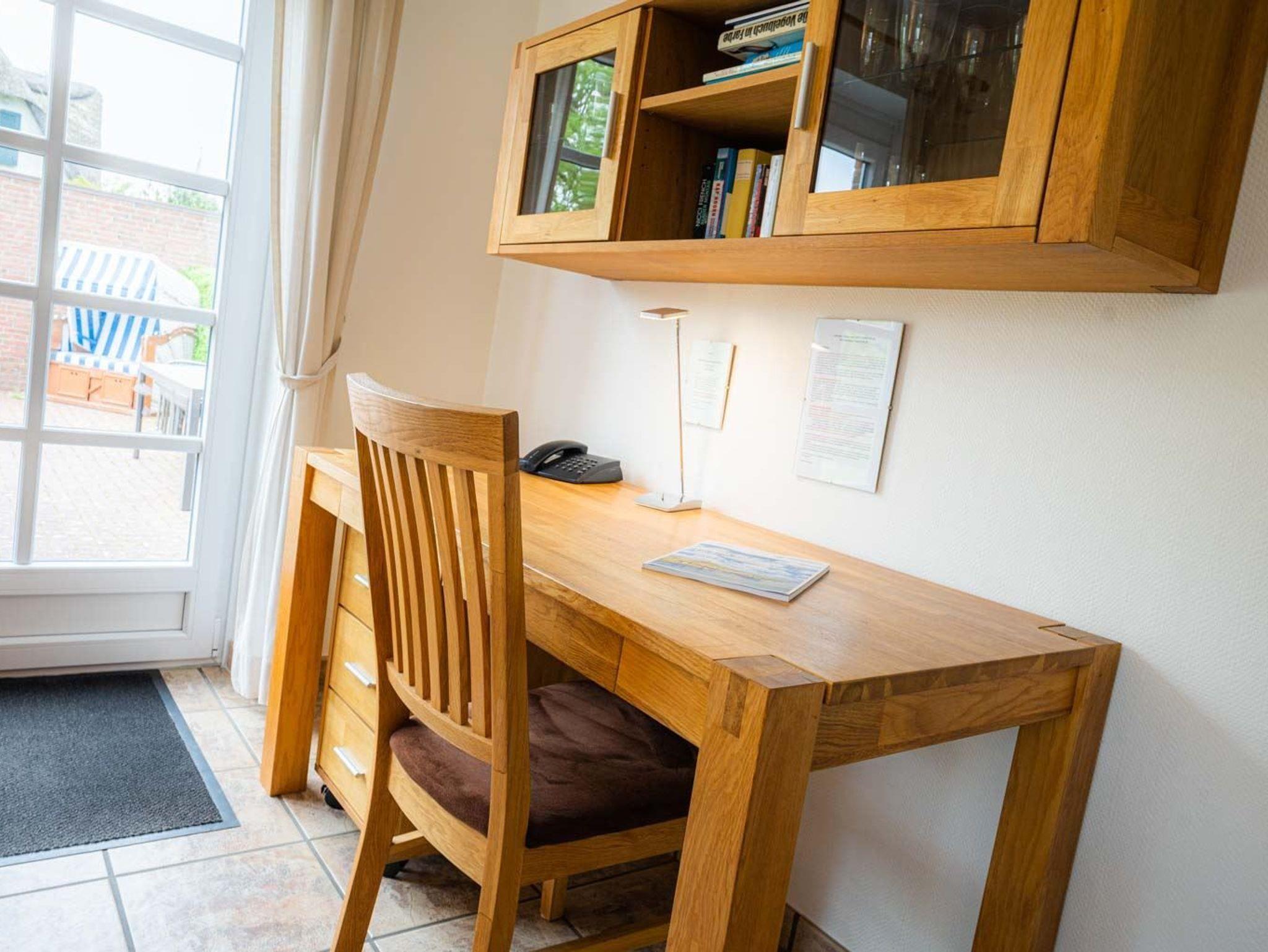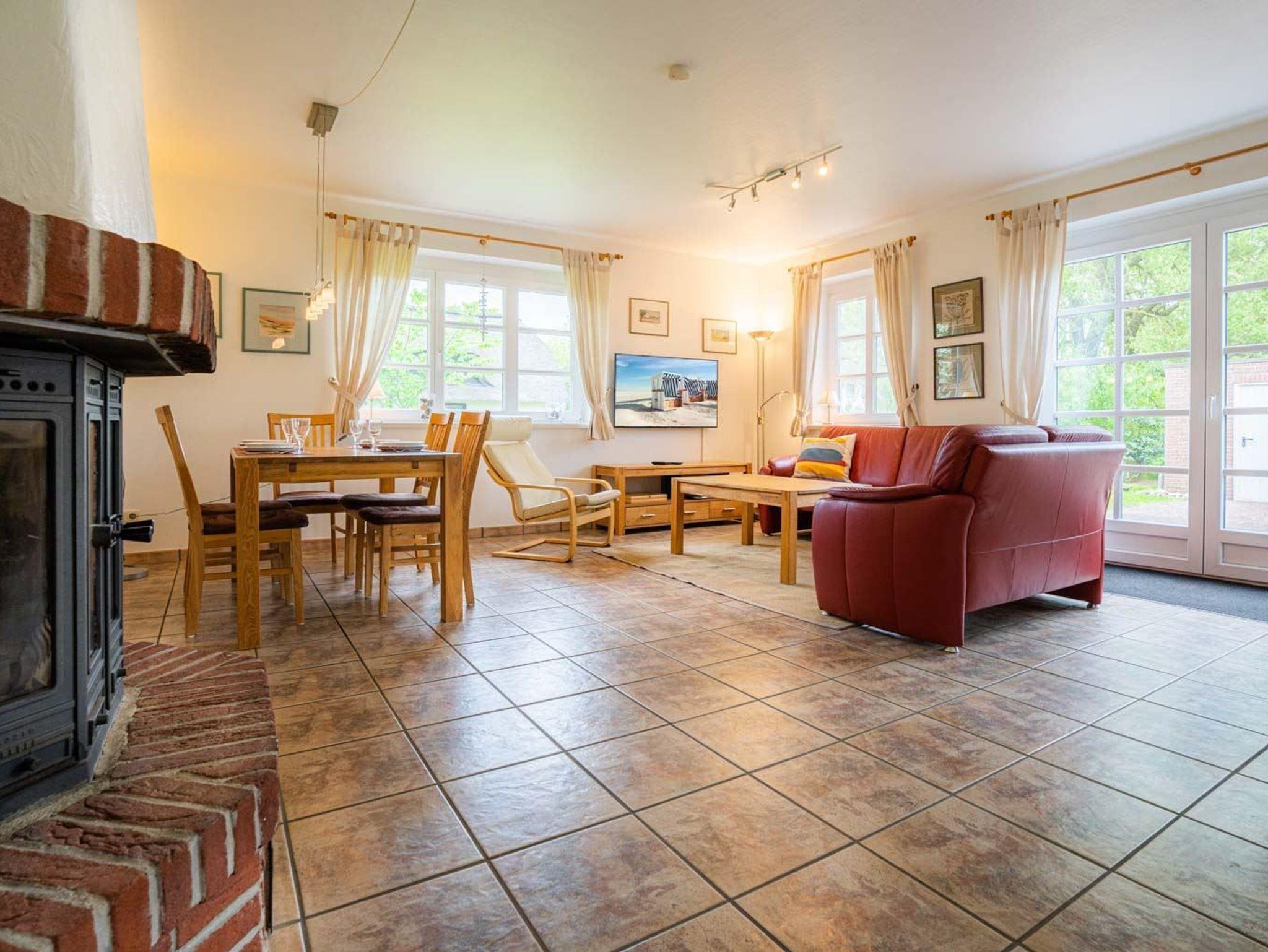Komfortable Ferienhaushälfte im Haus Frieseneck, landestypisch unter Reet, mit 4 Zimmern und ca. 80 m² auf 2 Ebenen (EG, OG) für bis zu 5 Personen. In ruhiger Lage im Ortsteil Ording in St. Peter-Ording. Besondere Behaglichkeit spendet der schöne Kamin im Wohnzimmer. Zur Haushälfte gehören eine Terrasse und ein gemeinschaftlicher Garten um das Haus.