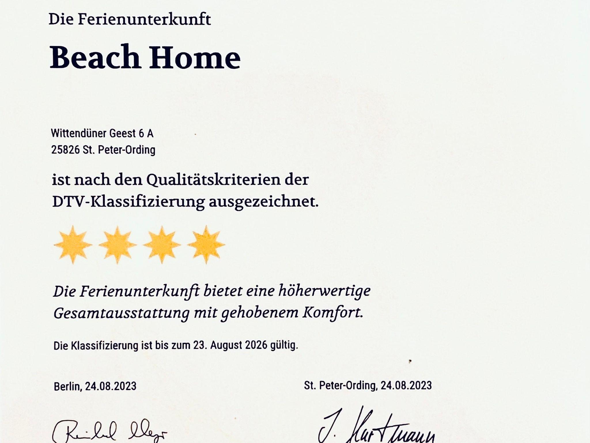 Willkommen im Beach Home! Die 2-Zimmer-Ferienwohnung hat top geschnittene 43 qm, 1 Wohn- und 1 Schlaf-Zimmer, Fenster im Bad und ist durch den Deutschen Tourismusverband mit 4 Sternen zertifiziert.