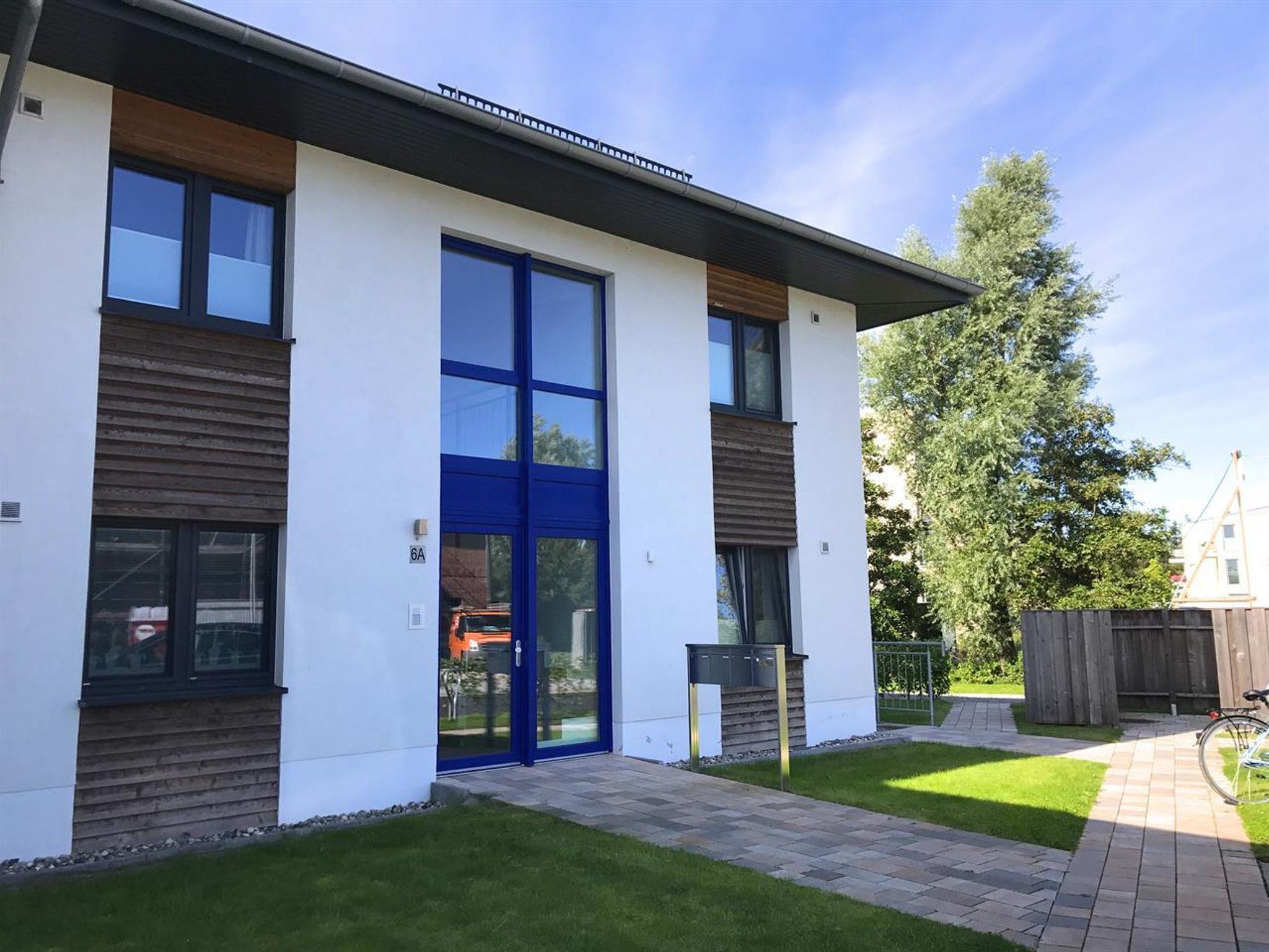 Gehobene Ausstattung, Wohnzimmer mit offener Küche, Bad mit ebenerdiger Dusche, Echtholzparkett und Fußbodenheizung, eigener Parkplatz vor dem Hauseingang.