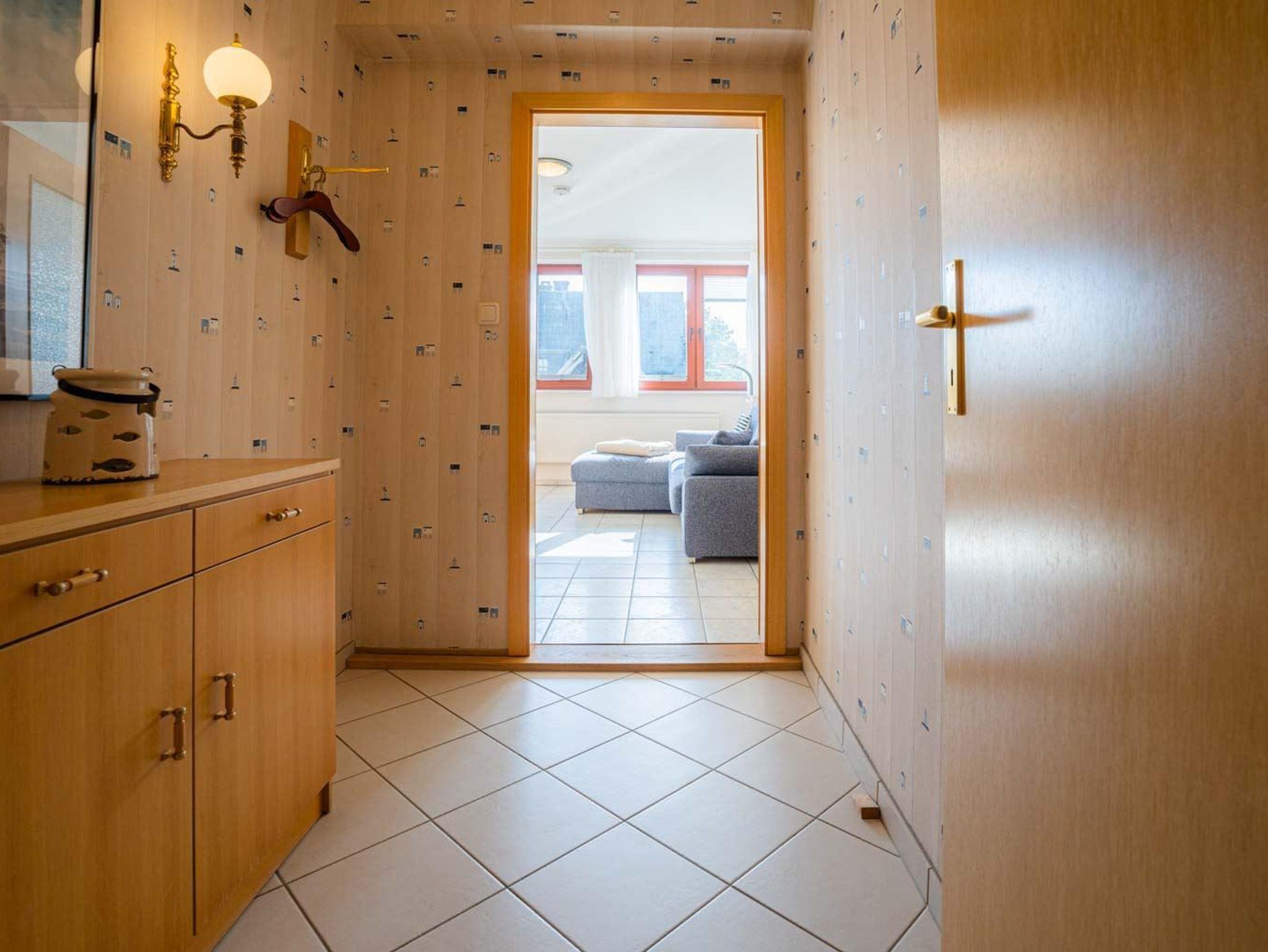 Flur mit Garderobe und Kommode im Eingangsbereich.