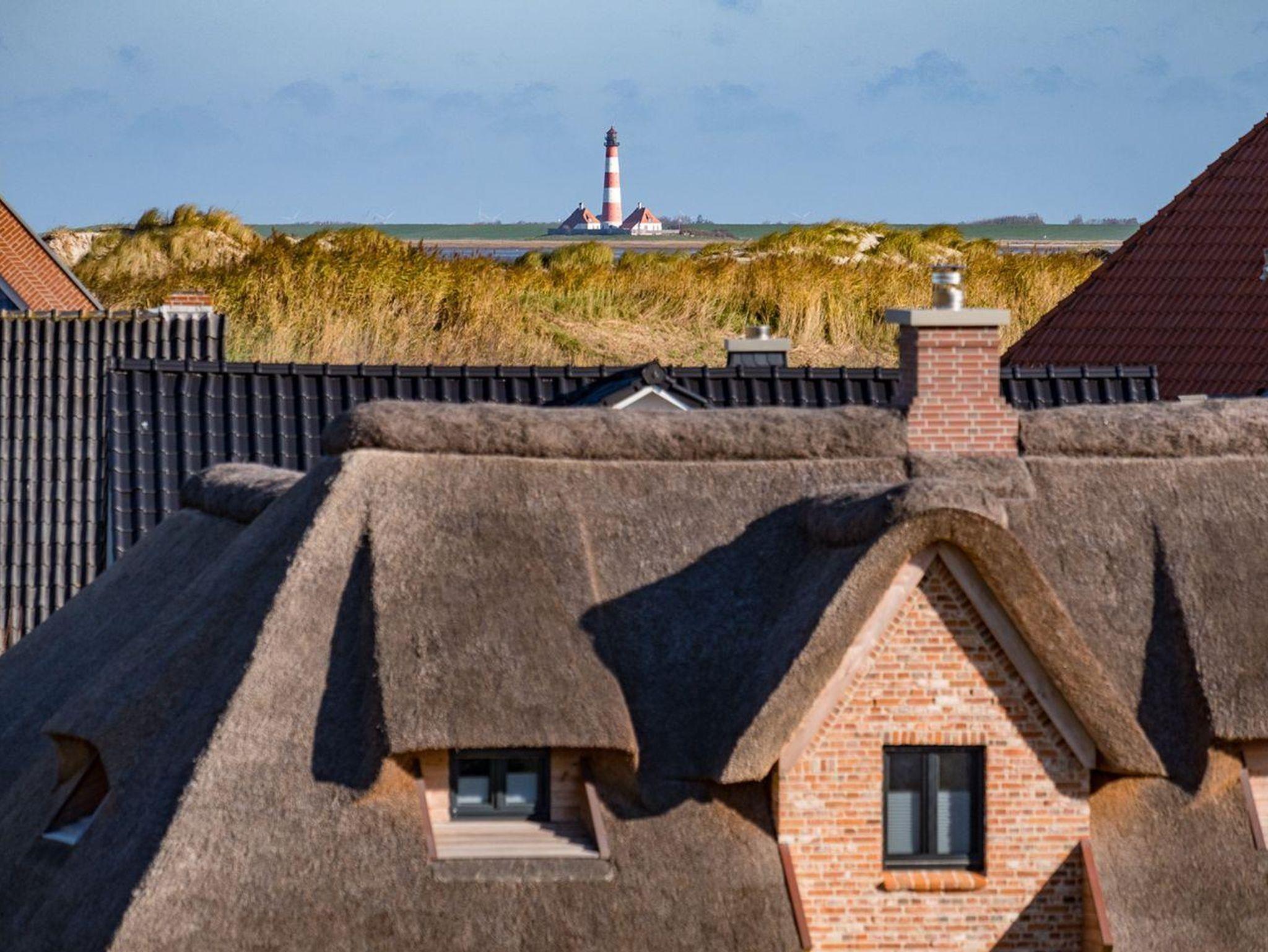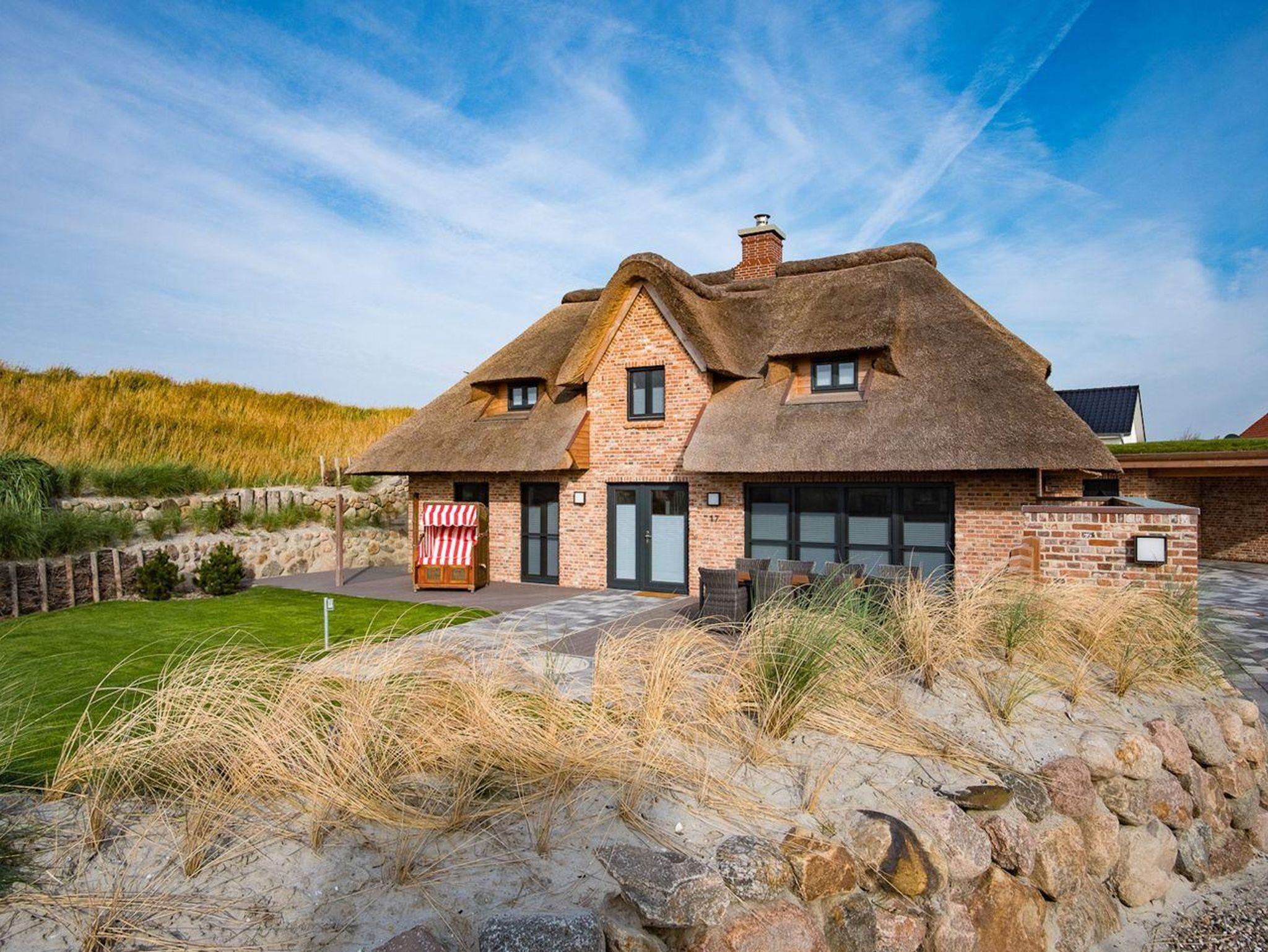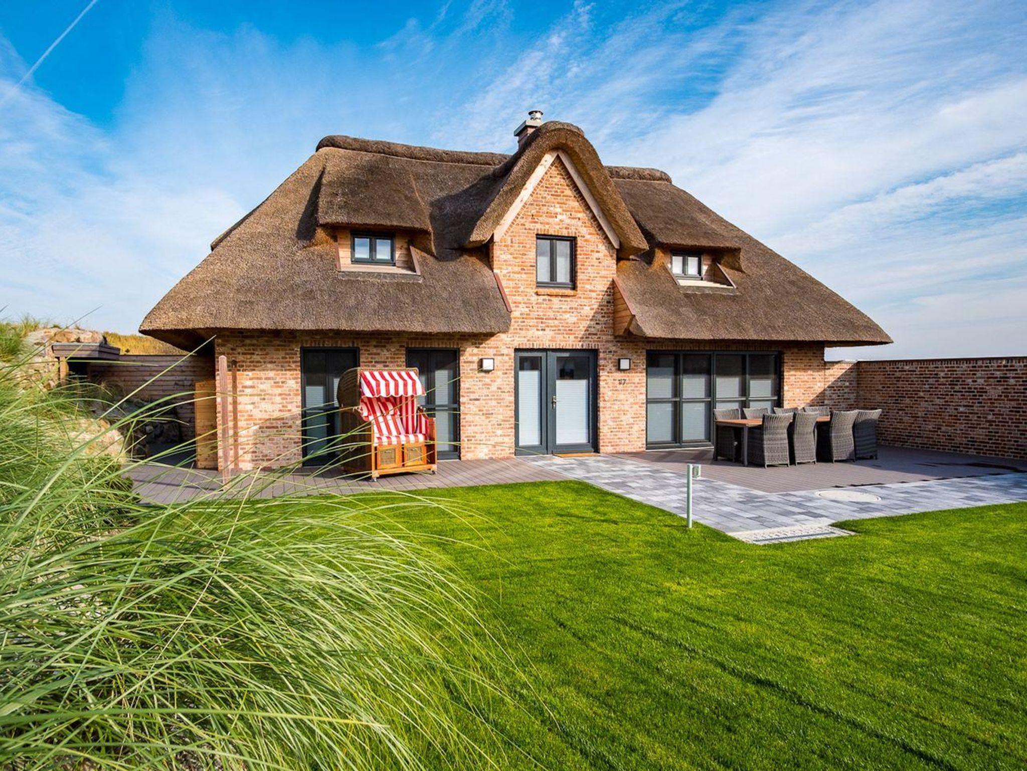 Luxuriöse Reetdach-Doppelhaushälfte in St. Peter-Ording mit Sauna, Garten und direktem Zugang zum Nordseedeich.