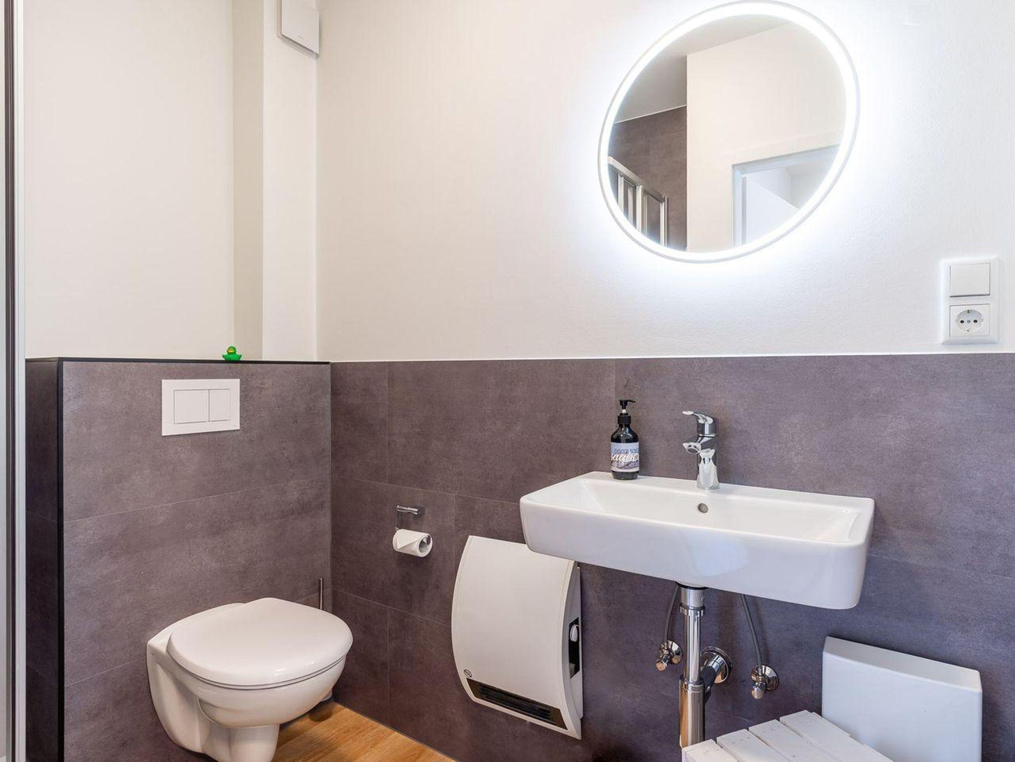 Ein Badezimmer mit Dusche rundet die Ausstattung ab. Hier finden Sie auch Annehmlichkeiten wie einen Haartrockner, einen Kosmetikspiegel sowie ein WC mit Waschbecken. Praktische Details, wie ein Staubsauger und Geschirrhandtücher, wurden ebenfalls berücksichtigt, um Ihren Aufenthalt so komfortabel wie möglich zu gestalten.