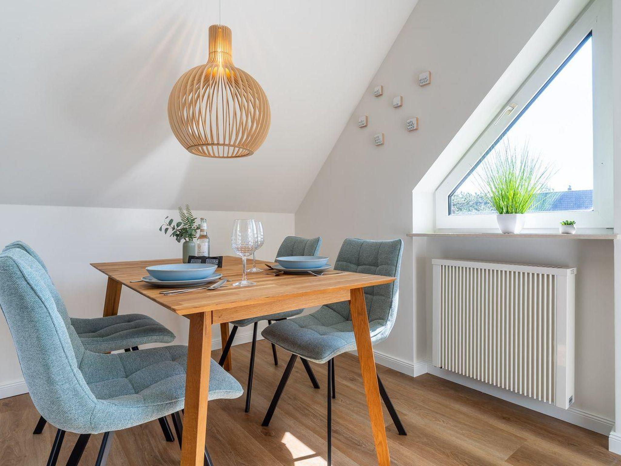 Ein besonderes Highlight der Wohnung ist der Balkon, wo Sie bei frischer Nordseeluft entspannen oder den Tag mit einem Glas Wein ausklingen lassen können. Der Sichtschutz an allen Fenstern sorgt für Privatsphäre, während die großen Fenster den Wohnraum mit natürlichem Licht durchfluten. Ihre Sicherheit wird durch Rauchmelder und einen Windschutz gewährleistet.
