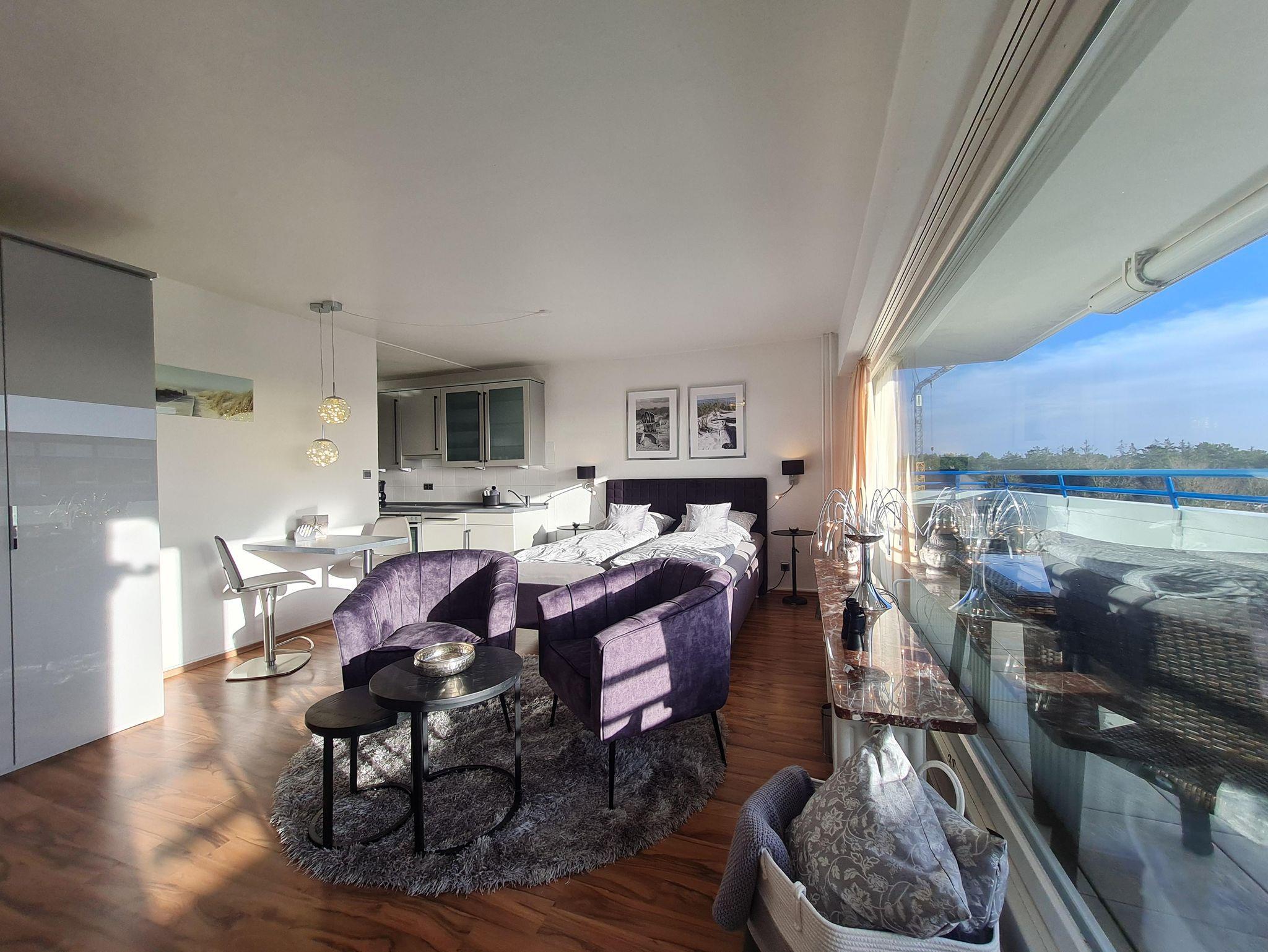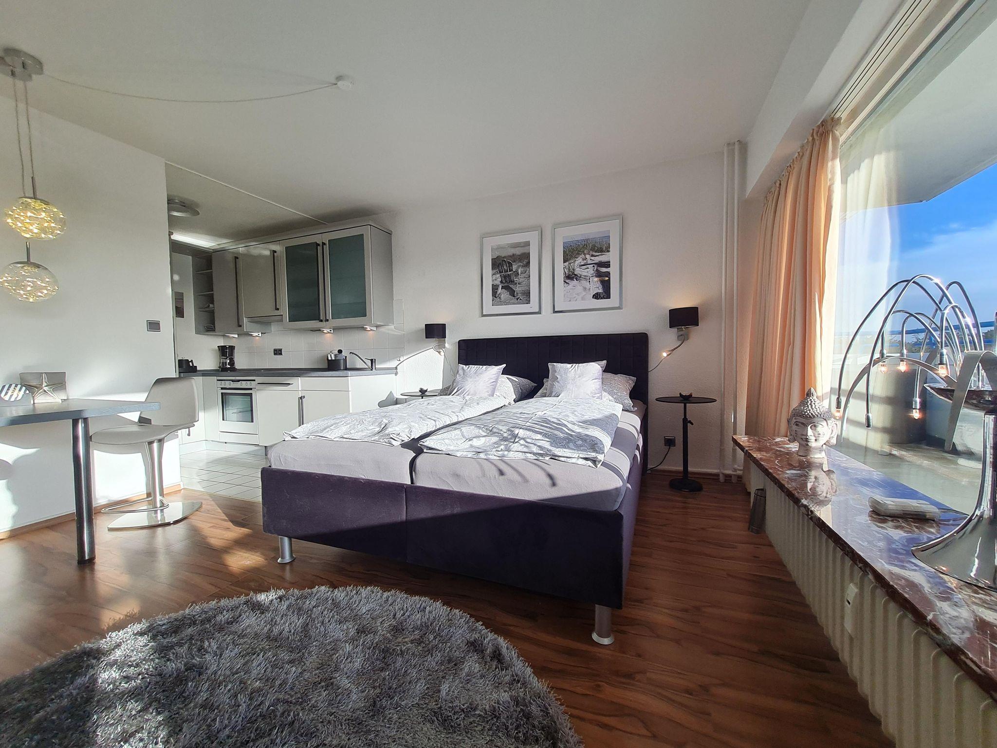 Erleben Sie den Komfort eines schön ausgestatteten Appartements mit Wohnschlafraum und einem großen Balkon. Ein Handtuchpaket und Bettwäsche kann dazu gebucht werden.