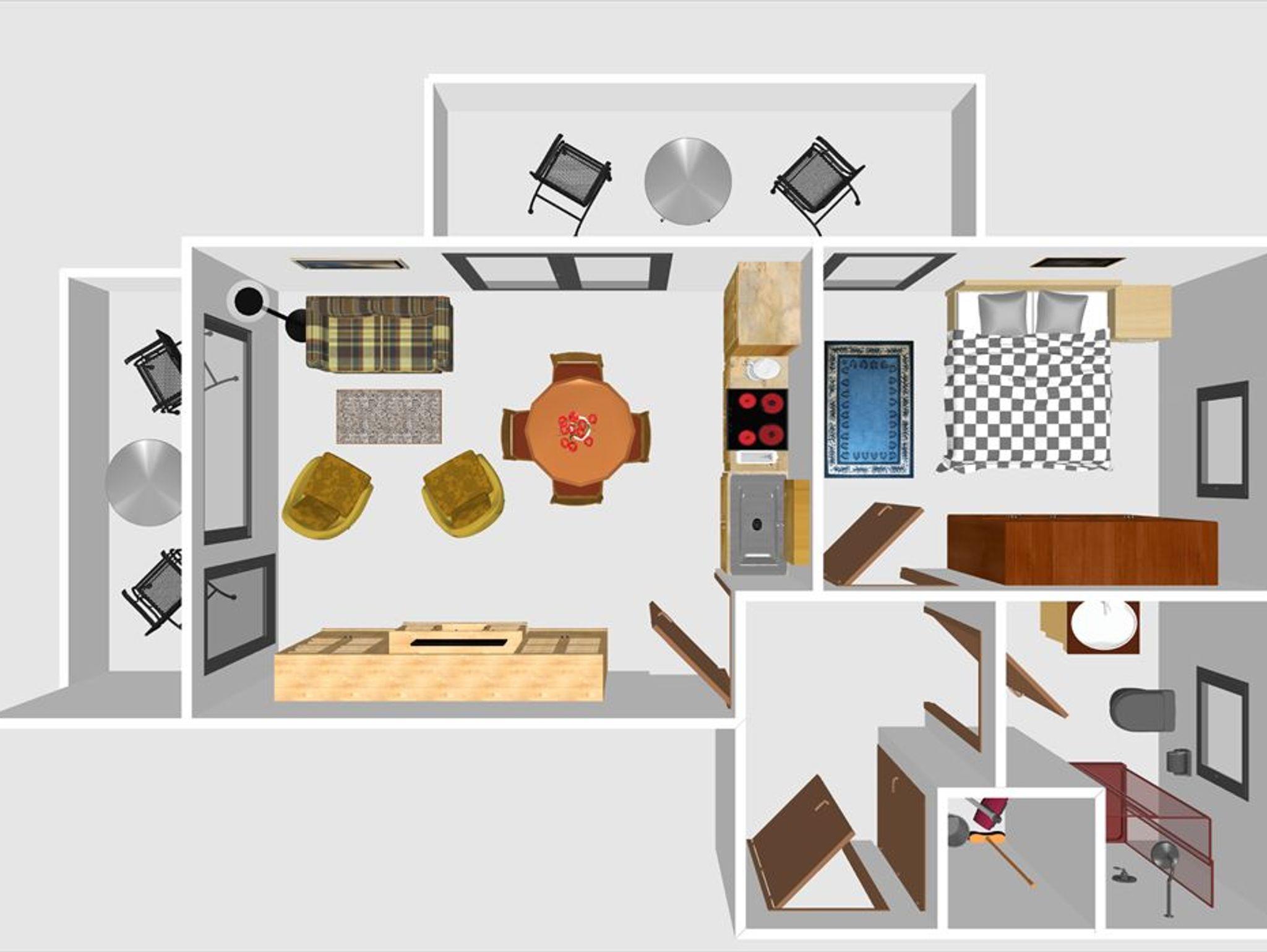Das Appartement liegt im Obergeschoss. Diele mit Garderobe, Abstellraum. Wohn-Schlafraum mit Doppelschrankklappbett, Sitzecke, Essecke, Kabel-TV, Radio. Küchenzeile mit 4-Platten-Herd, Geschirrspüler. Balkon und Loggia. Schlafraum mit Doppelbett. Duschbad/WC. W-LAN, Garage Nr. 4., Höhe: 2,10 m, Breite: 2,20m, Tiefe: 4,80 m. NICHTRAUCHERWOHNUNG!