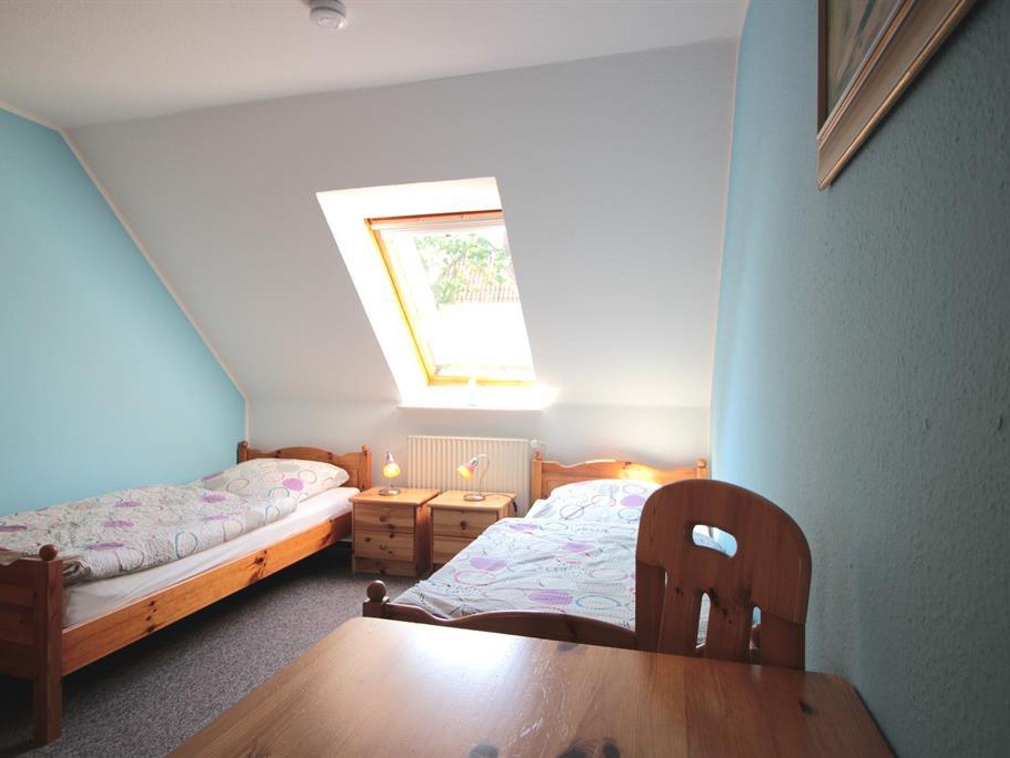 das andere Zimmer mit 2 Einzelbetten und ausreichend Stauraum. Zur Wohnung gehört eine Dachterrasse.