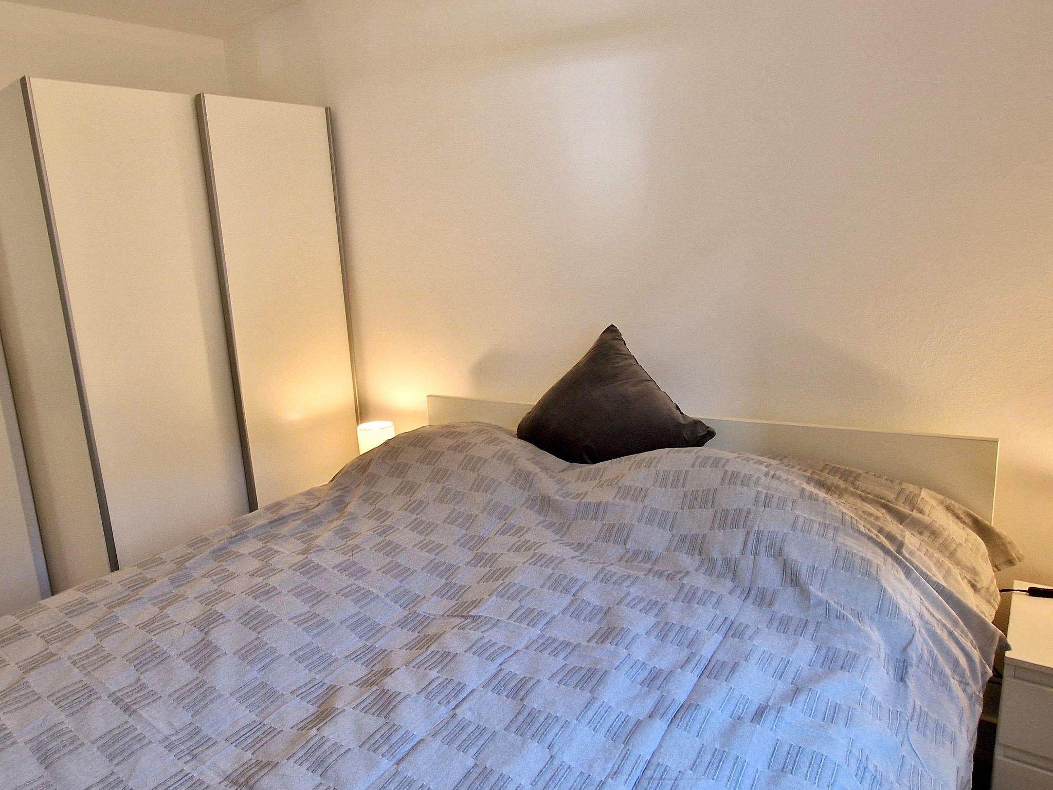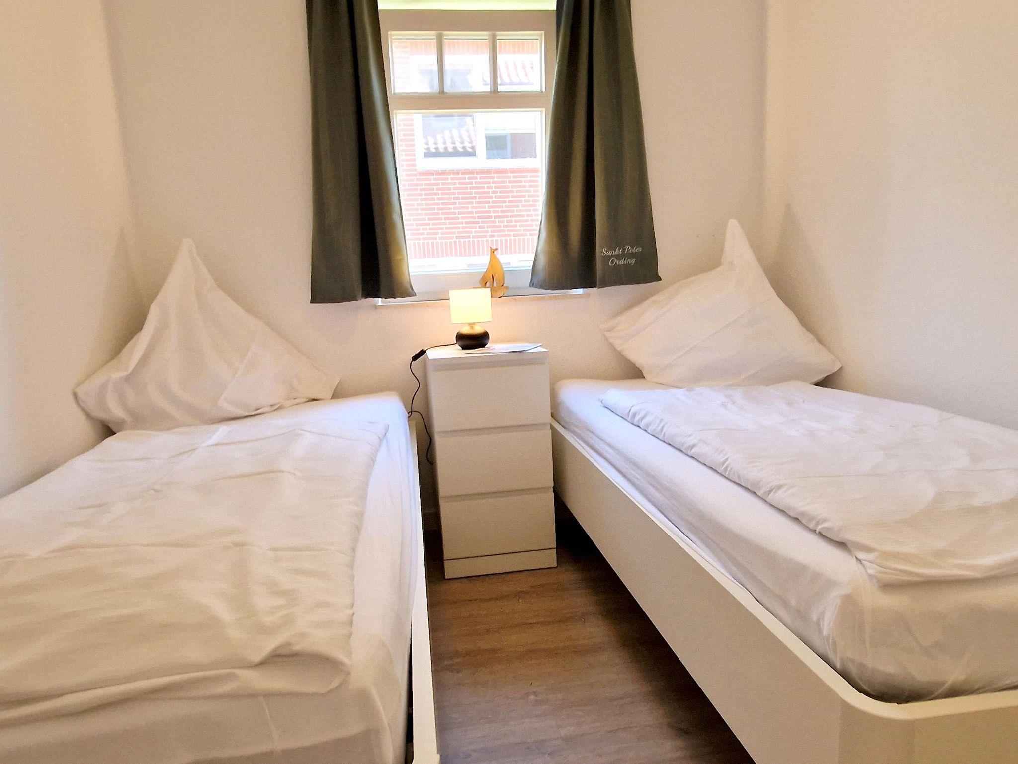 Schlafzimmer 2: 2 Einzelbetten, Kommode, Kleiderschrank, Hocker, Nachtspeicherofen
