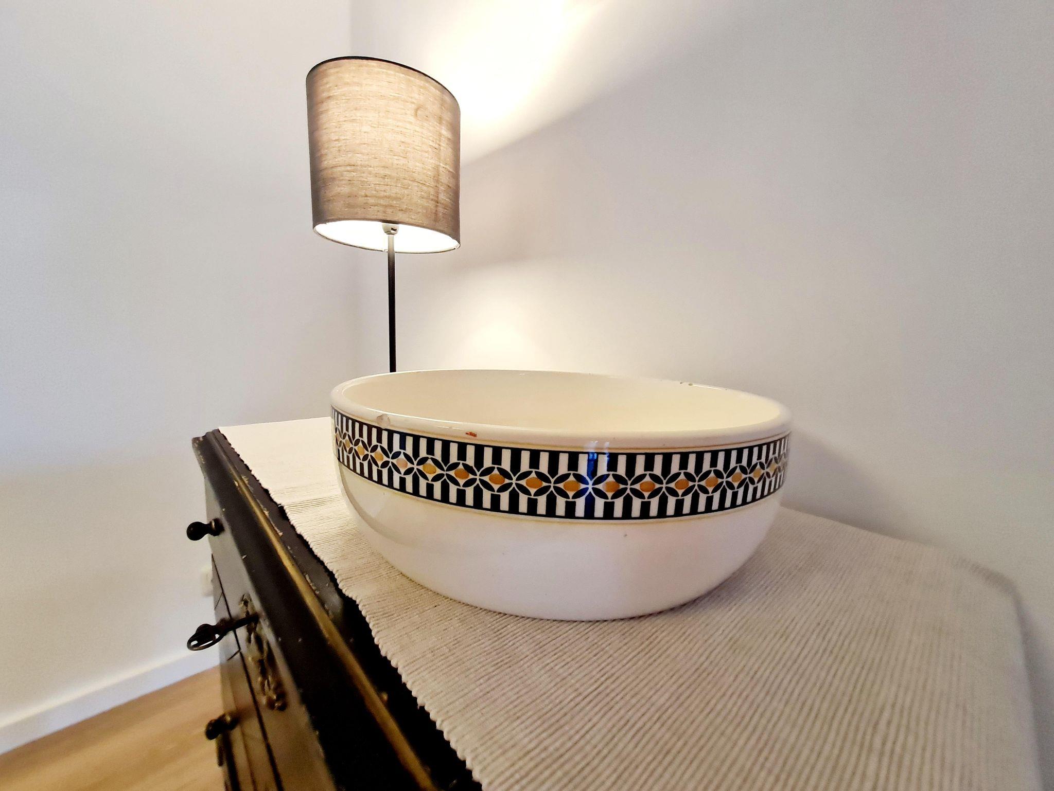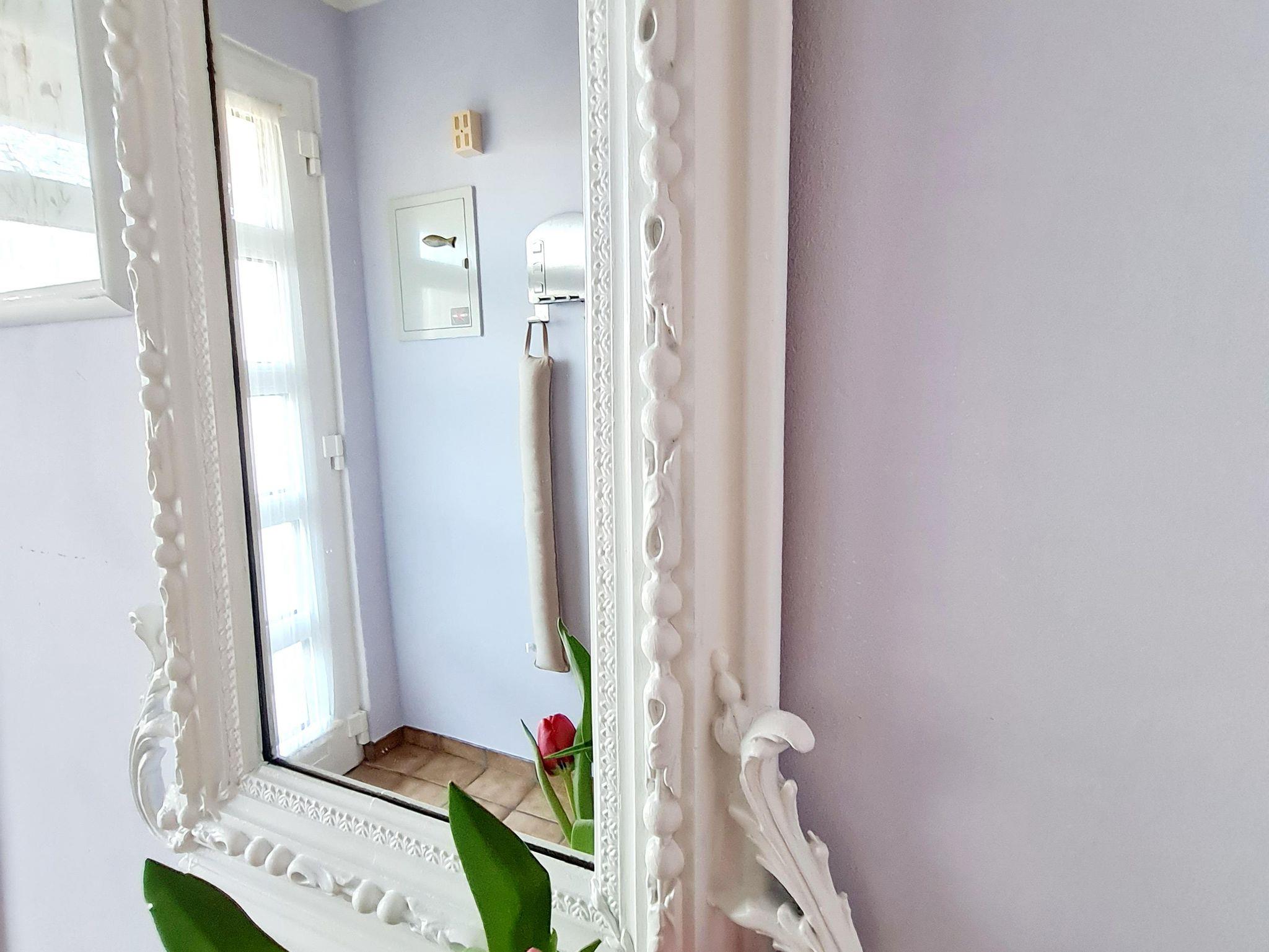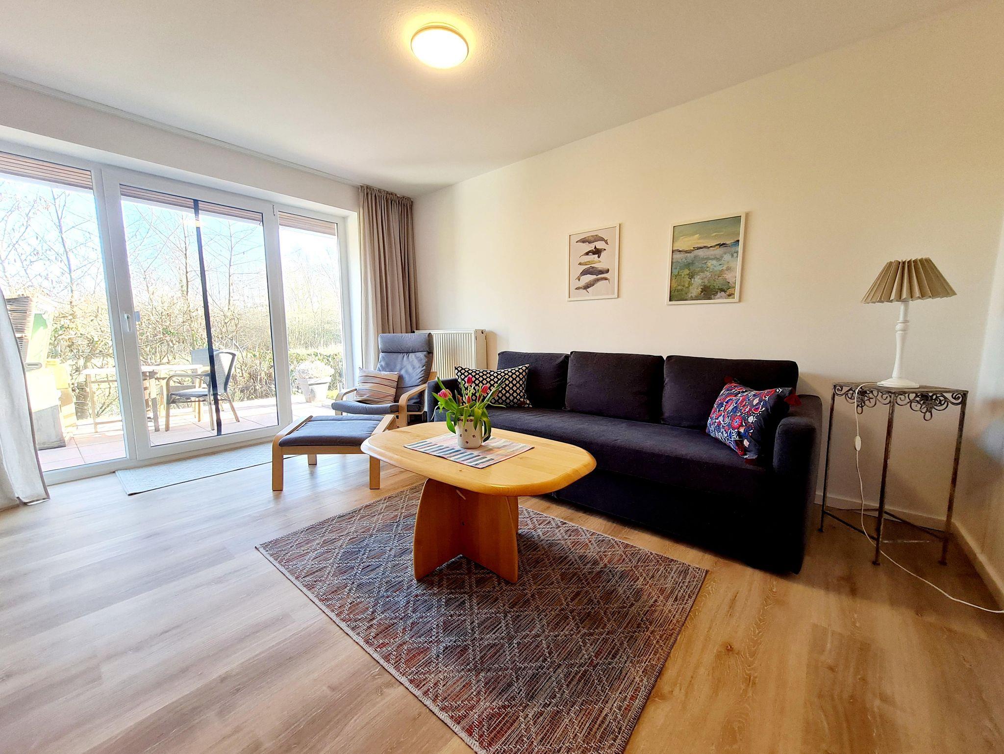 Die Erdgeschosswohnung ist ca. 50 qm groß und hat einen separaten Eingang. Haustiere sind auf Anfrage willkommen. Im Wohnraum befindet sich ein ausziehbares Sofa, der Essbereich und der Ausgang zur gro0en Terrasse mit Strandkorb. Die Küchenzeile ist komplett ausgestattet mit allen Elektrokleingeräten. Desweiteren gibt es einen Schlafraum mit Doppelbett und eine Badezimmer mit Dusche und WC.