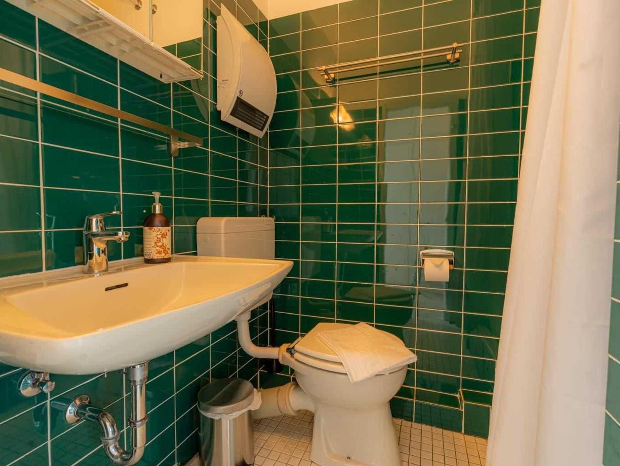 Badezimmer (Duschbad) mit Dusche, WC und Föhn.